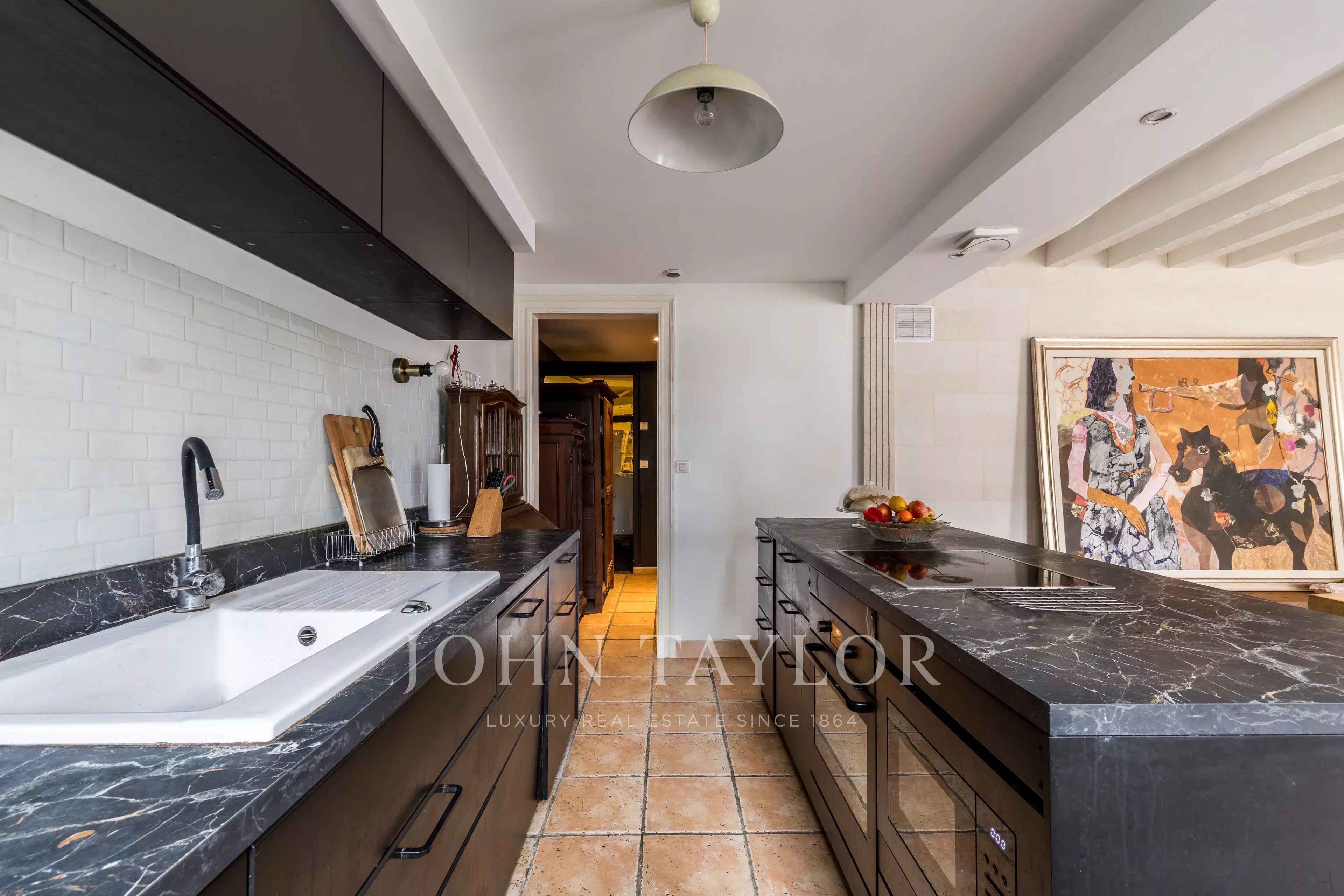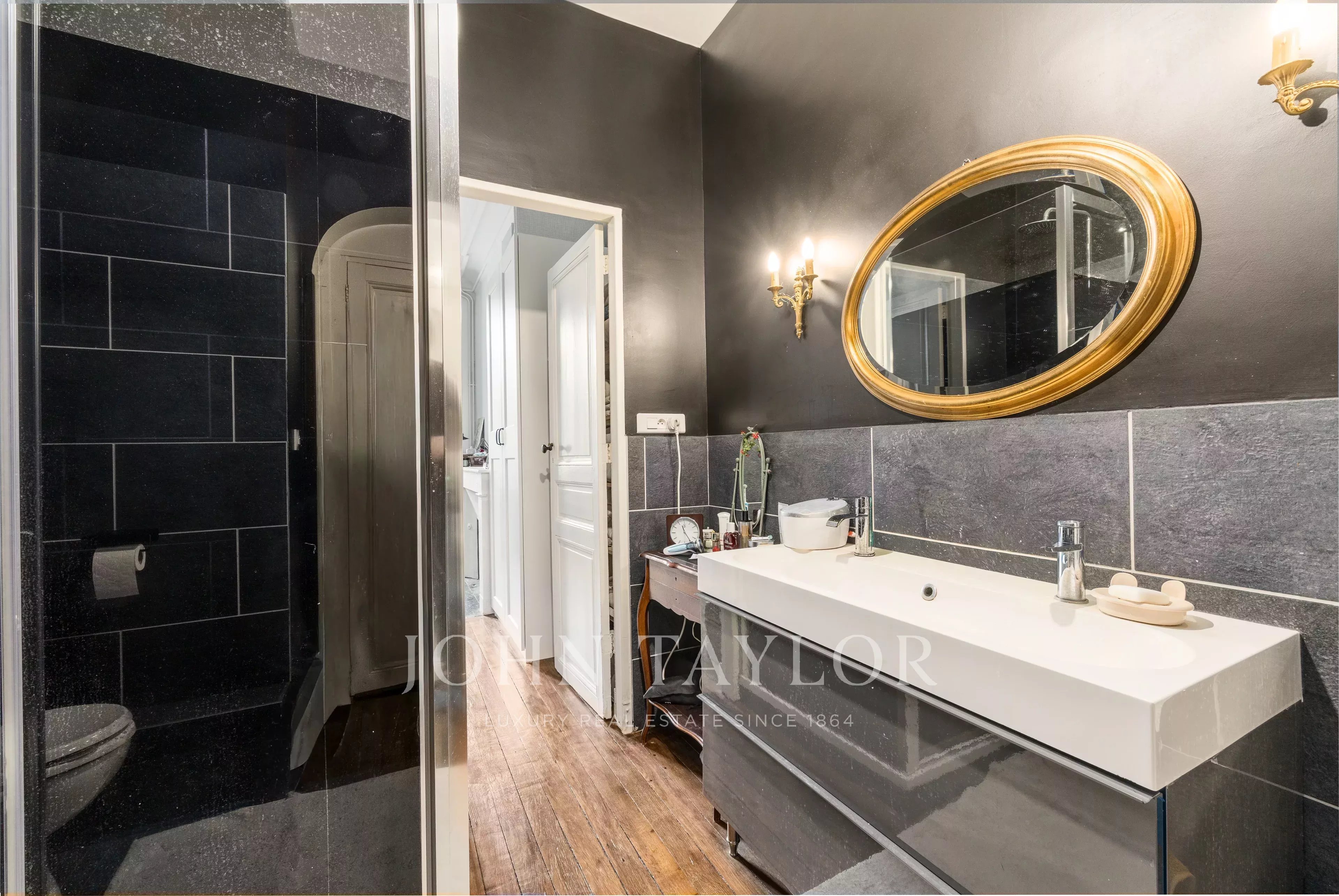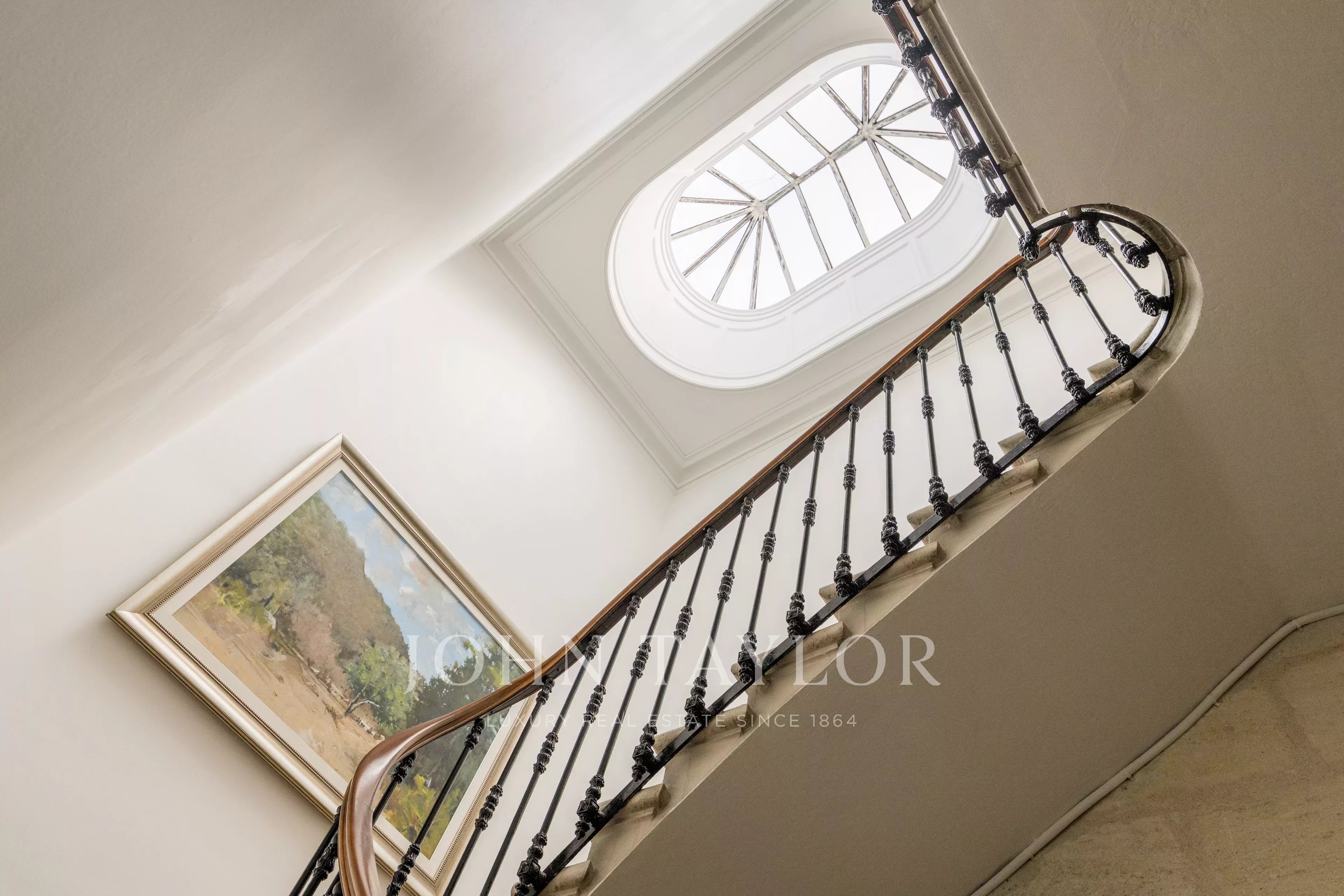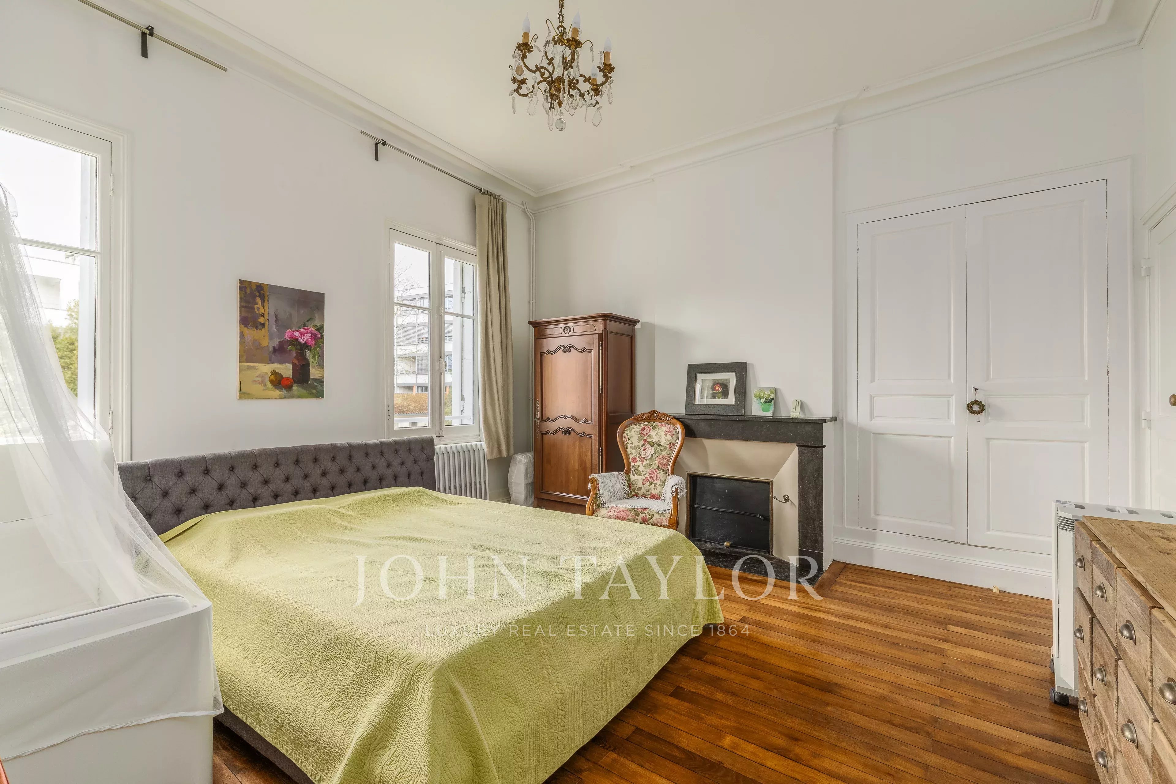 Un large et somptueux escalier d'époque, éclairé par un beau puits de jour sous verrière, vous conduit vers les deux étages : suite parentale lumineuse avec salle de bains privée, quatre chambres, deux salles de bains supplémentaires et un appartement indépendant avec cuisine ouverte, idéal pour un étudiant ou un adolescent. Une spacieuse buanderie et une belle cave de 30 m² complètent l'ensemble.