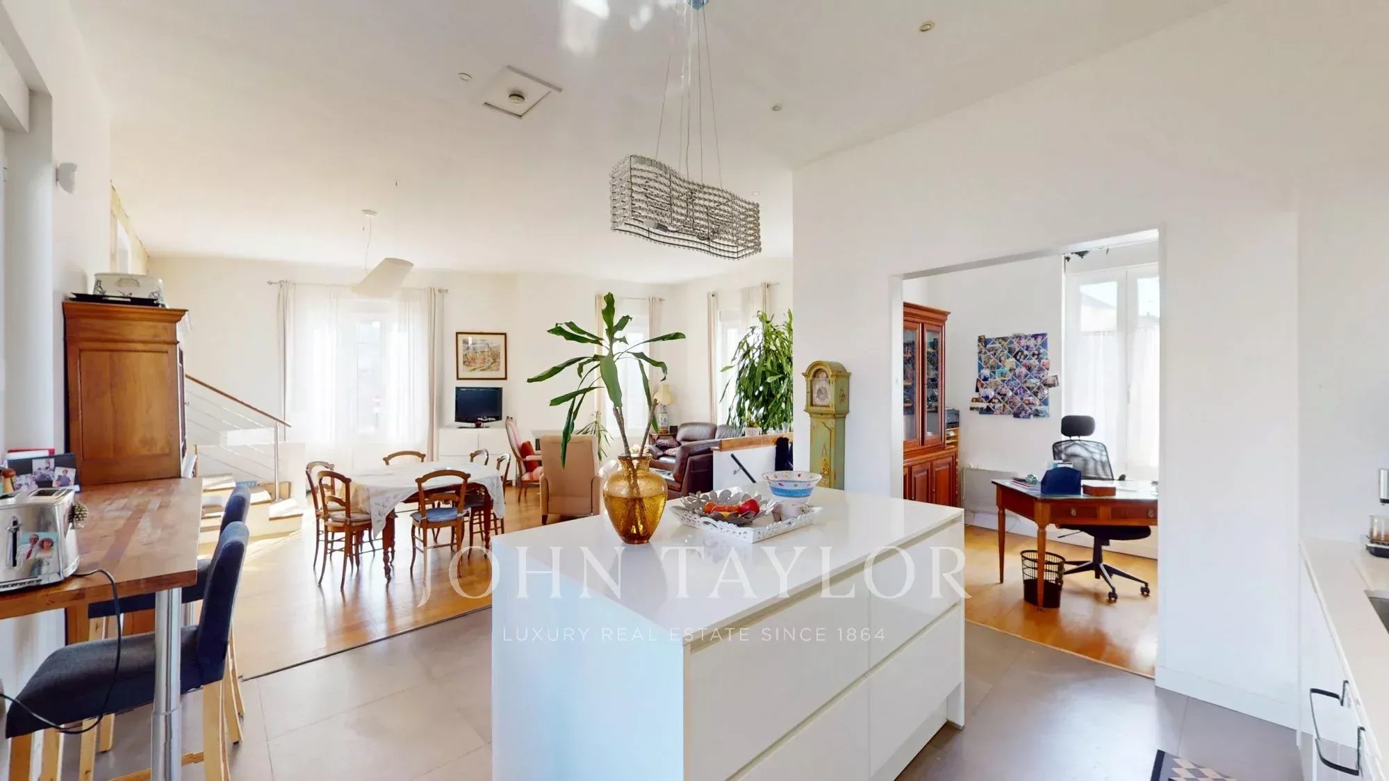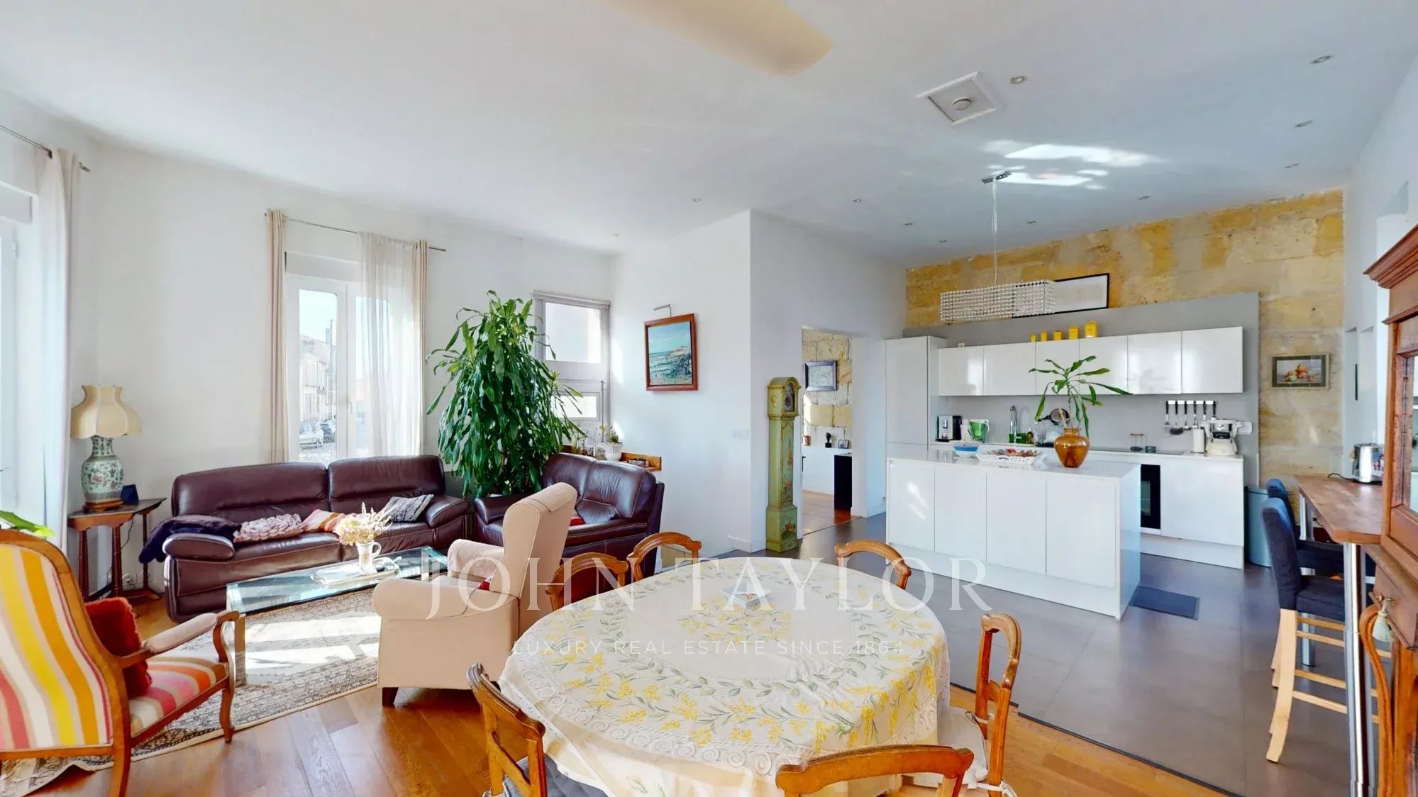 Derrière sa façade en pierre, cette maison séduit par sa luminosité, ses volumes généreux et le charme de ses prestations anciennes subtilement associées à des éléments de confort contemporain.