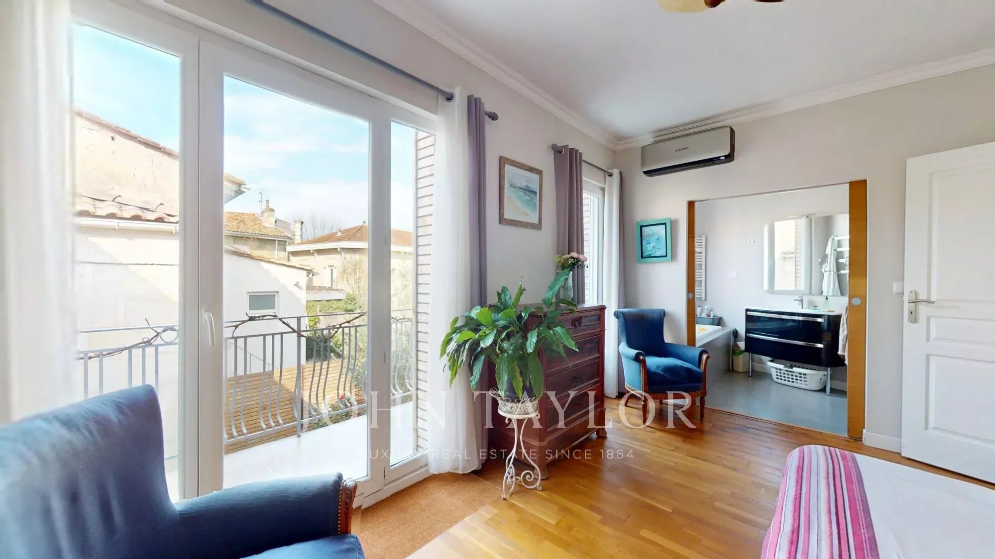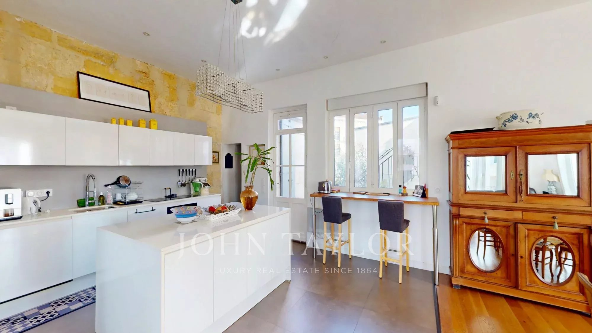 John Taylor Bordeaux a le plaisir de vous présenter cette élégante maison de ville en pierre, développant environ 180 m² habitables, agrémentée d’un garage attenant de 30 m² et d’un spa de nage, le tout édifié sur une parcelle d’environ 200 m².