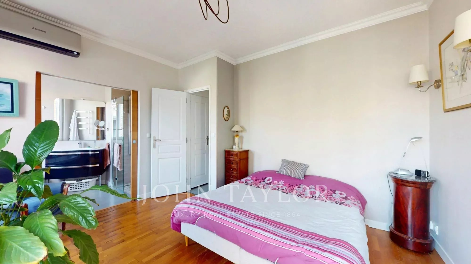 L’espace nuit se compose de quatre chambres, dont une suite parentale, ainsi qu’un bureau pouvant aisément être aménagé en cinquième chambre.