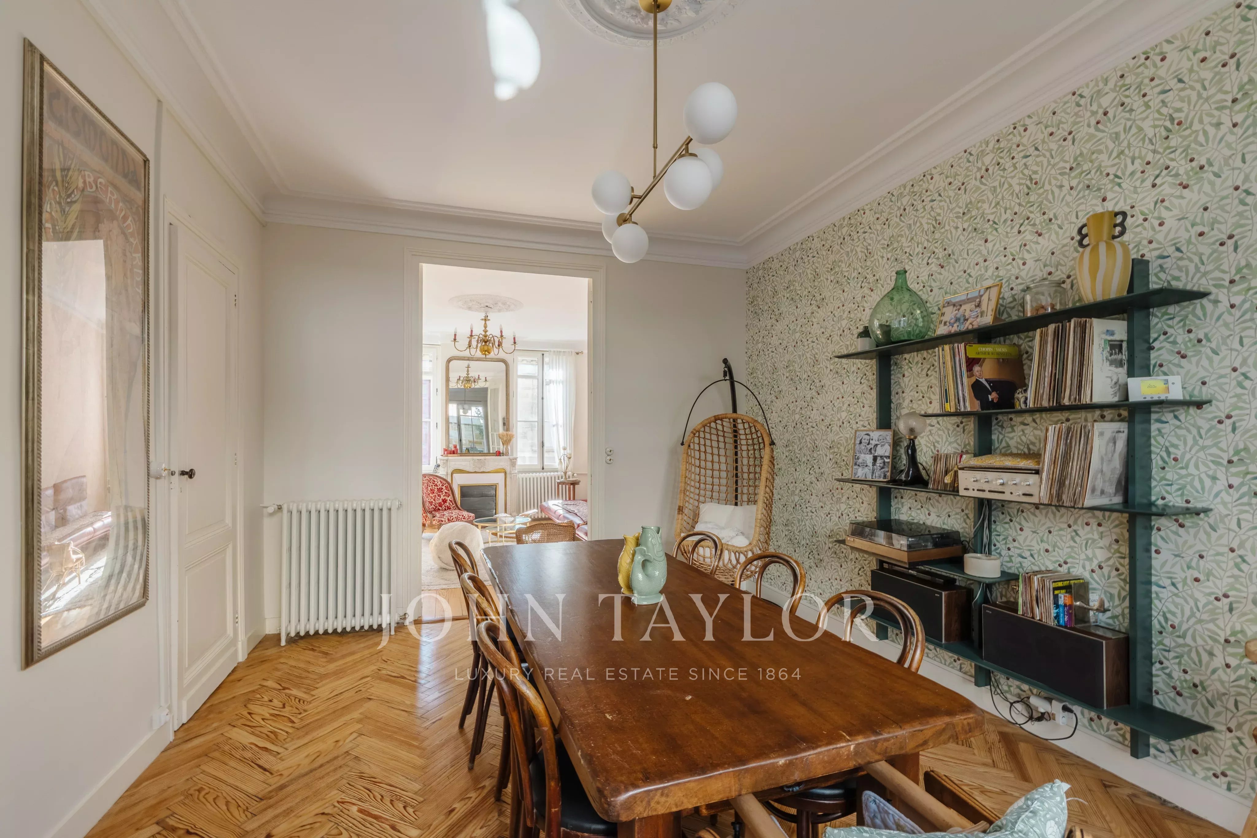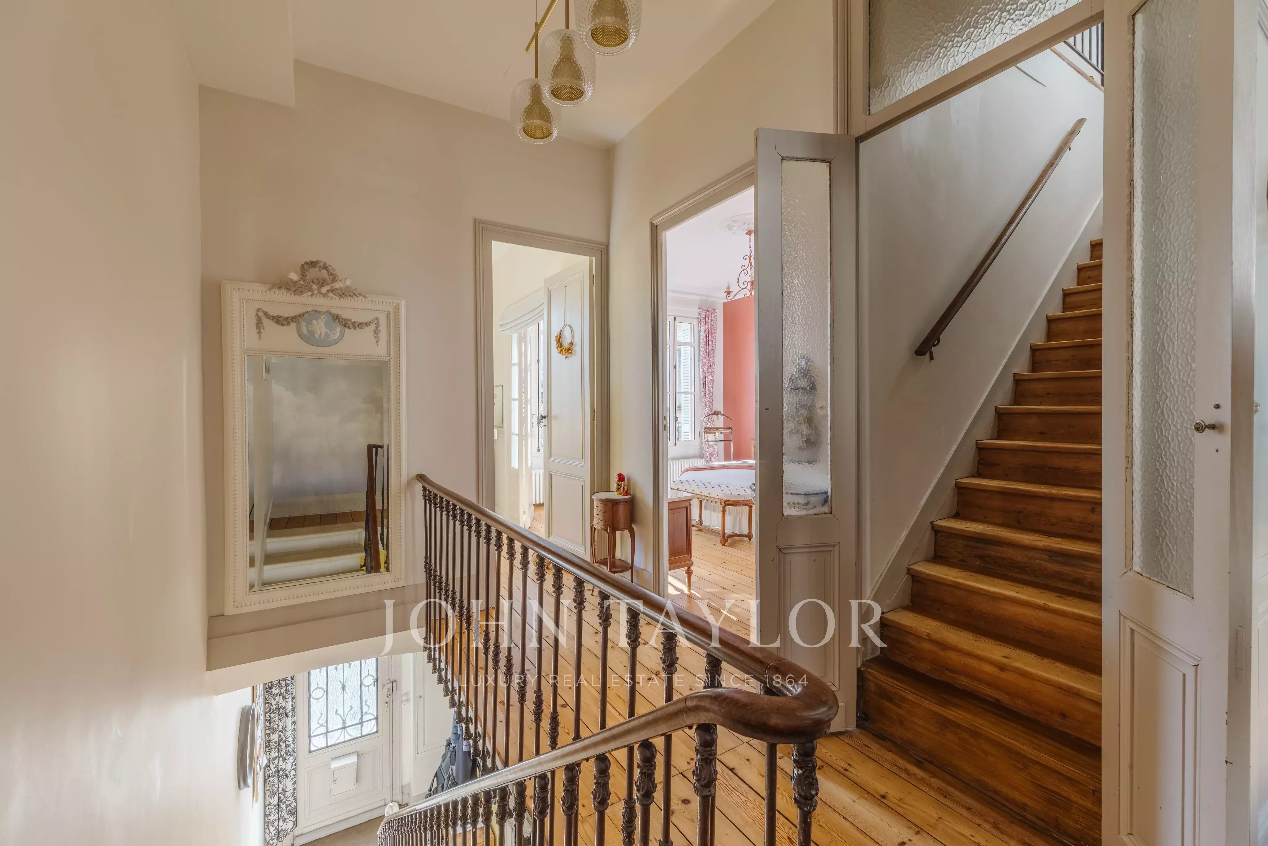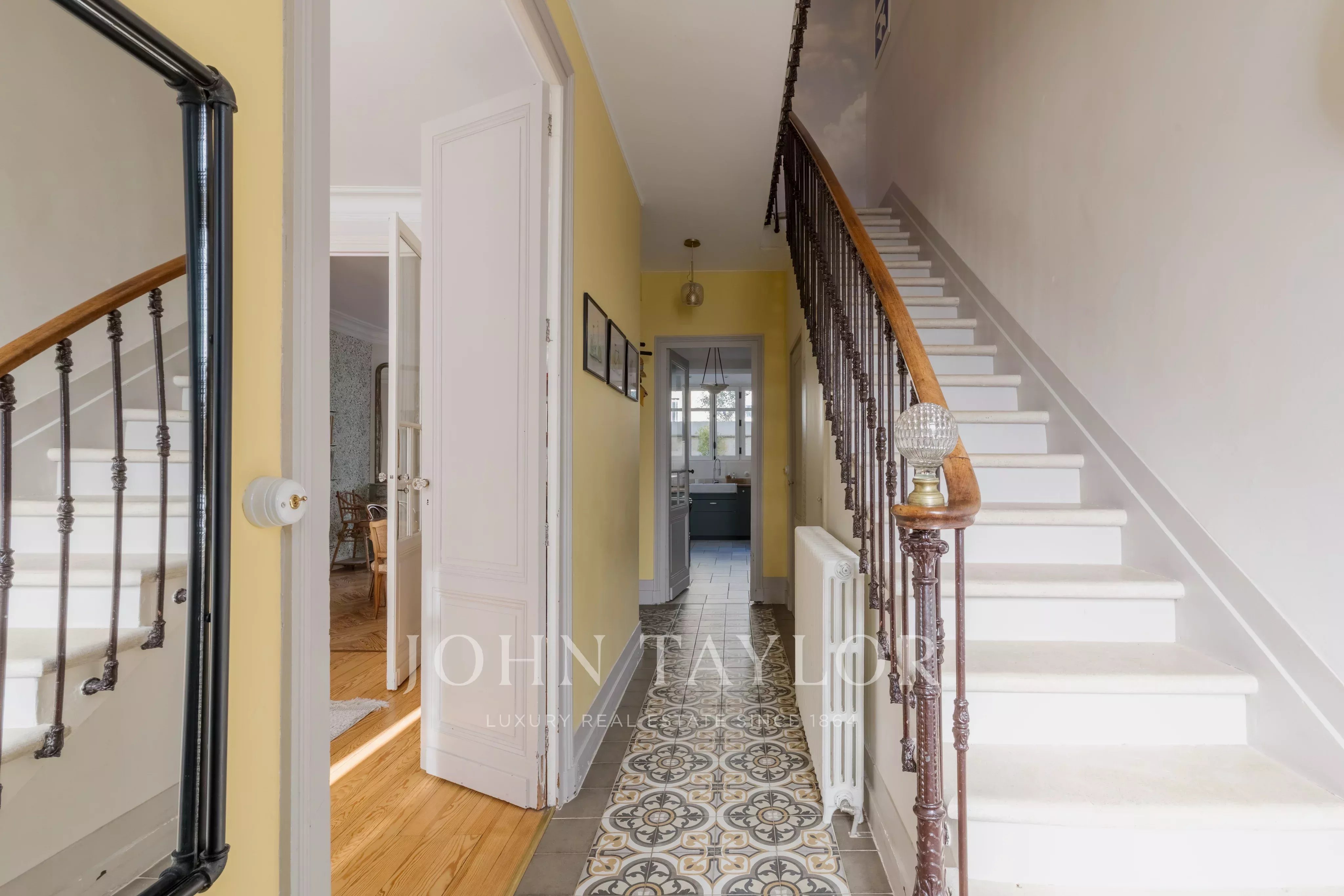 Les prestations anciennes ont été soigneusement conservées : parquet massif, moulures, cheminées, carreaux de ciment et belle hauteur sous plafond, offrant à la maison tout le charme et l’élégance de l’ancien.