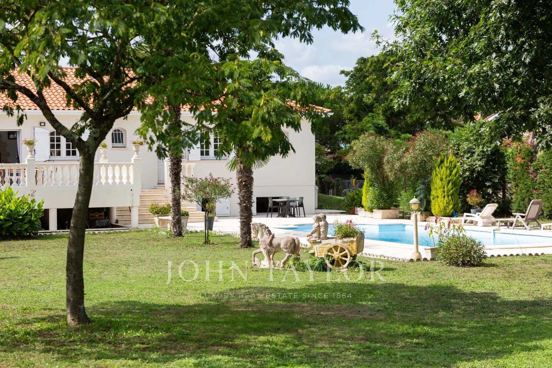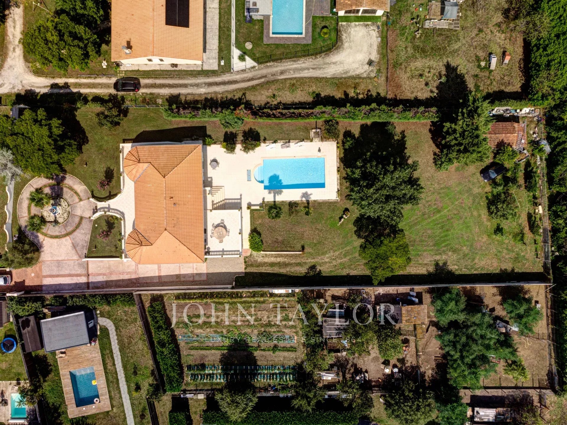Le jardin, entièrement clos et sans vis-à-vis, est un véritable havre de sérénité. Il accueille une piscine, un espace constructible au fond de la parcelle, ainsi qu’un abri pouvant loger deux véhicules.