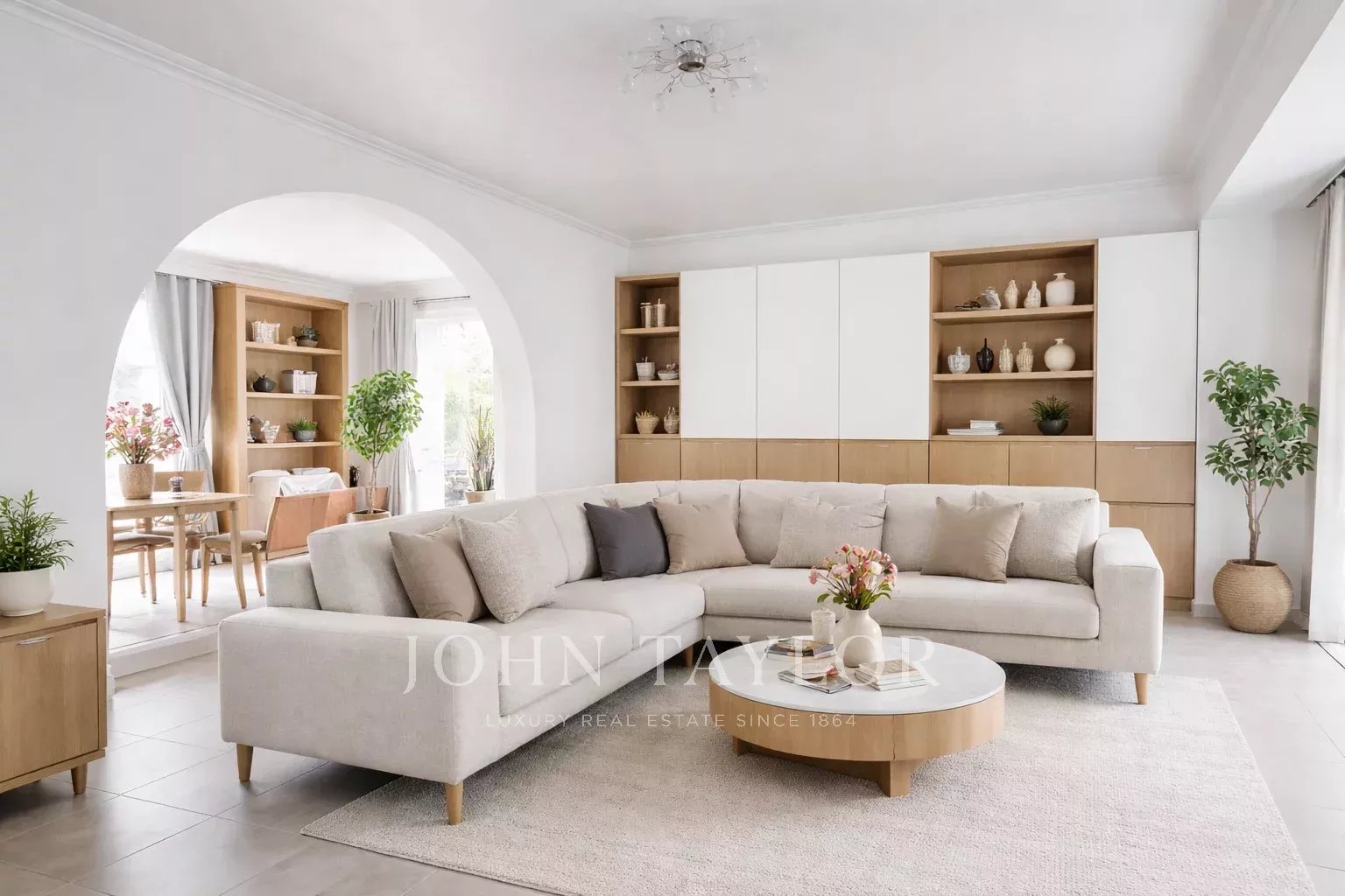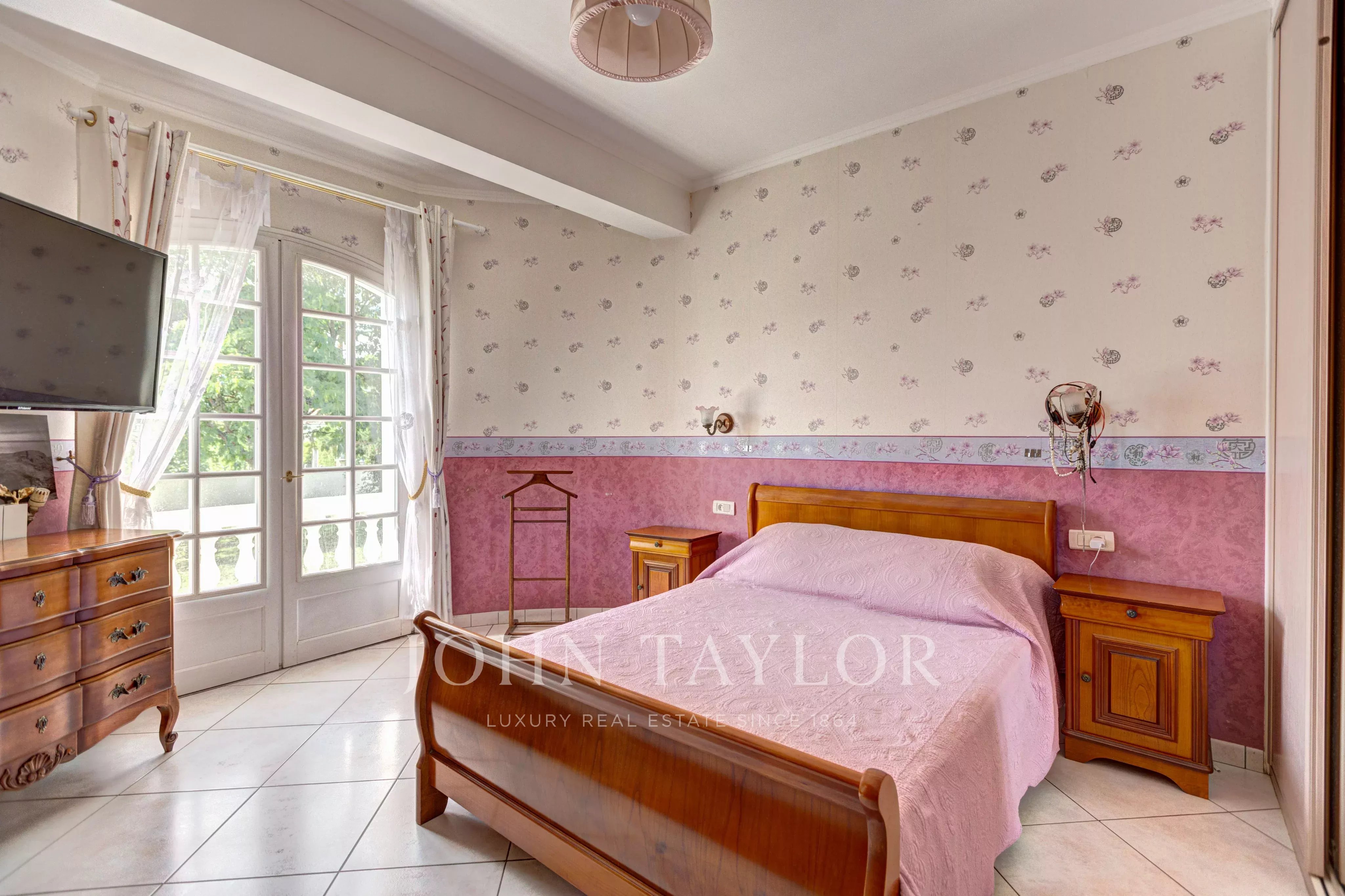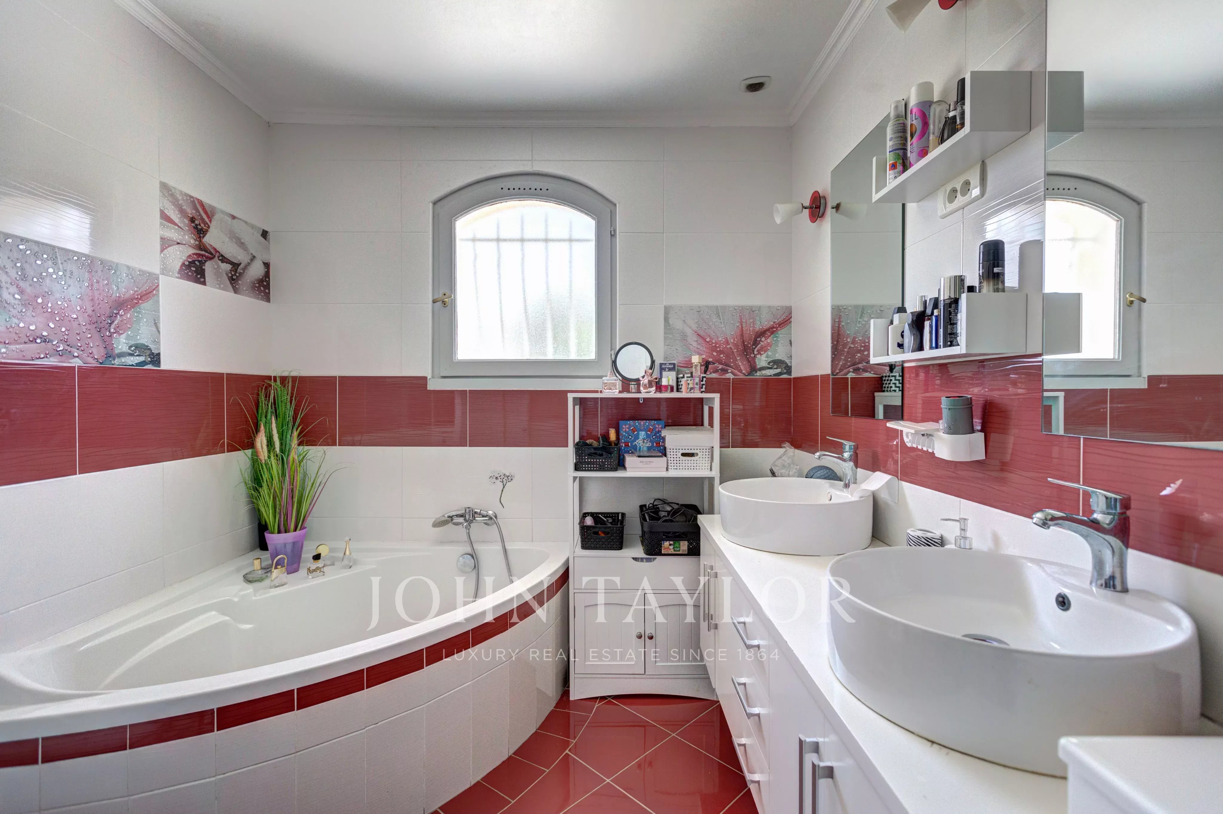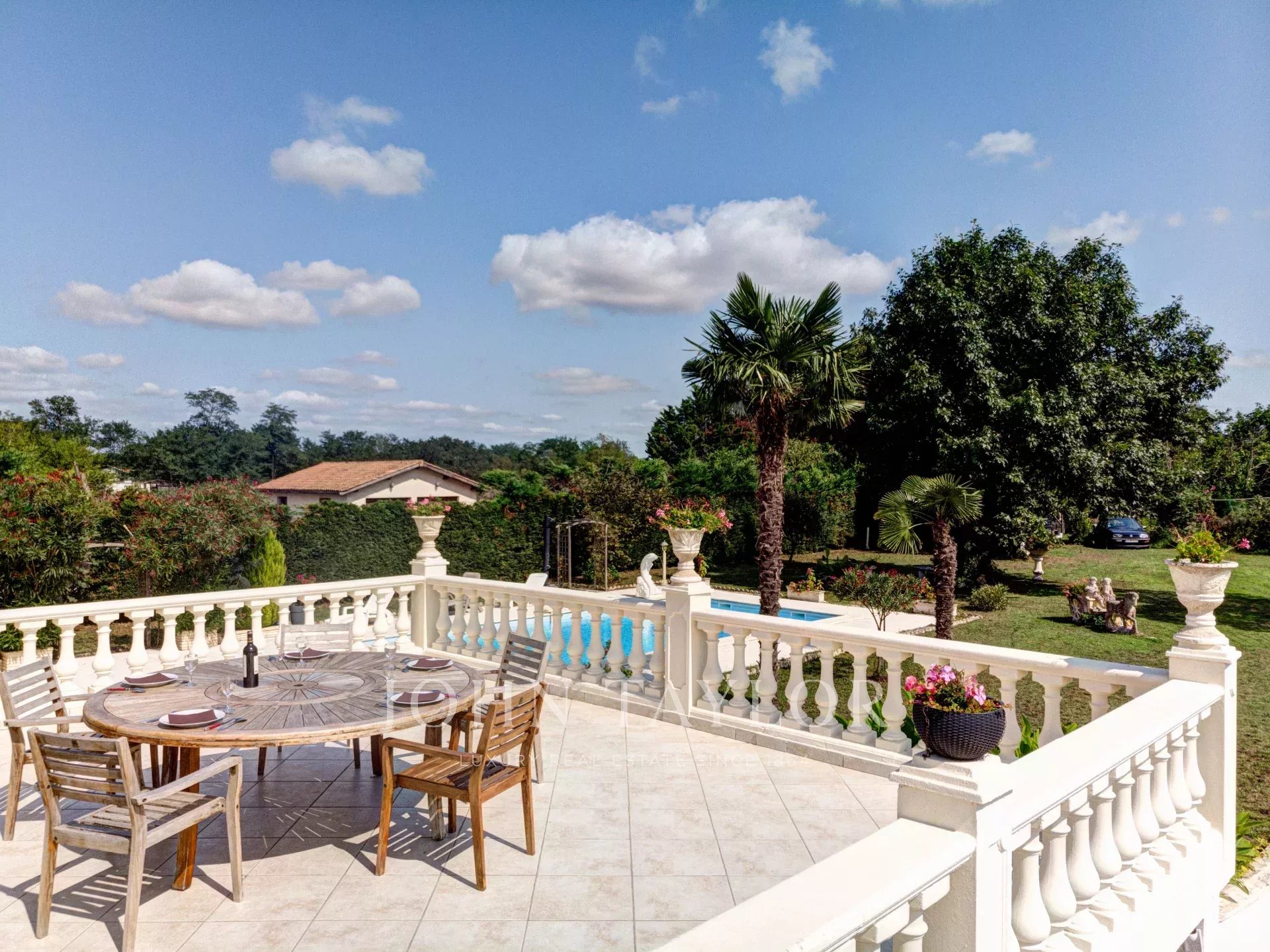 L’entrée principale donne sur un vaste espace de vie baigné de lumière, composé d’une salle à manger, d’une cuisine ouverte et d’un salon avec accès direct à une terrasse qui surplombe le jardin et la piscine. L’espace nuit comprend trois chambres équipées de placards, une salle de bains avec baignoire, douche et doubles vasques, ainsi qu’un WC séparé et un dressing spacieux.
