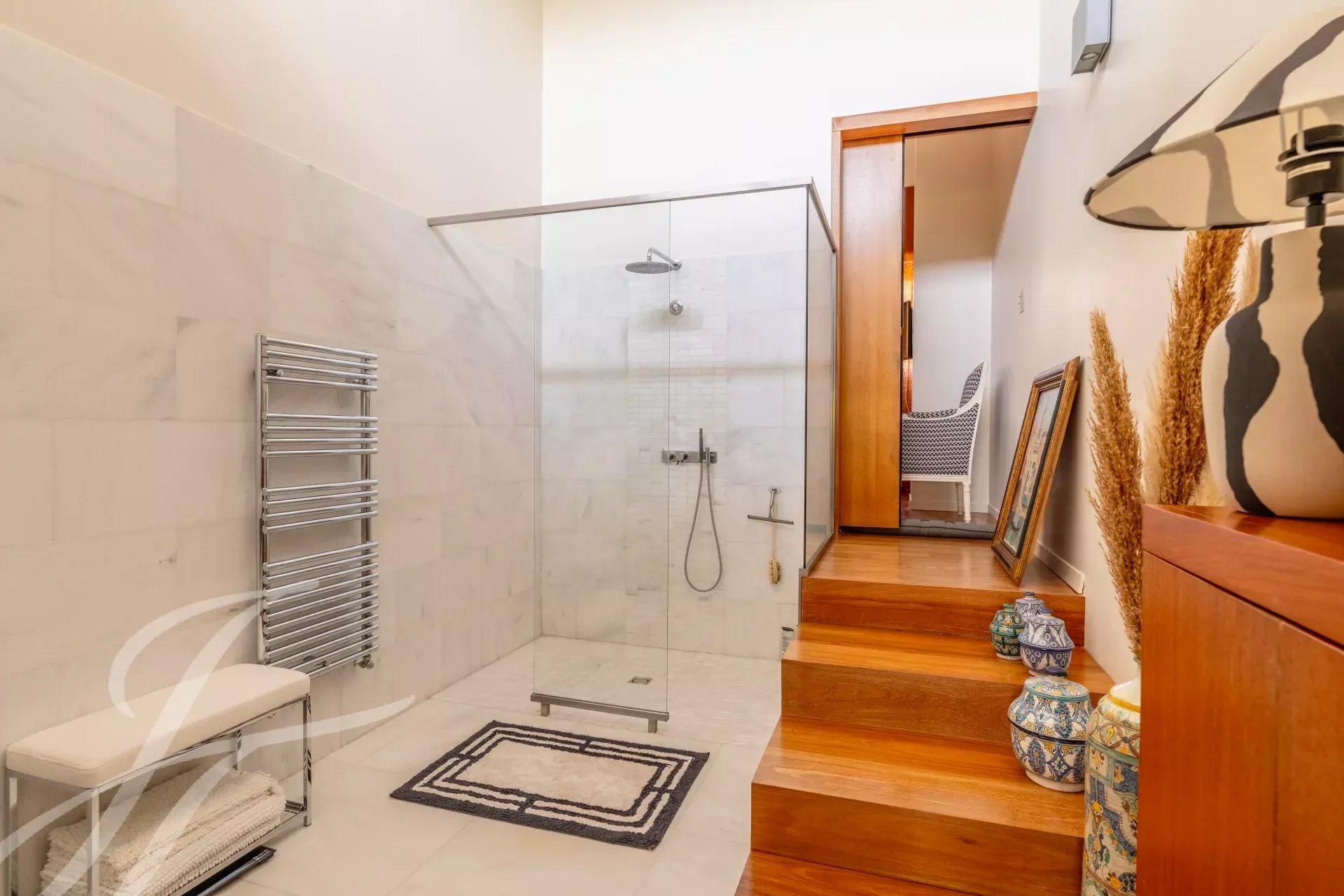 À l’intérieur, l’élégance s’allie à la sobriété dans une harmonie raffinée, portée par des matériaux nobles tels que le marbre et le bois. Les volumes impressionnent dès l’entrée, notamment le vaste salon d’environ 90 m². Ce niveau comprend également une grande cuisine entièrement équipée. Le séjour cathédrale offre une perspective remarquable sur l’étage, où se déploient les espaces nuit : quatre chambres, une salle de bain, et une salle d'eau ainsi qu'une généreuse suite parentale, le tout s'articule sur deux niveaux offrant proximité et préservant à la fois les espaces de chacun. Cette dernière bénéficie d’un dressing sur mesure, réalisé avec une menuiserie de qualité et une salle d'eau avec double accès. Une buanderie et une pièce dédiée aux loisirs — salle de jeux ou home cinéma — complètent cet espace de vie.