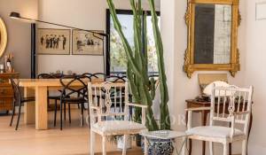 Elle se compose d’une entrée avec placard, un WC indépendant, une grande pièce de vie avec cheminée, ouverte en partie sur la salle à manger et la cuisine américaine. L’ensemble donne sur la terrasse avec piscine exposée Sud et sur le patio.