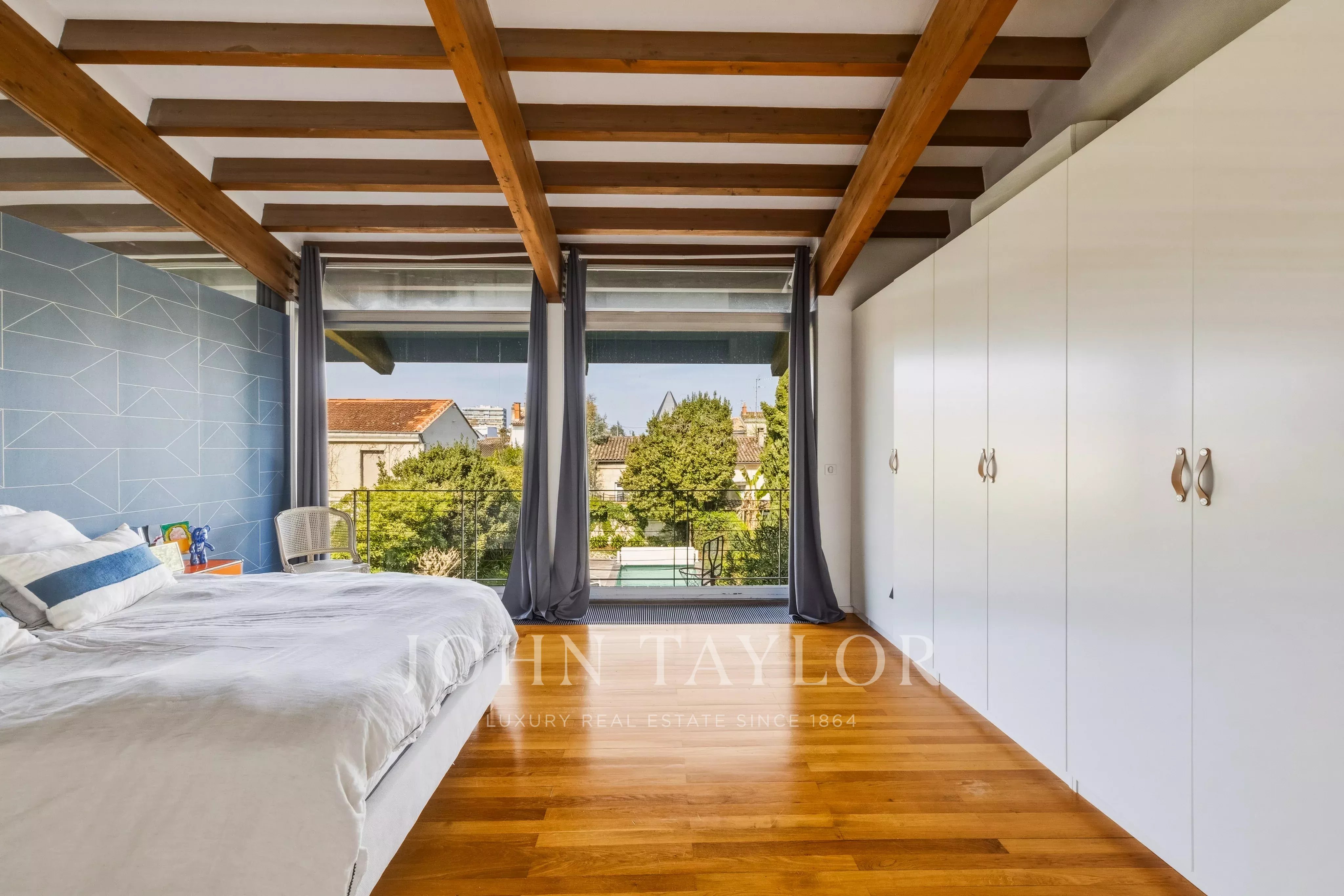 Située dans le quartier recherché de Caudéran à Bordeaux, cette maison familiale de 255 m² séduit par son élégance et son architecture contemporaine. Composée de 8 pièces, elle dispose de 4 chambres spacieuses, d’une grande pièce de vie lumineuse ouverte sur l’extérieur grâce à de larges baies vitrées coulissantes, et de prestations haut de gamme pour un confort optimal.