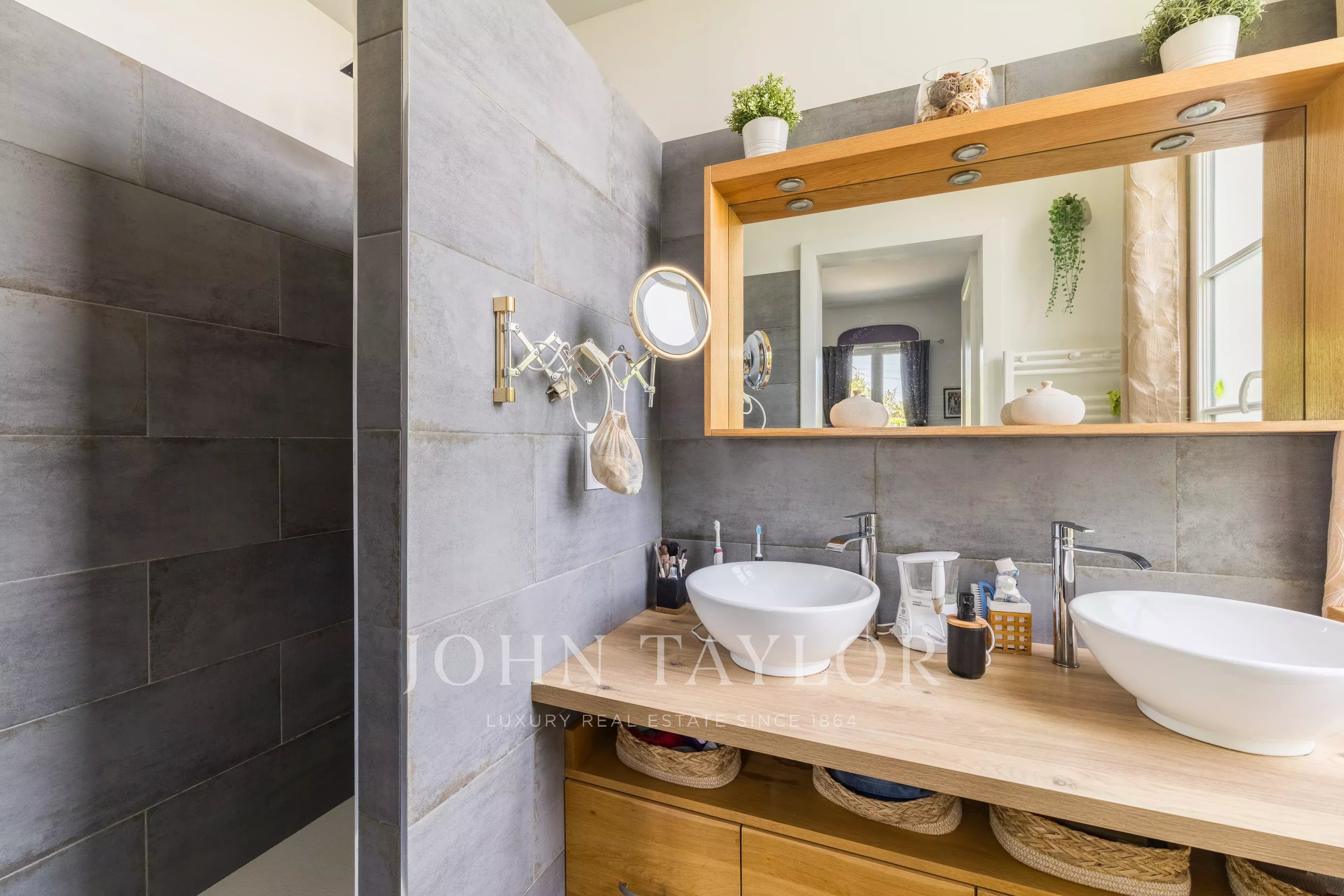 Un garage, un carport, et un espace de 25 m² à aménager à l’étage offrent encore de nombreuses possibilités. Enfin, une cave à vin et un espace de stockage viennent parfaire ce bien.