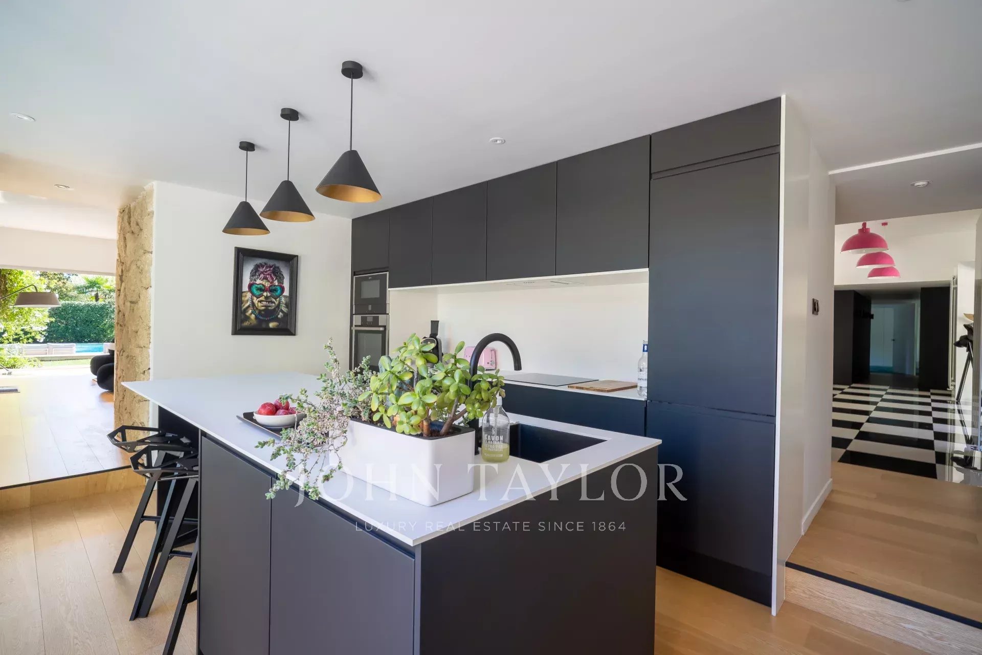 Nichée dans un écrin de verdure à Gradignan, cette demeure contemporaine des années 70, d’une surface habitable de 270 m², a été entièrement rénovée en 2022 avec des prestations haut de gamme, mariant design contemporain et matériaux nobles.
