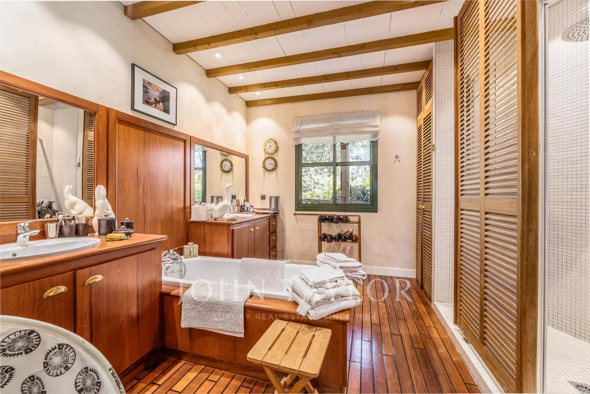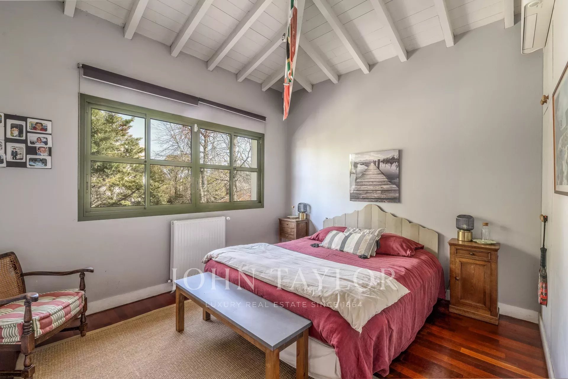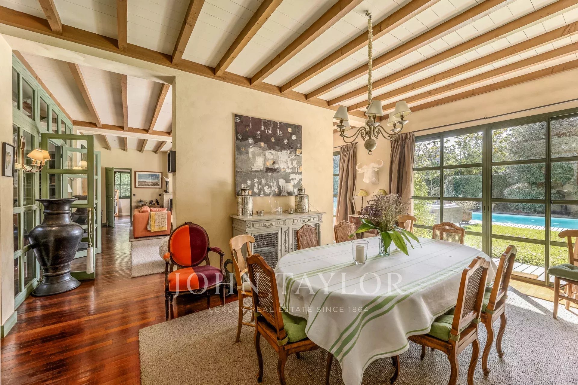 Située en retrait de la rue, au bout d’une allée privative, cette propriété préservée s’étend sur une belle parcelle paysagée avec piscine et espaces de stationnement.