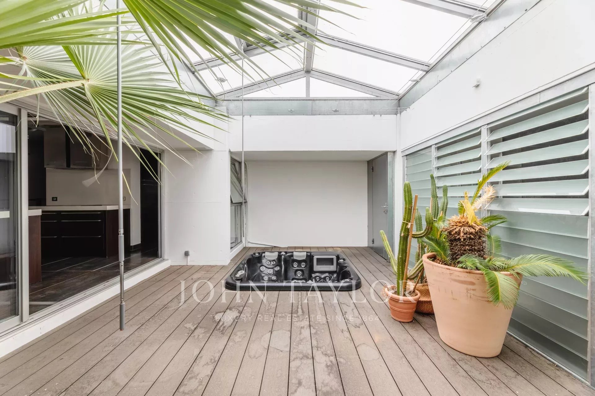 Les grandes baies vitrées qui encadrent chaque pièce du rez-de-chaussée fusionnent harmonieusement l'intérieur avec l'extérieur, tandis qu'un patio privé, doté d'un jacuzzi, ajoute une touche de luxe et d'intimité à votre quotidien. Une salle de sport dédiée vous offre un espace pour cultiver bien-être et vitalité.