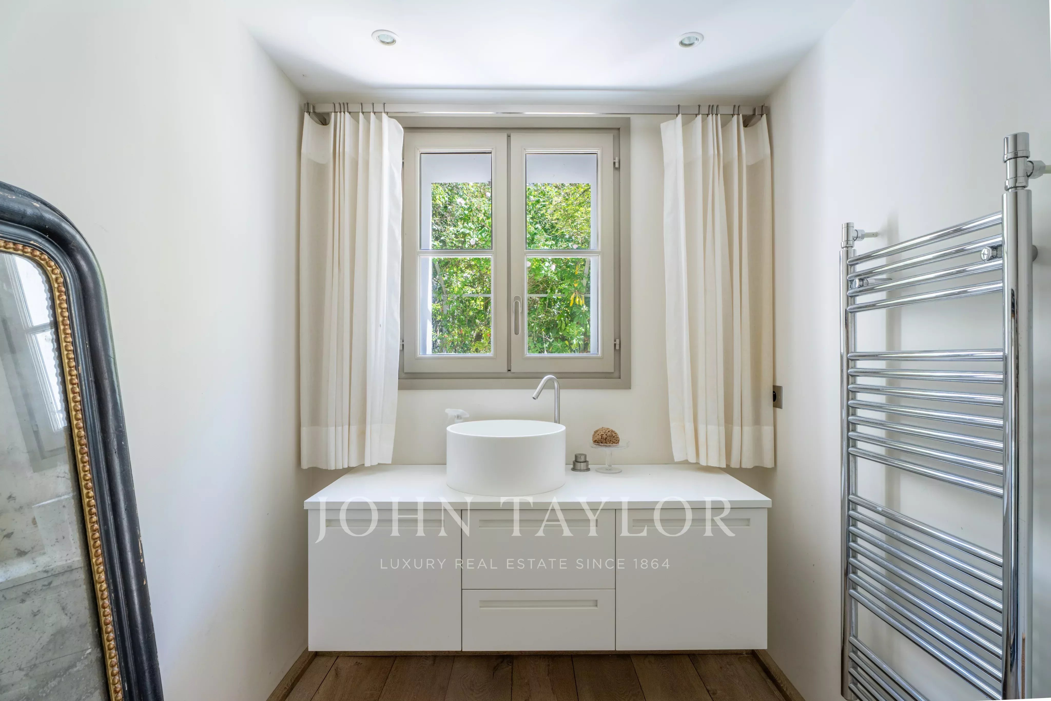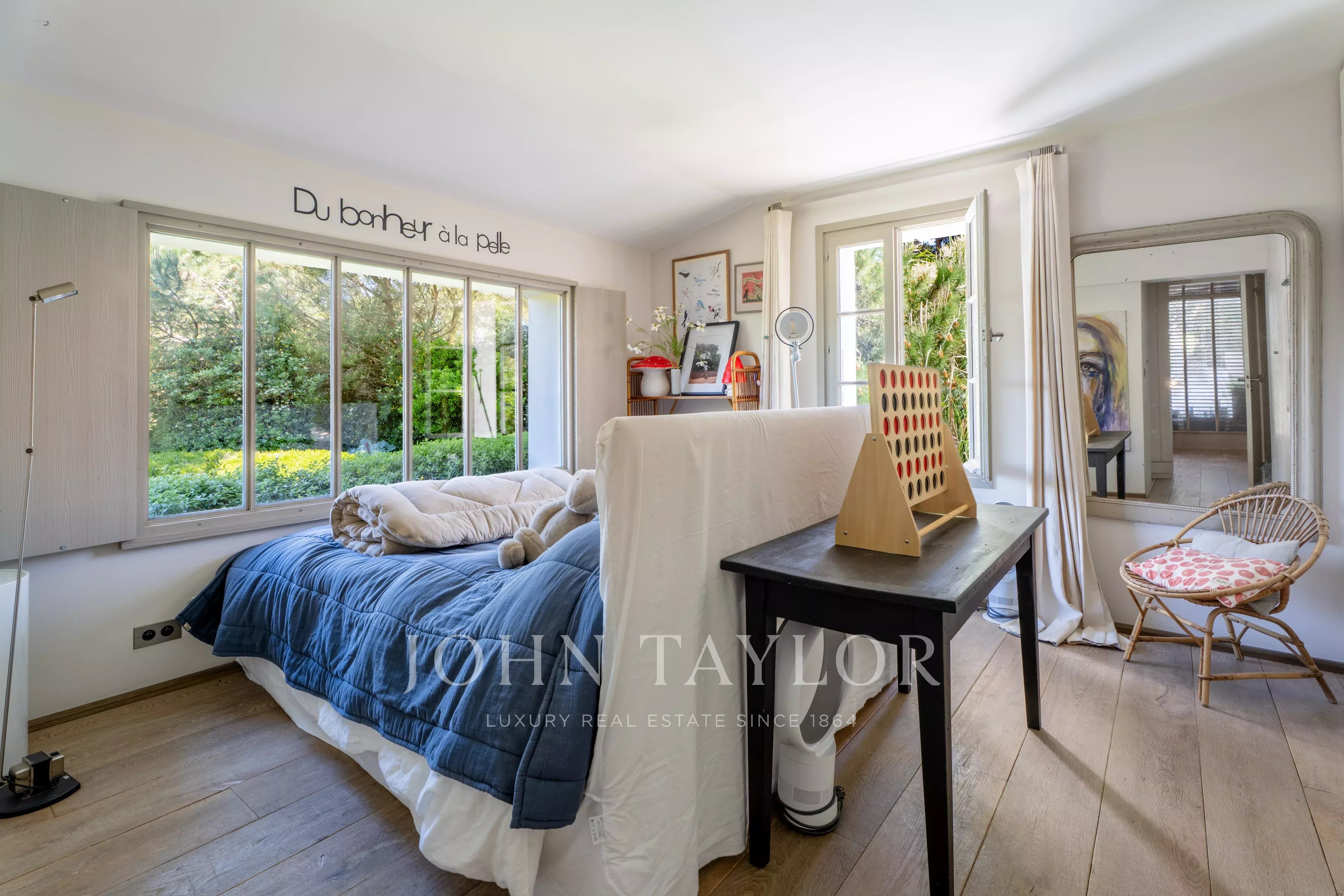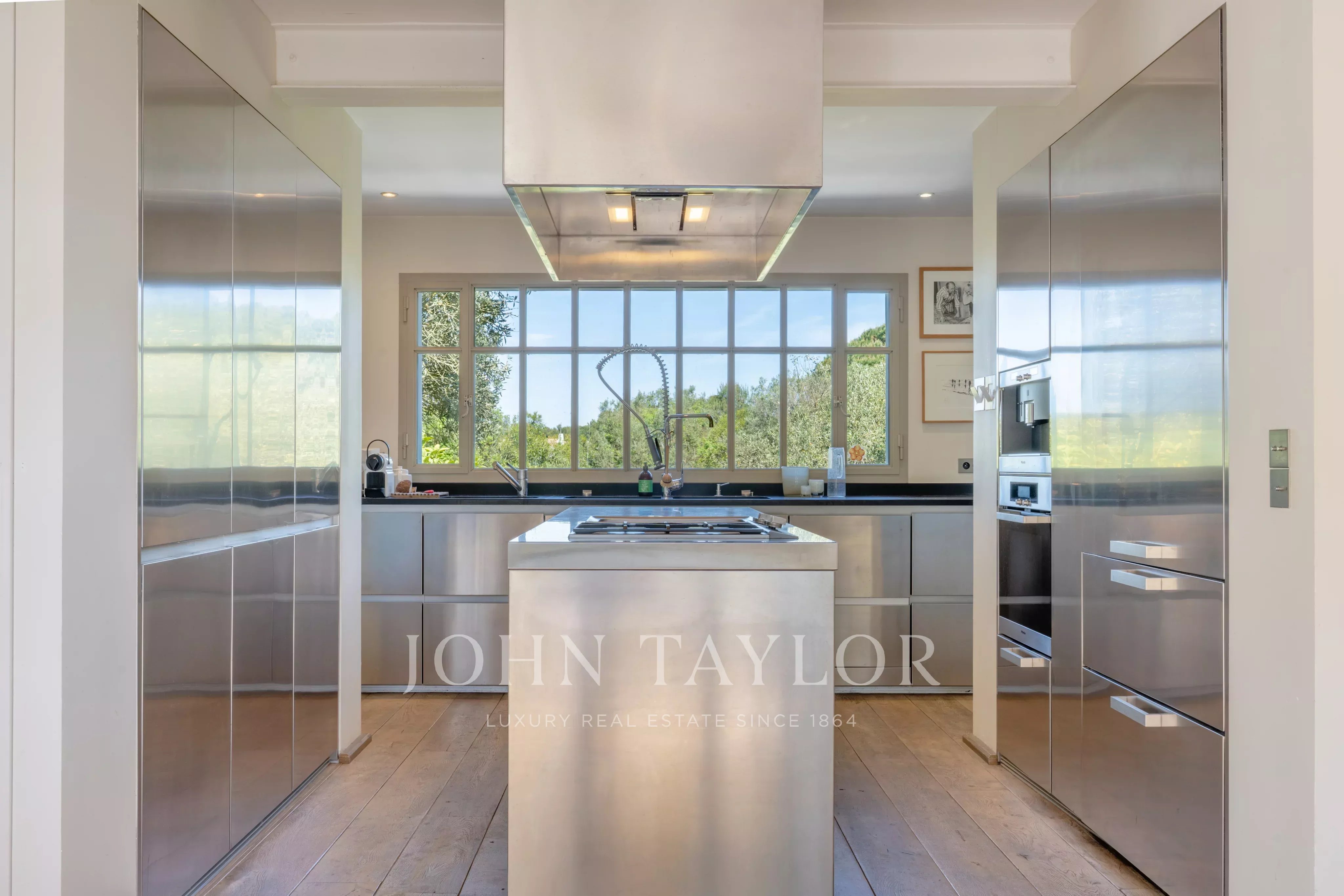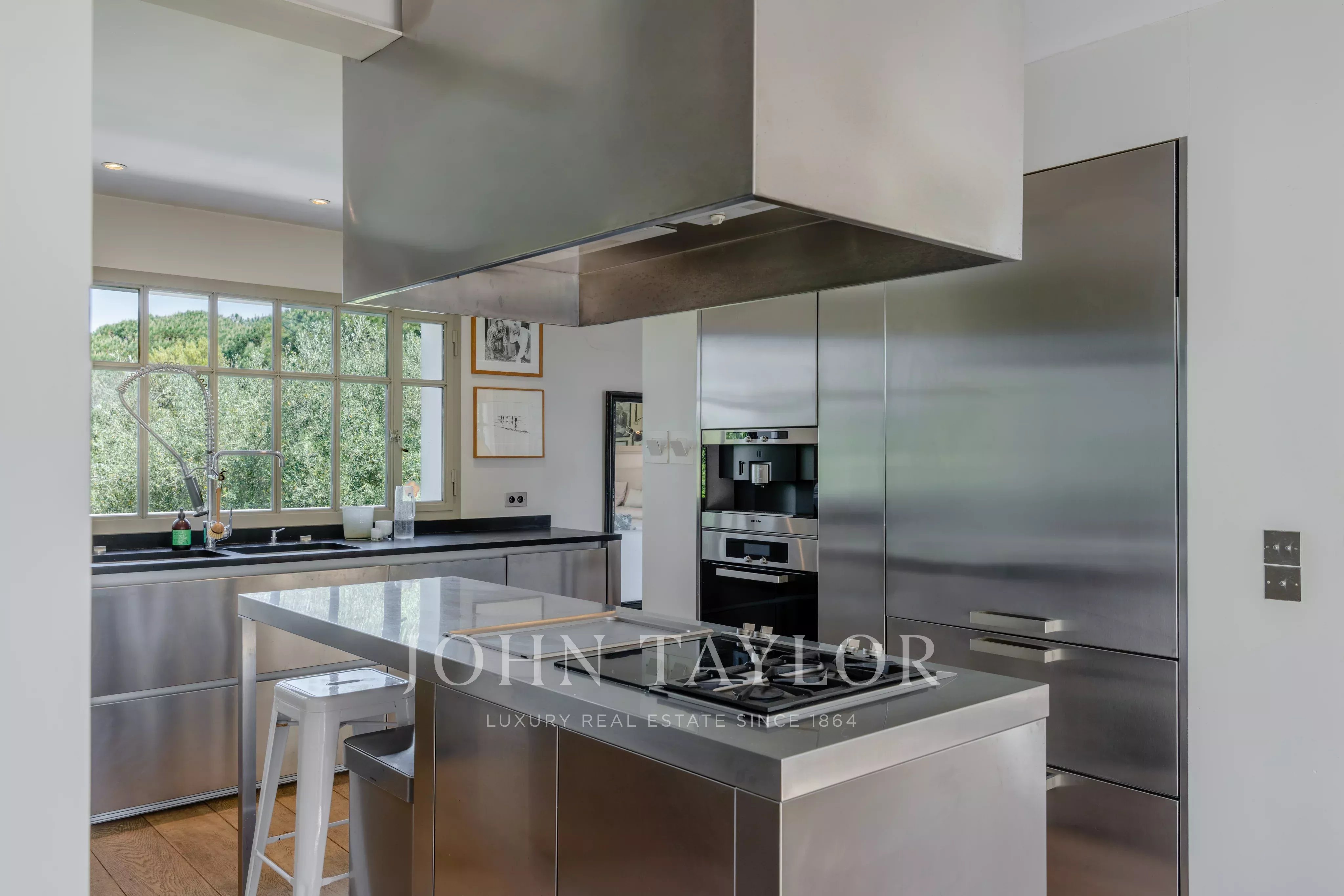 La propriété comprend une master suite spacieuse avec salle de bains privative ainsi que quatre suites parentales, chacune disposant de sa propre salle d’eau ou salle de bains, offrant un confort optimal pour accueillir famille et invités dans les meilleures conditions. Une cuisine professionnelle, parfaitement équipée, répond aux exigences d’une utilisation intensive ou d’une réception haut de gamme, tandis que l’ensemble des prestations reflète un niveau de qualité et de finition particulièrement élevé.