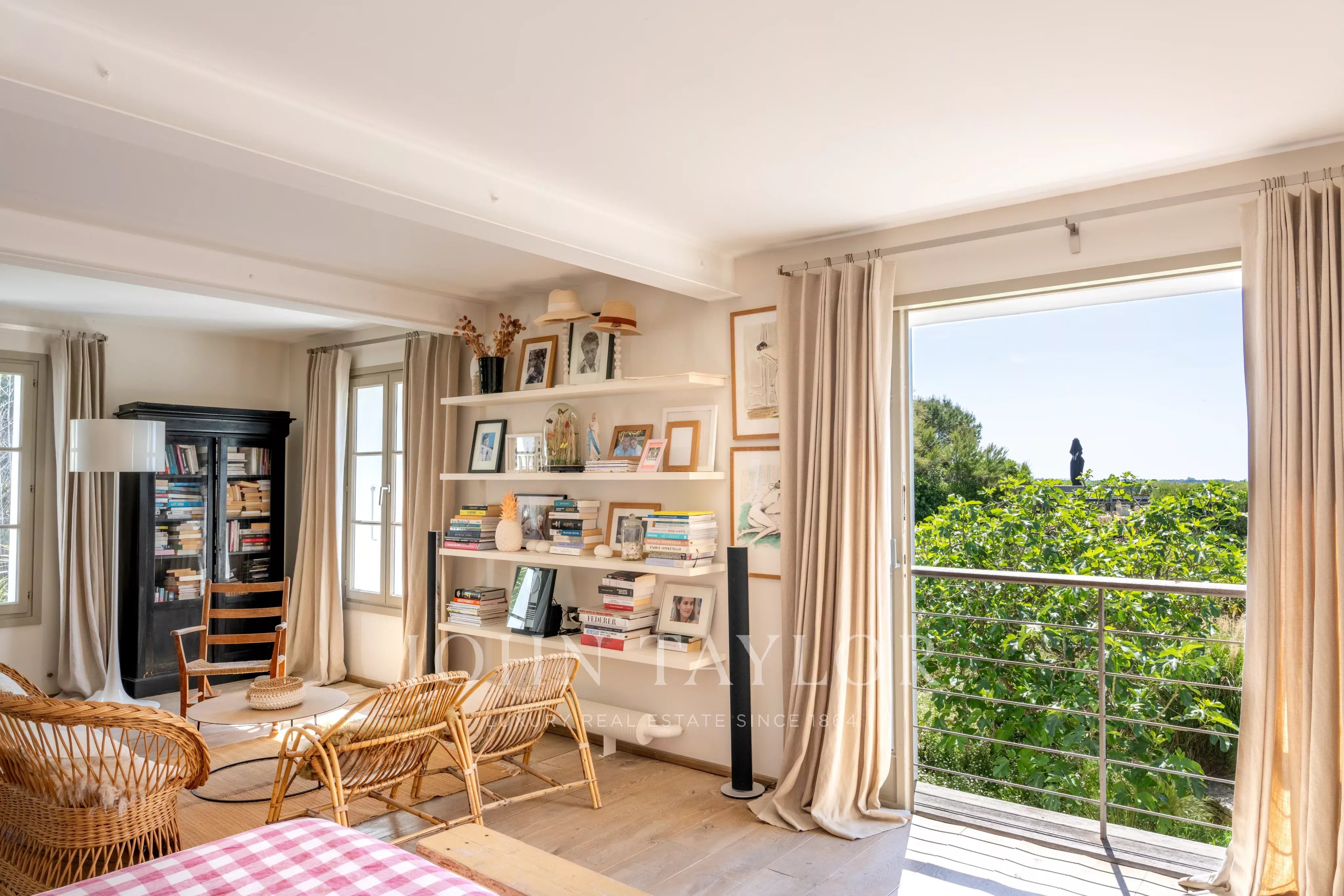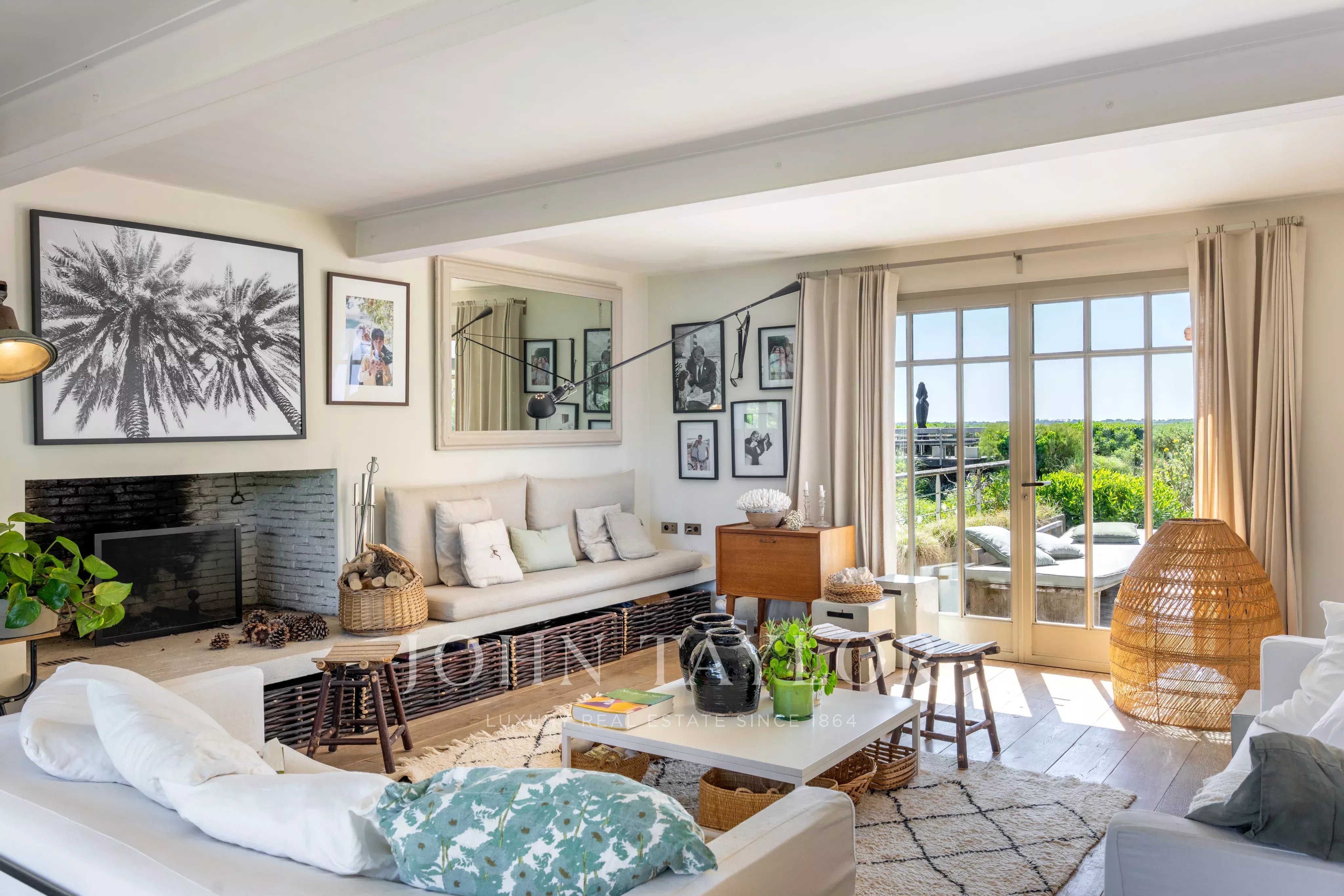 La maison développe environ 328 m² habitables, incluant un studio de service indépendant, et propose une organisation idéale pour une résidence familiale de prestige ou une propriété de villégiature. Les volumes, généreux et baignés de lumière, ont été pensés pour conjuguer élégance, intimité et convivialité. Les espaces de réception s’ouvrent naturellement sur plusieurs terrasses aux expositions Est et Ouest, permettant de profiter du soleil tout au long de la journée et d’une qualité de vie exceptionnelle face à la nature.