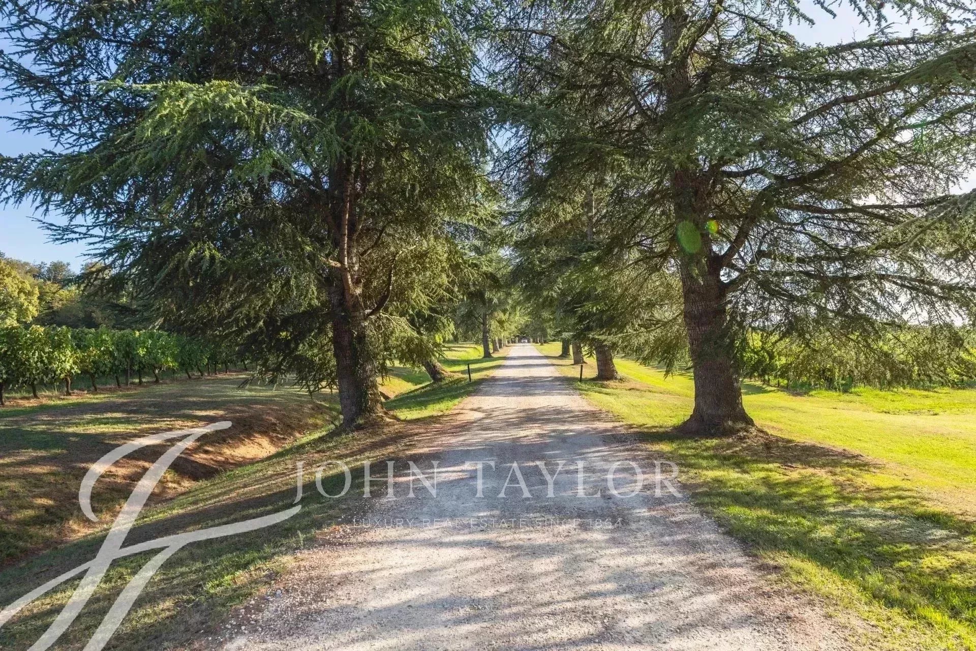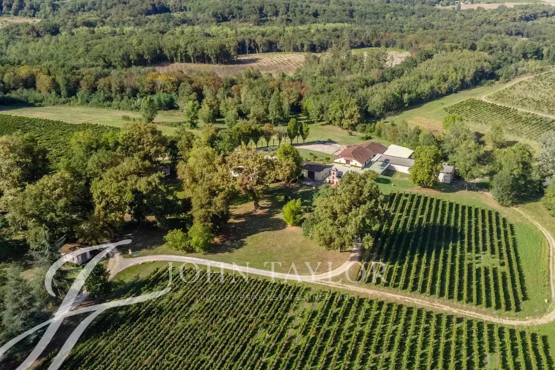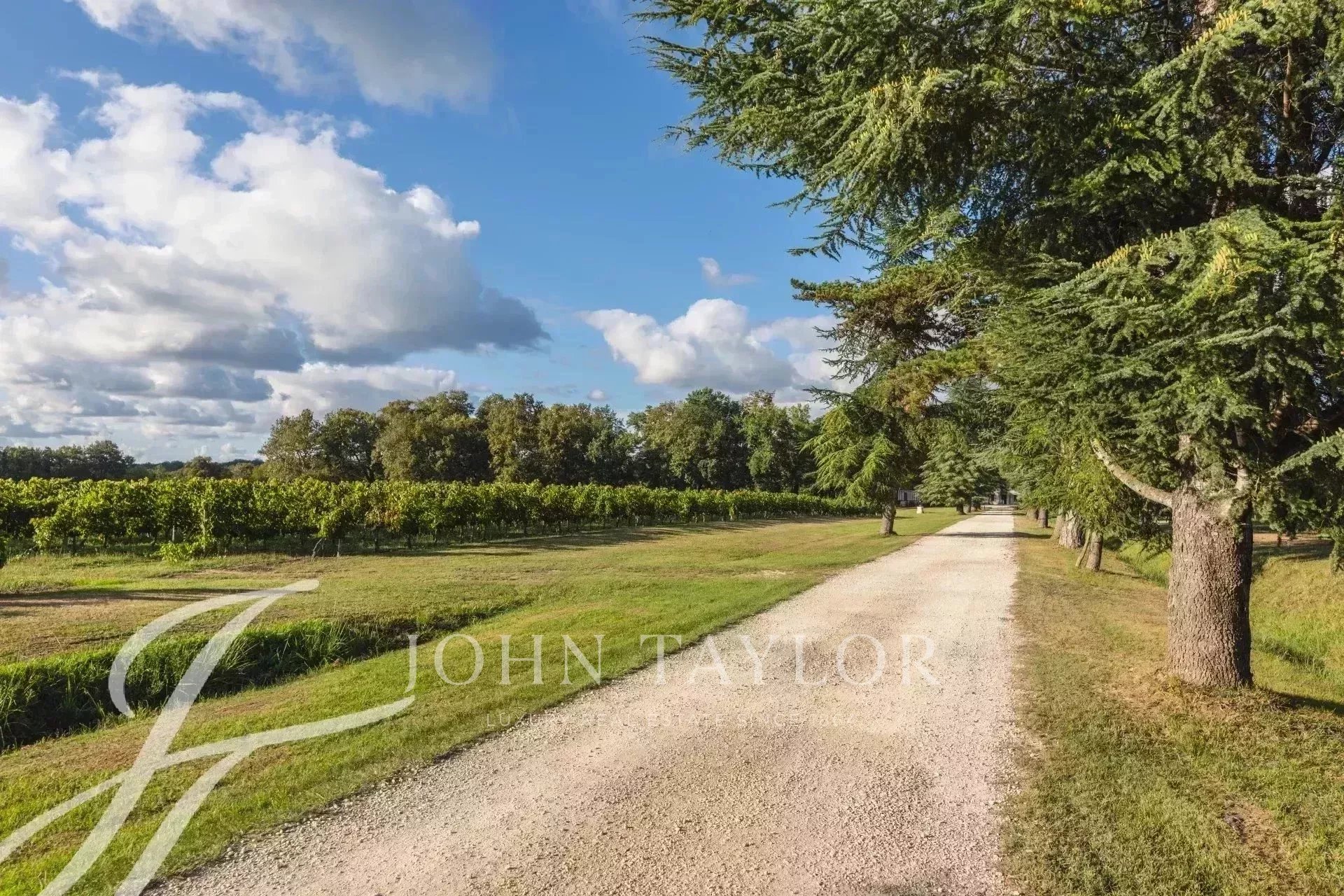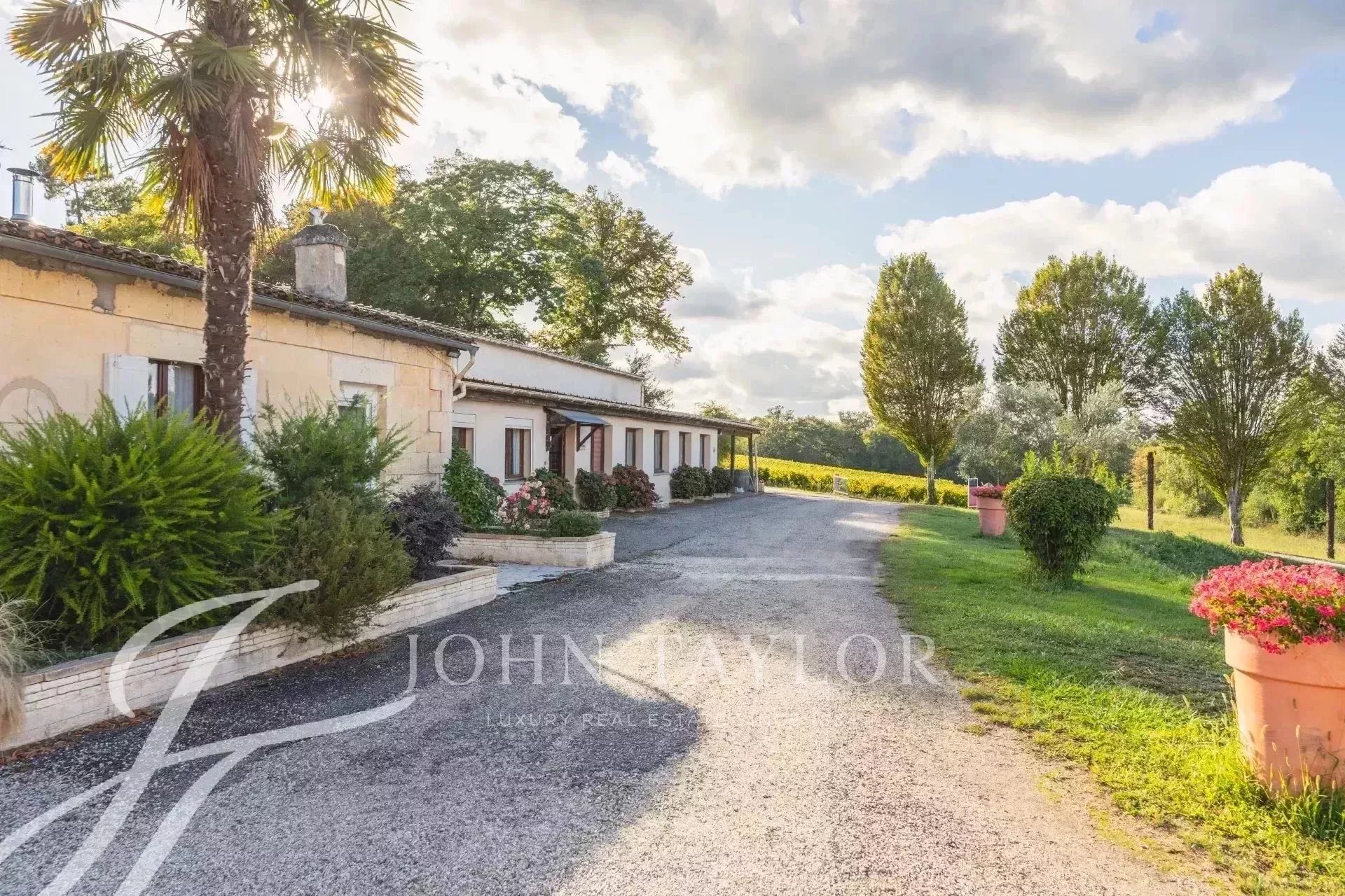 Nichée au cœur d'un paysage vallonné, cette propriété viticole entoure une élégante demeure de style Bordelais datant du XIXe siècle. Offrant une vue exceptionnelle sur les étendues de vignes et les bois environnants, cette demeure est le joyau d'un domaine enchanteur.