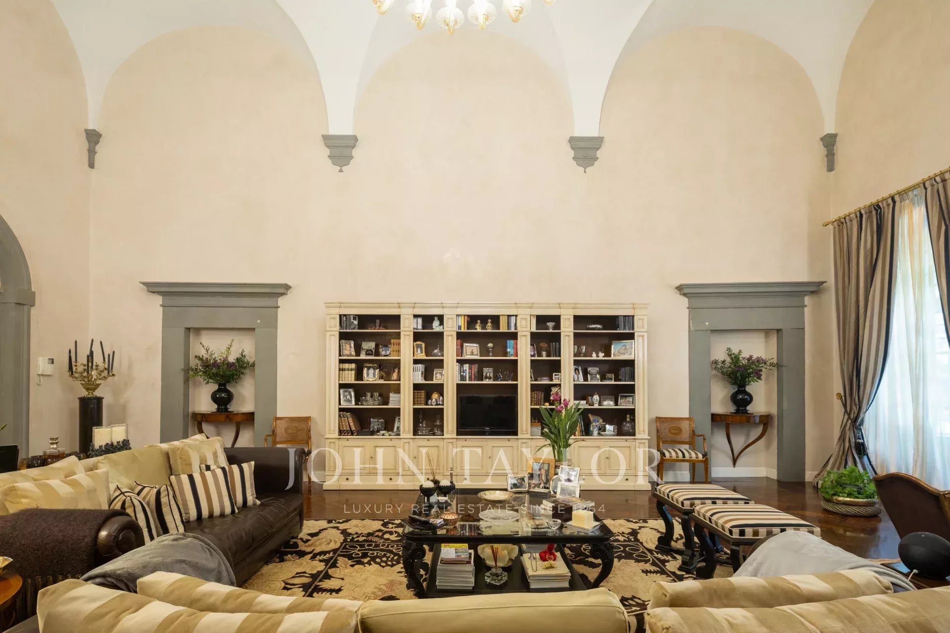 Nichée sur les premières collines de Lastra a Signa, au sein d’une prestigieuse villa historique du XVe siècle finement restaurée, se trouve ce raffiné appartement d’environ 300 m², situé au rez-de-chaussée et entouré de verdure.