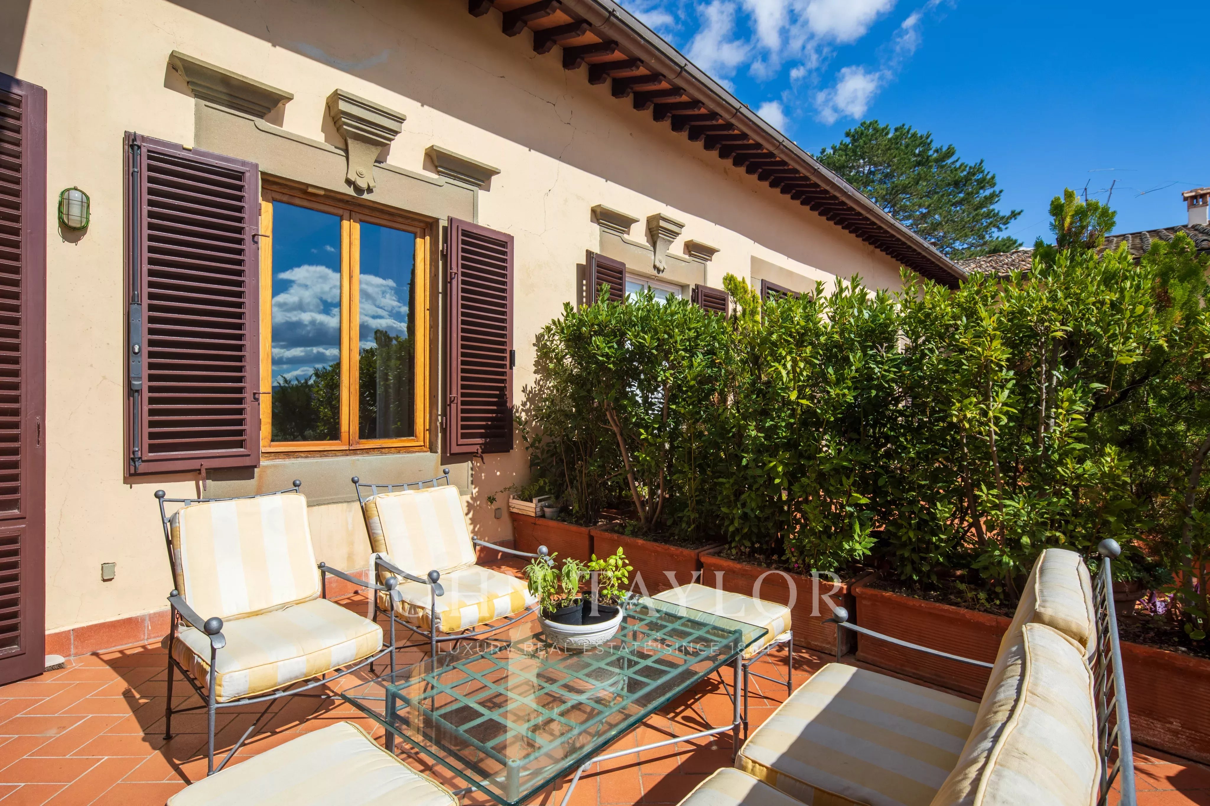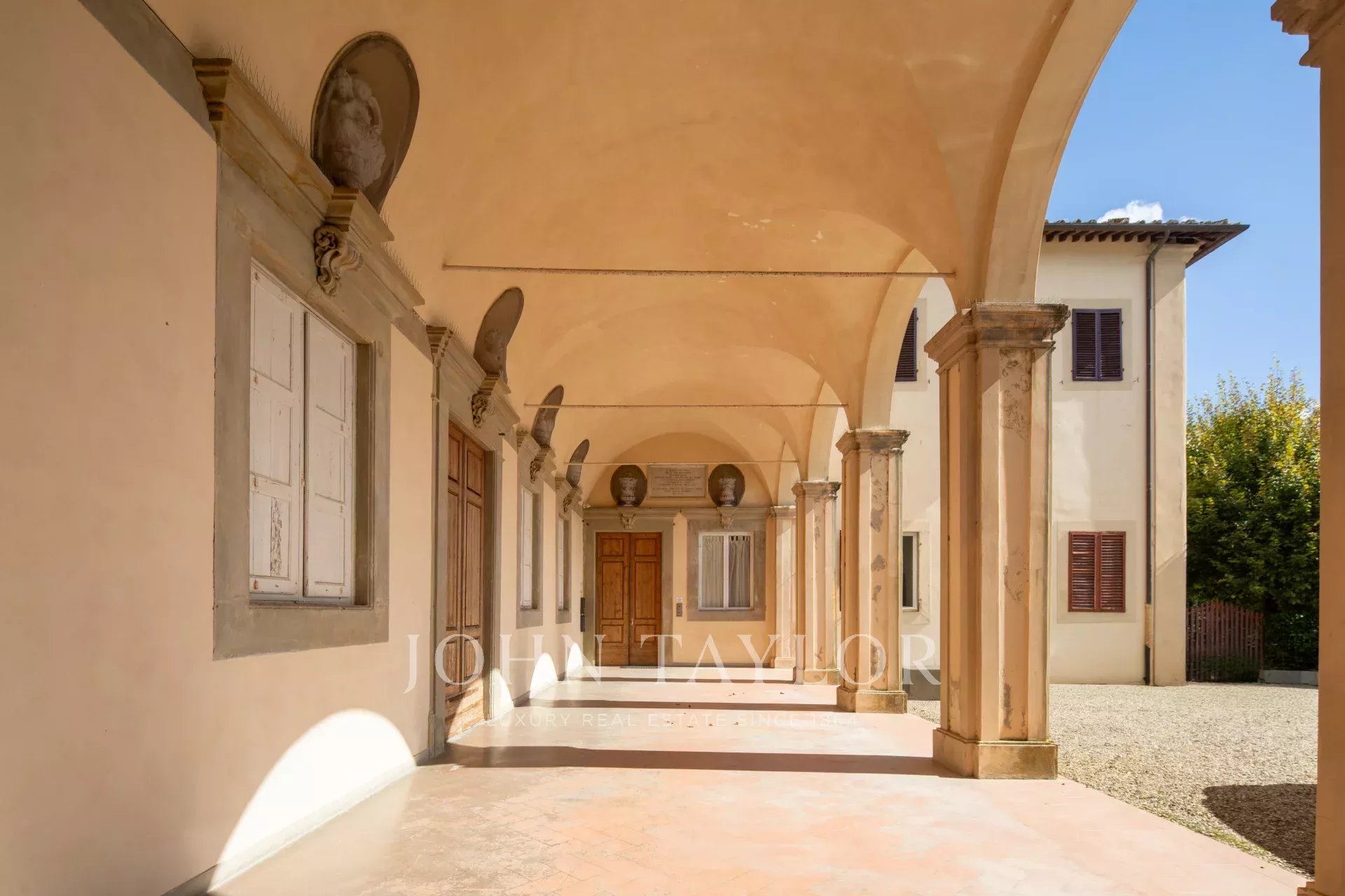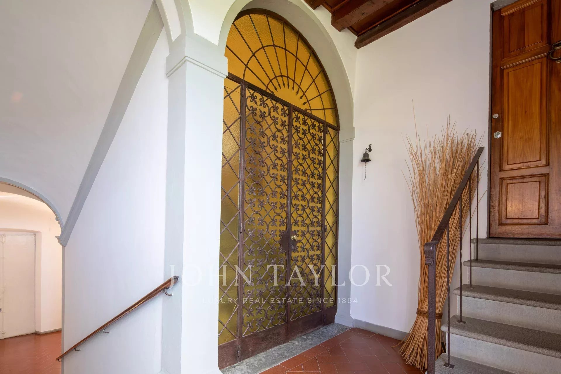 Prestigieuse propriété située au rez-de-chaussée d'une splendide villa historique, construite entre le 14ème et le 15ème siècle et appartenant à la célèbre famille Médicis, qui l'utilisait au 18ème siècle pour des fêtes et des banquets. La villa est entourée d'un luxuriant parc de copropriété d'environ 10 000 m², qui confère à la résidence une élégance et une intimité uniques. On accède à l'appartement par une charmante loggia et un imposant escalier, qui préfigurent le raffinement de l'intérieur.