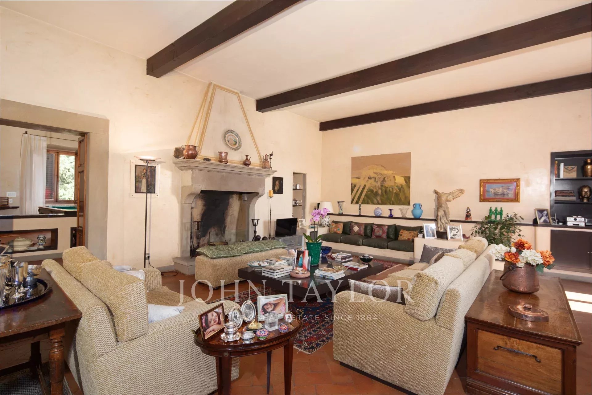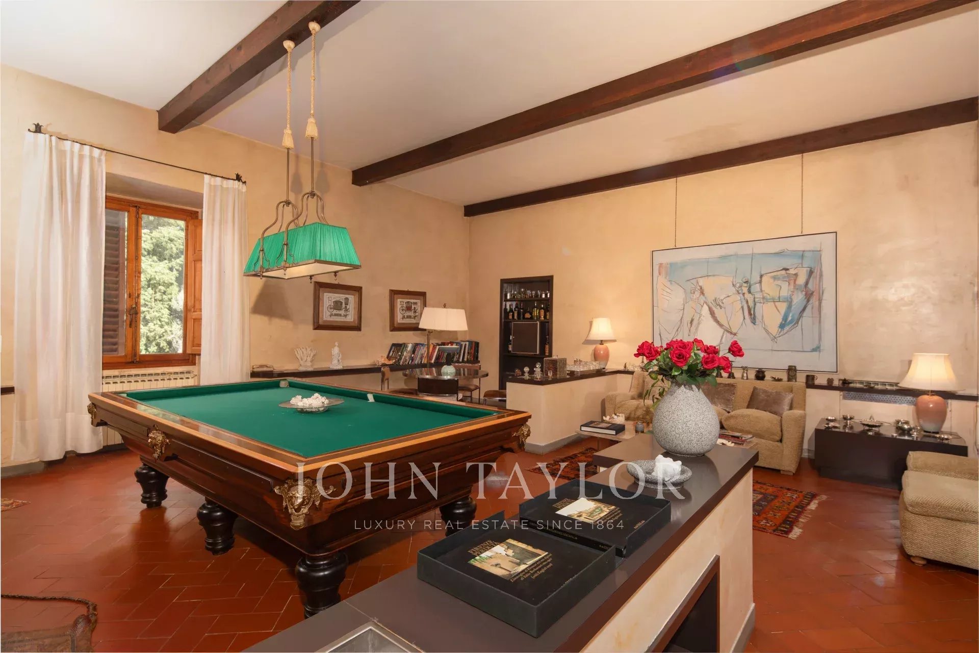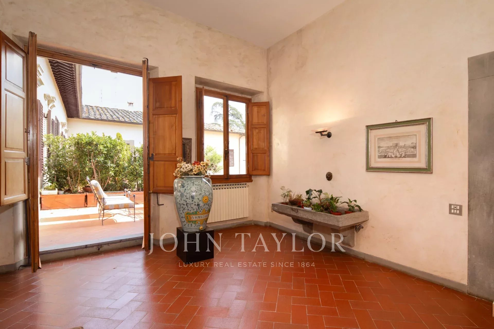 Prestigieuse propriété située au rez-de-chaussée d'une splendide villa historique, construite entre le 14ème et le 15ème siècle et appartenant à la célèbre famille Médicis, qui l'utilisait au 18ème siècle pour des fêtes et des banquets. La villa est entourée d'un luxuriant parc de copropriété d'environ 10 000 m², qui confère à la résidence une élégance et une intimité uniques. On accède à l'appartement par une charmante loggia et un imposant escalier, qui préfigurent le raffinement de l'intérieur.