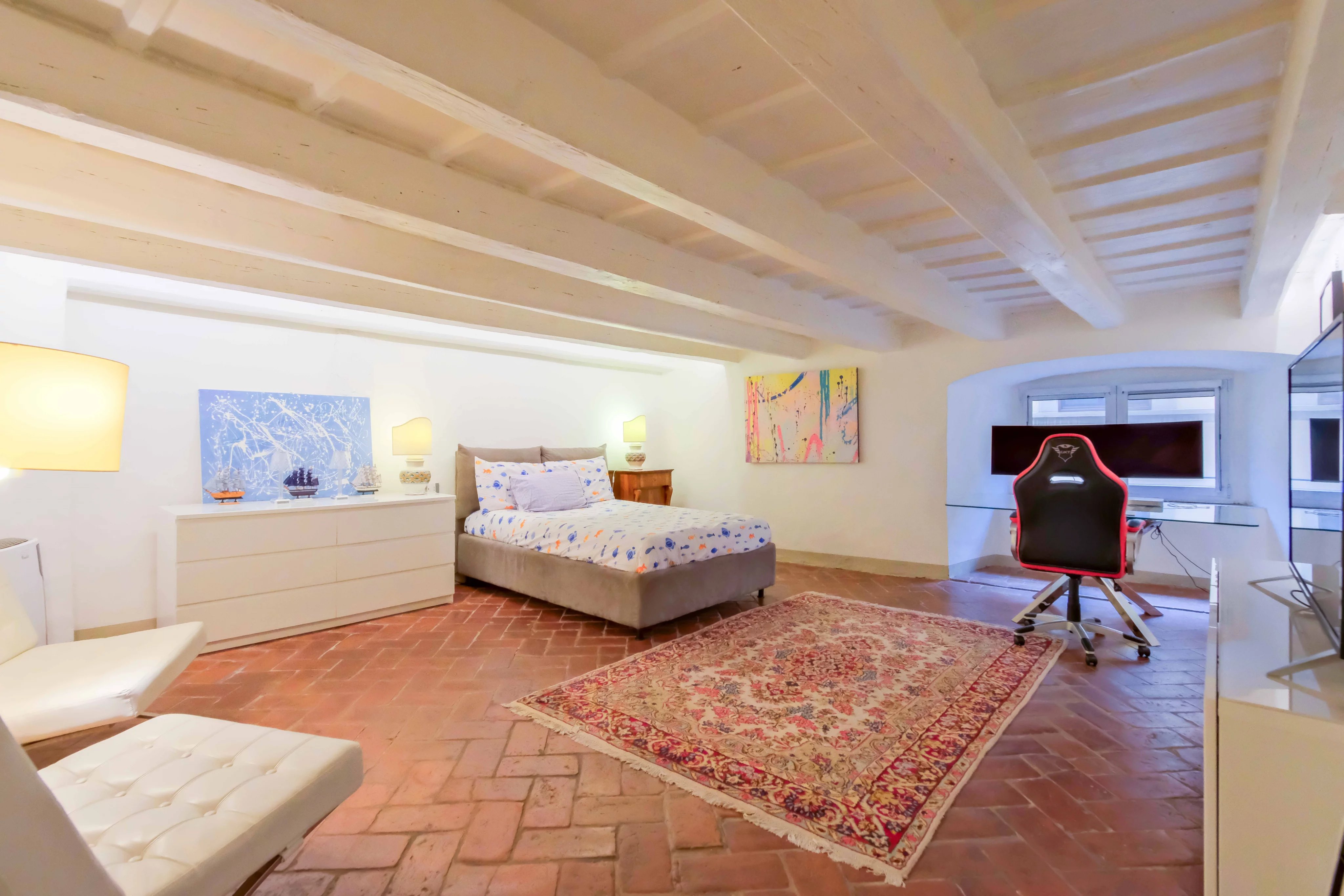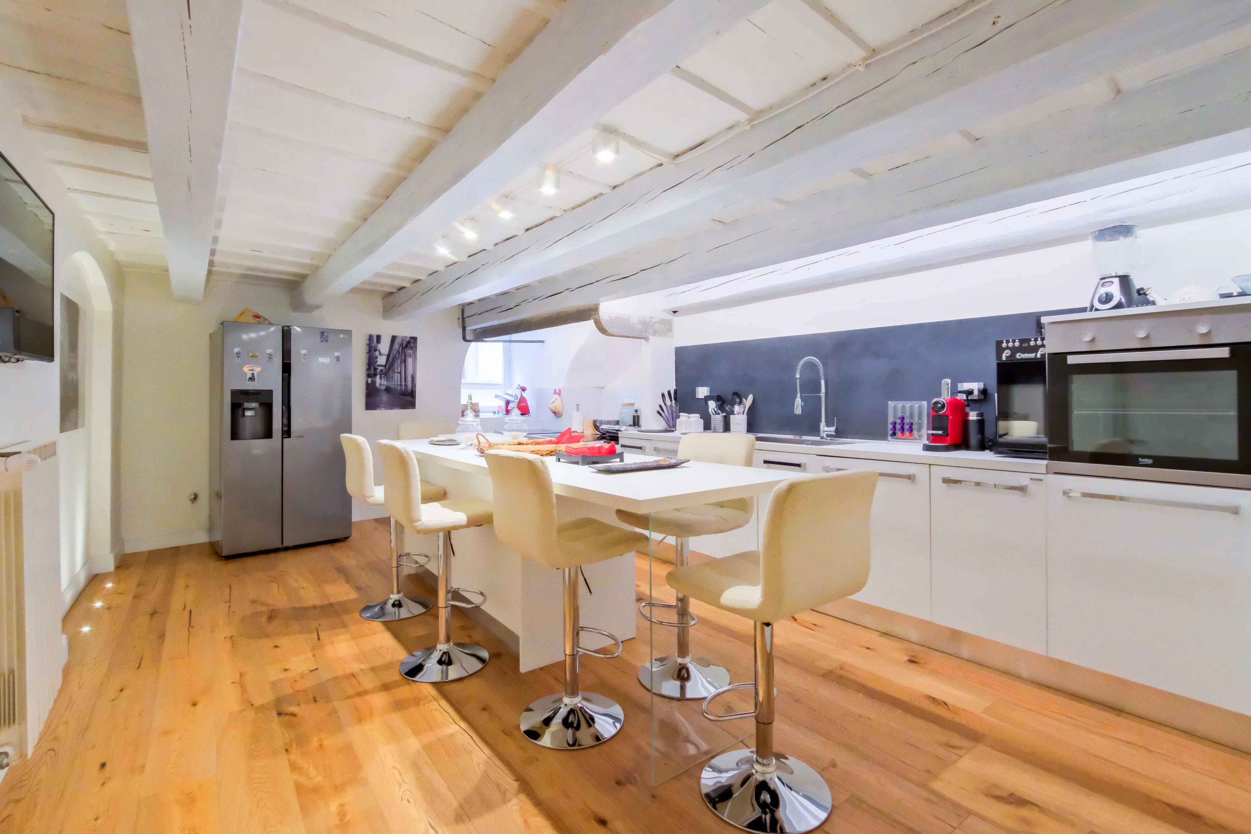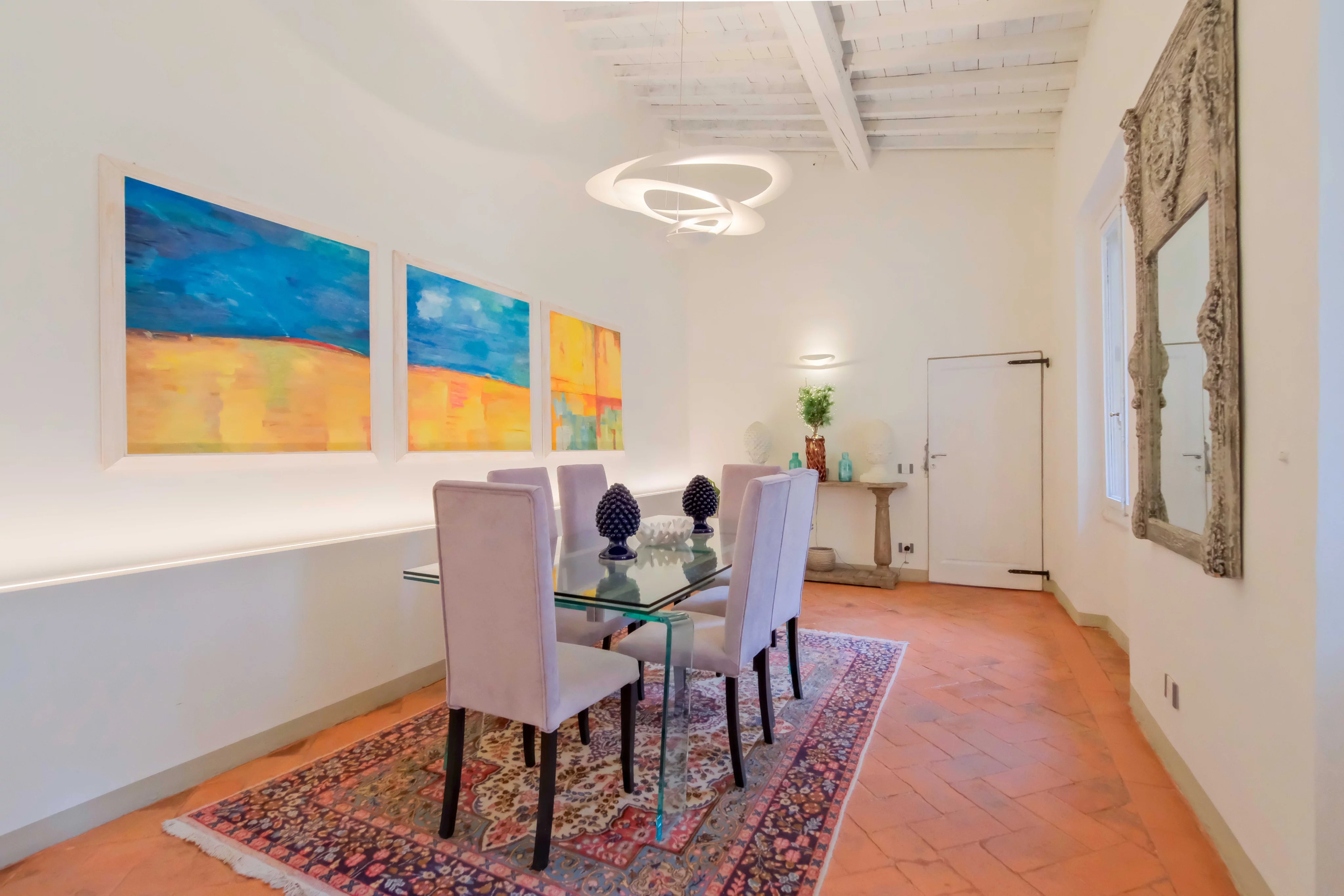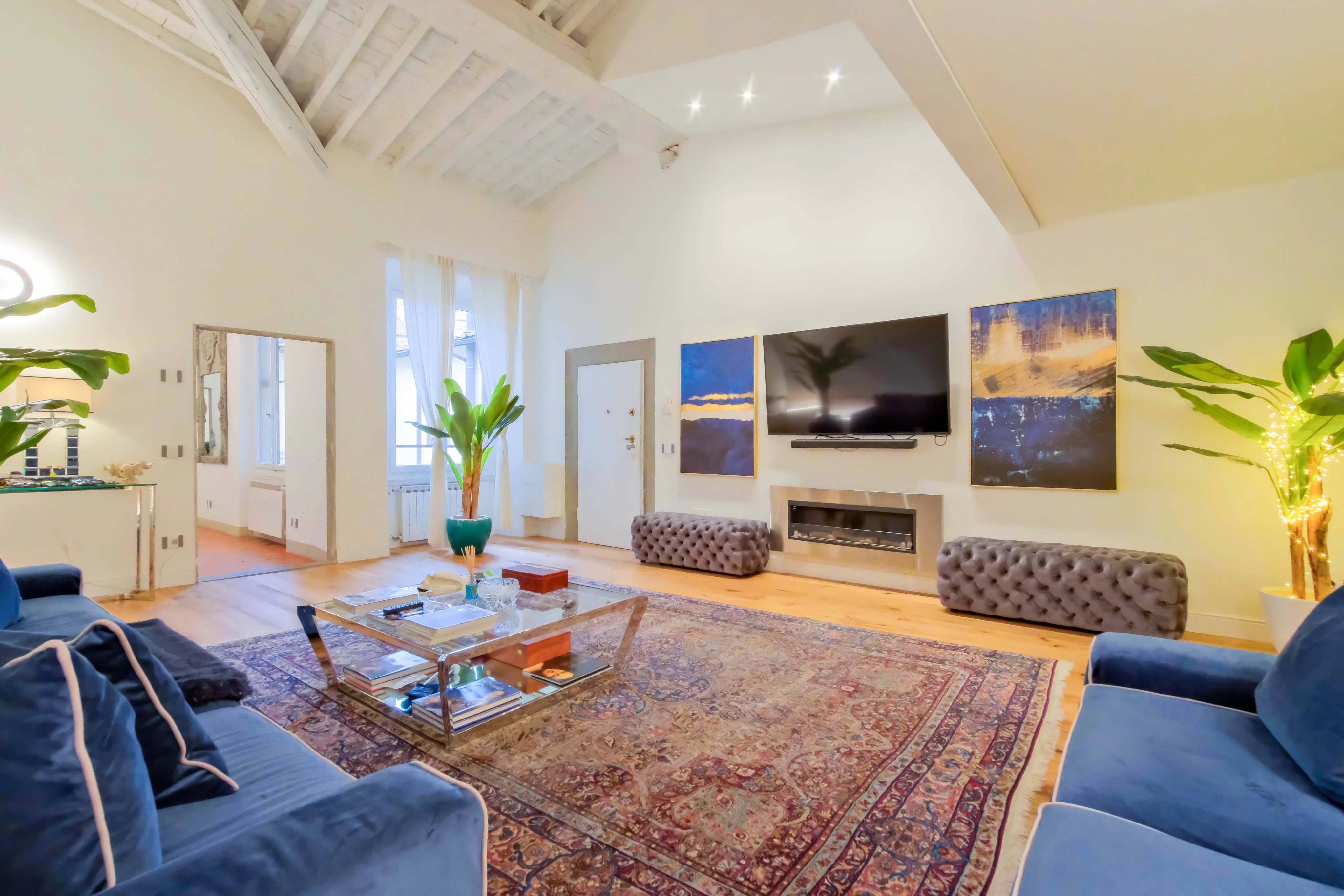 Cet appartement raffiné est idéalement situé en plein centre de Florence. Avec ses huit pièces, il offre un espace de vie généreux, mettant en valeur des détails design et un mobilier élégant. Le salon spacieux est parfait pour la détente, avec ses canapés confortables et sa décoration soignée qui crée une ambiance chaleureuse.