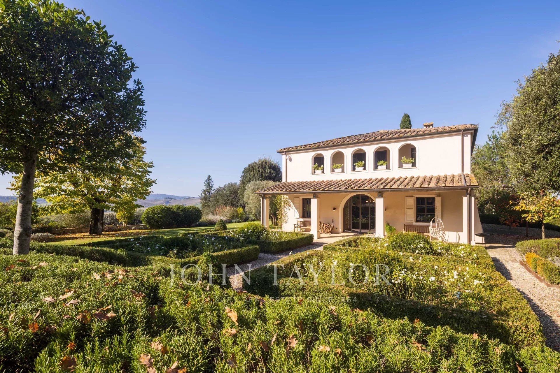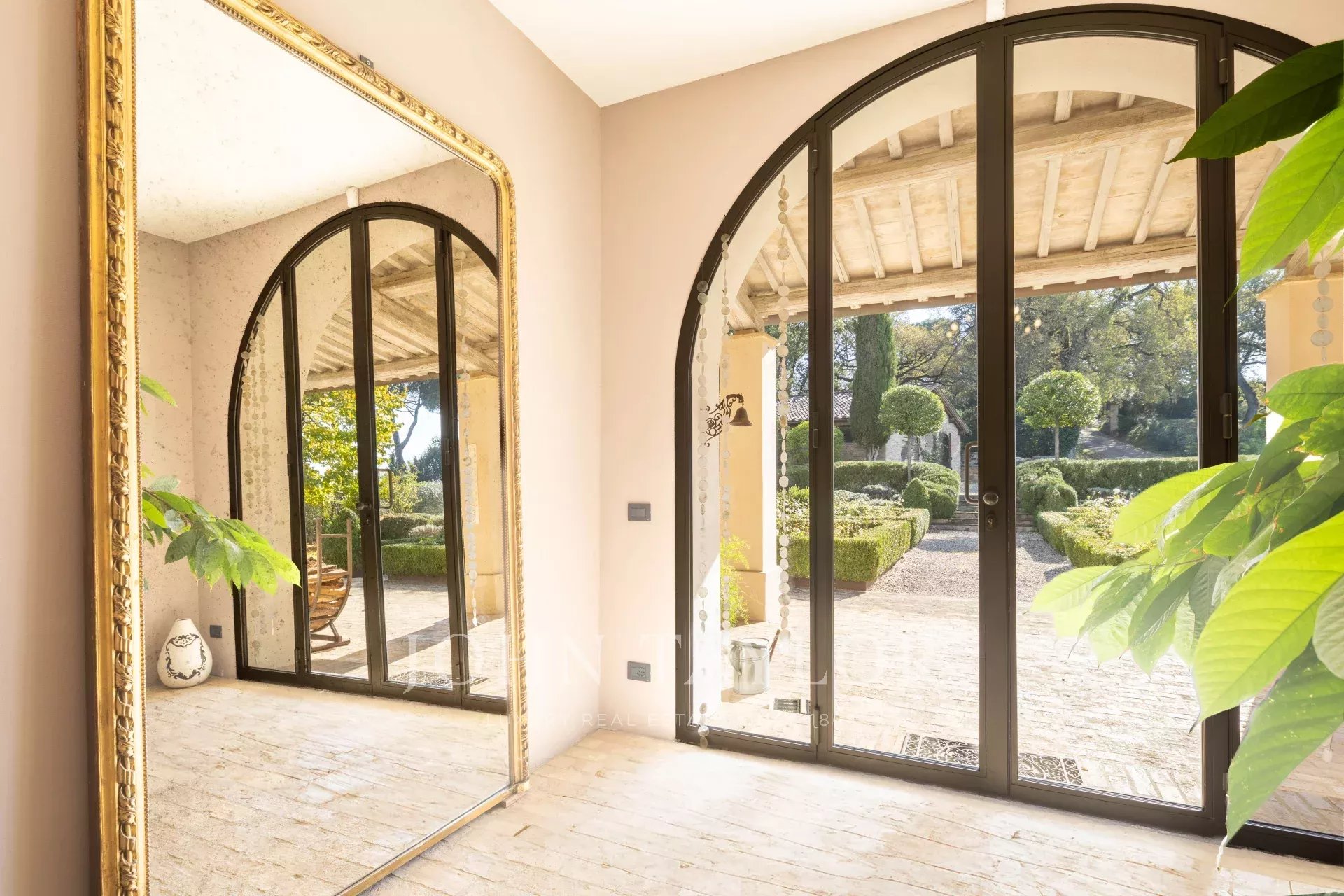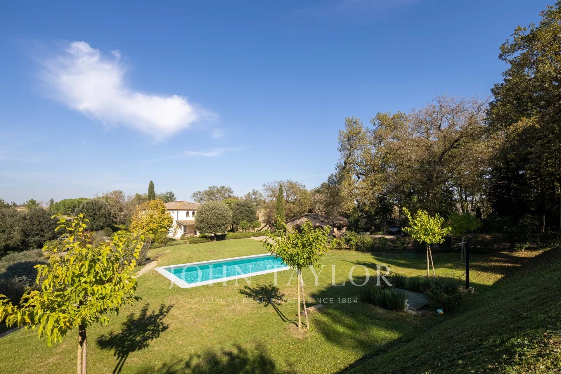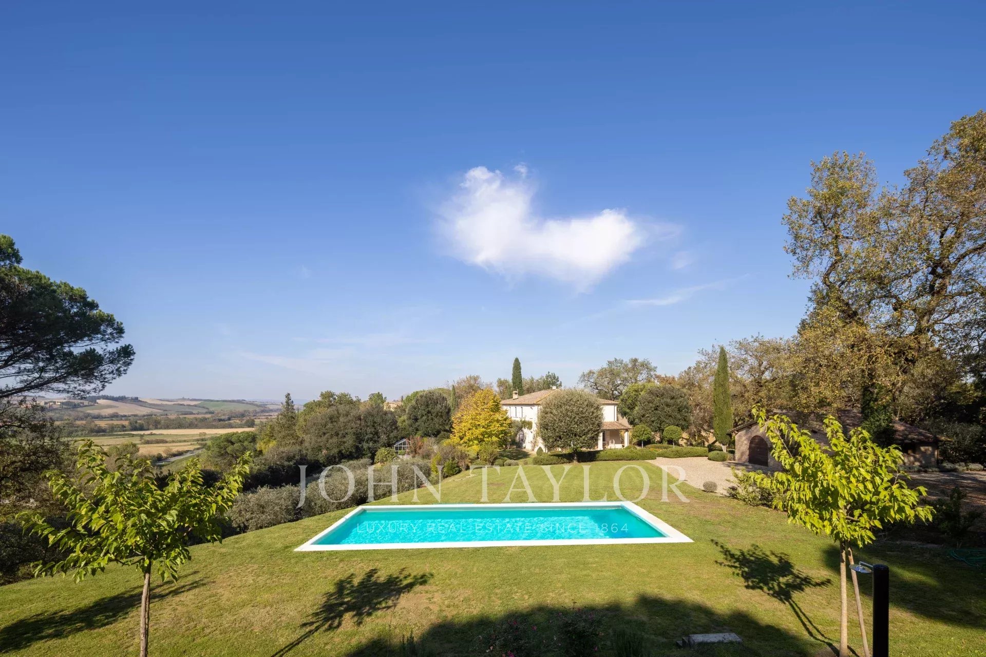 Entourée d'un charmant jardin à l'italienne, la propriété offre des vues spectaculaires sur les collines ondulantes, agrémentées d'un potager bien entretenu, de 50 oliviers et d'une piscine privée avec douche extérieure, parfaite pour profiter des chaudes journées d'été.