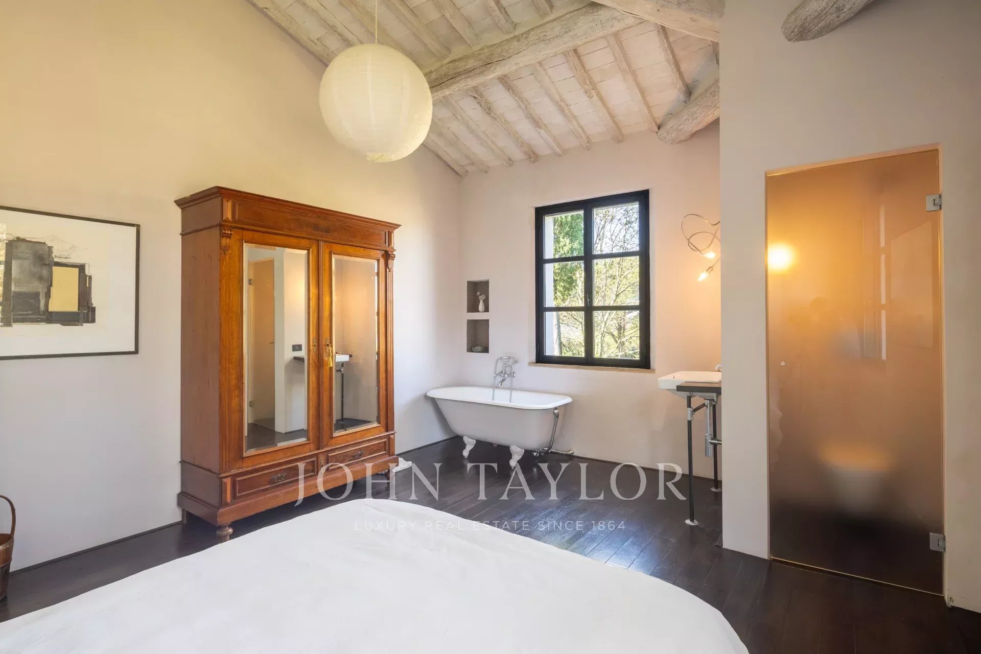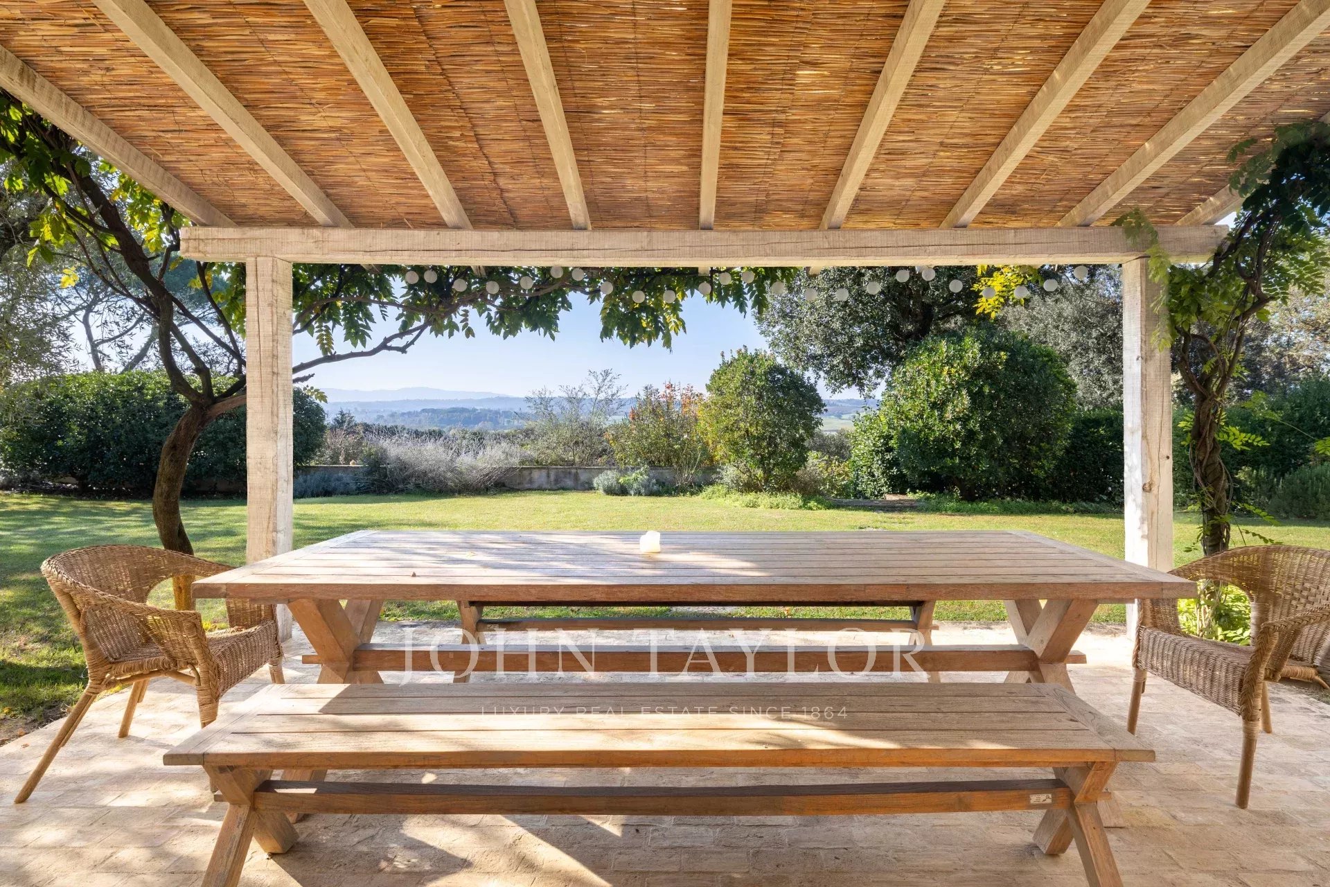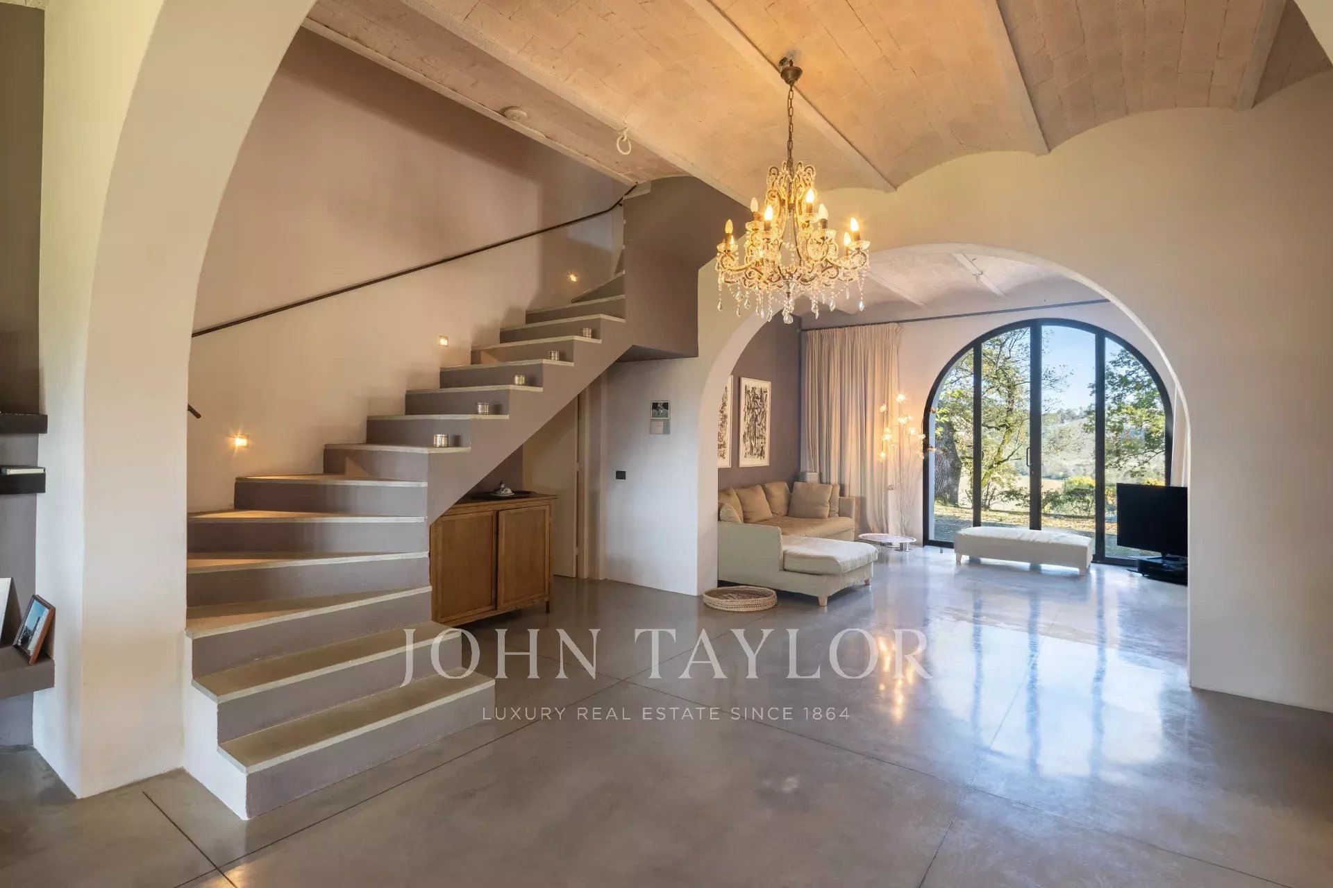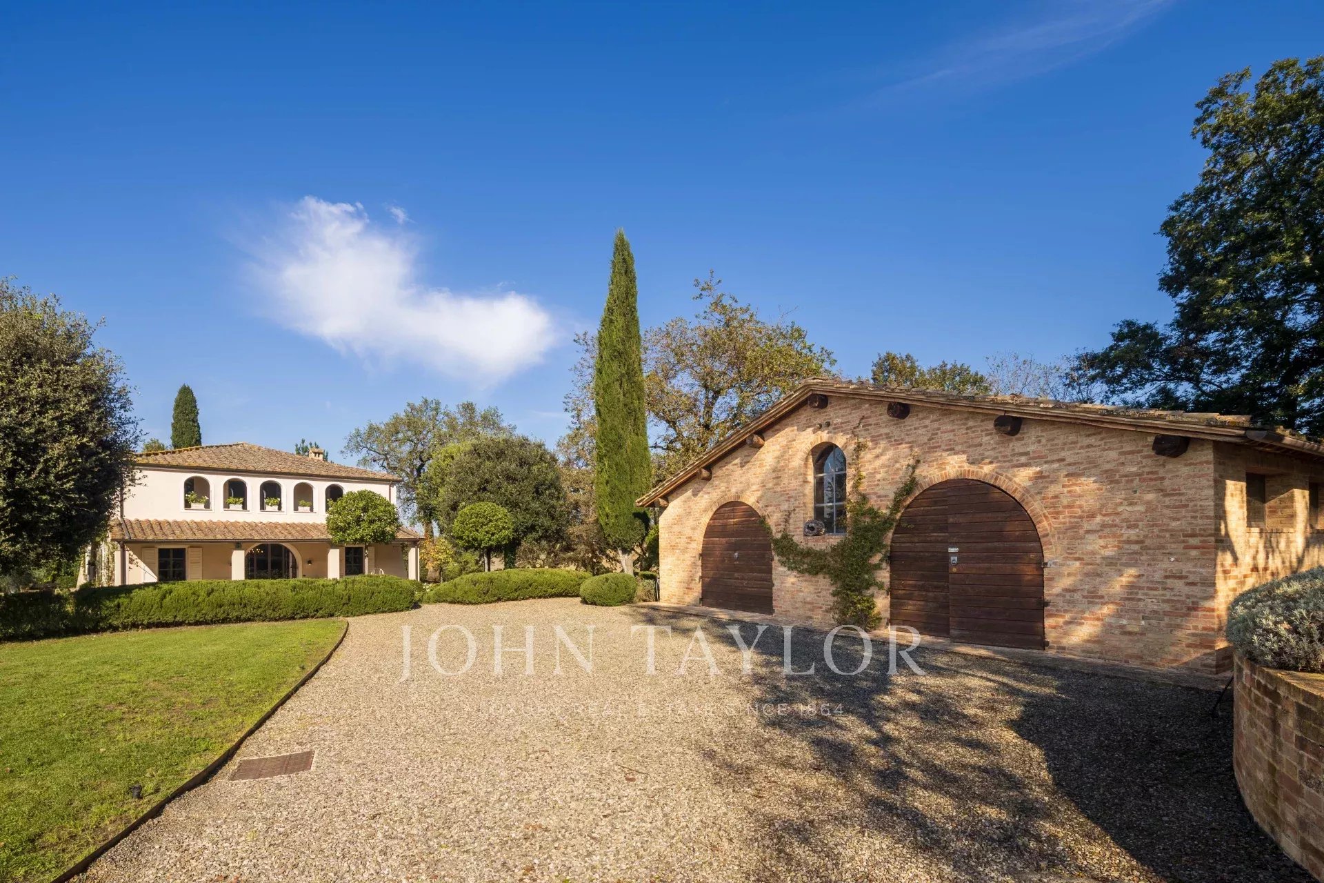 Entourée d'un charmant jardin à l'italienne, la propriété offre des vues spectaculaires sur les collines ondulantes, agrémentées d'un potager bien entretenu, de 50 oliviers et d'une piscine privée avec douche extérieure, parfaite pour profiter des chaudes journées d'été.