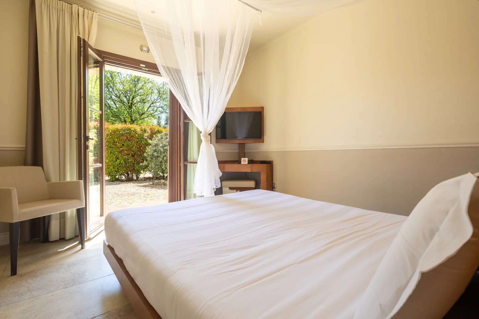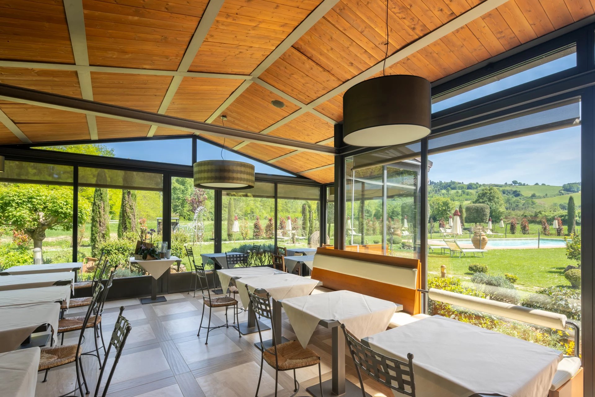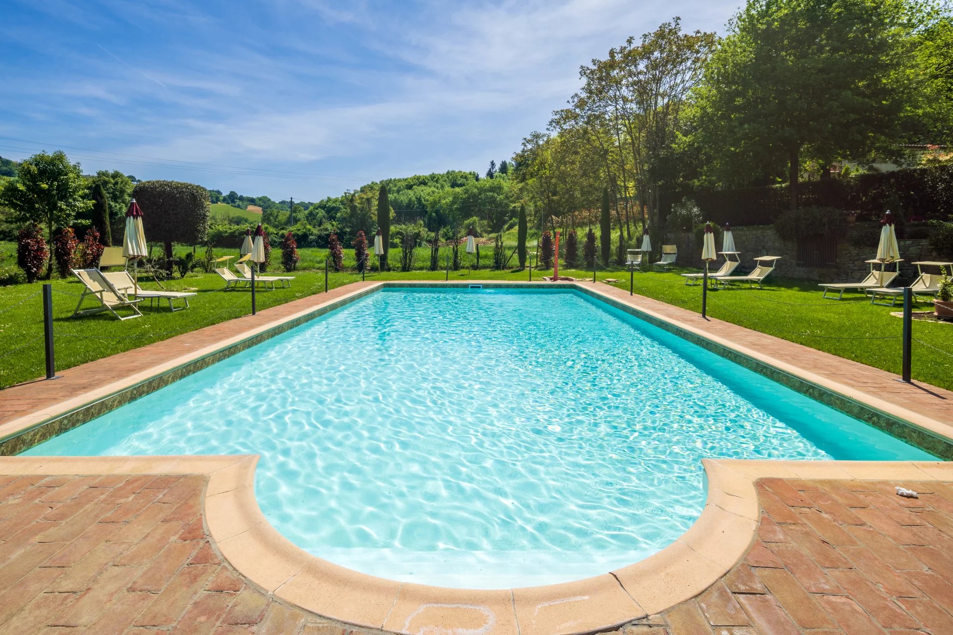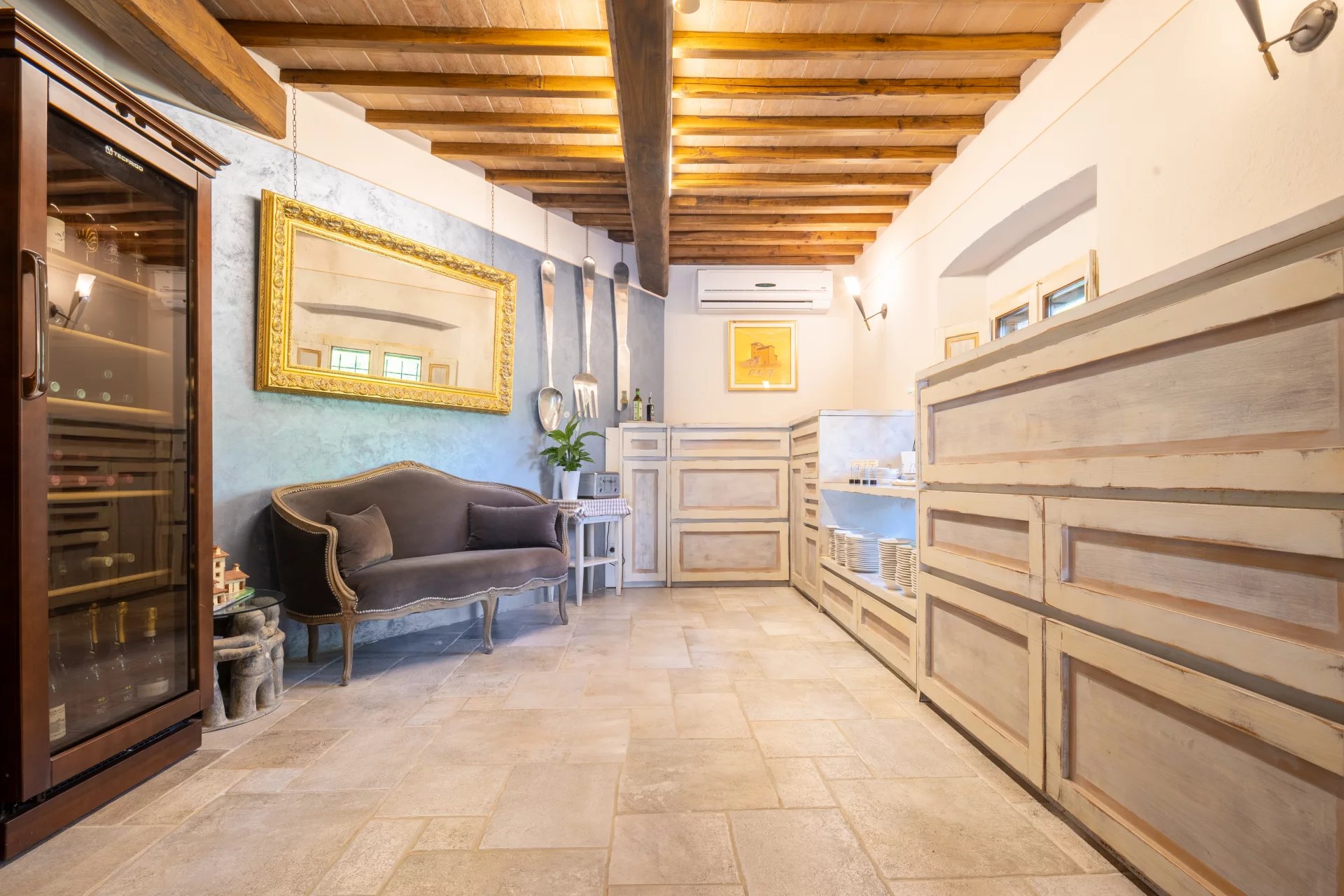 Avec une superficie totale d’environ 600 mètres carrés répartis sur deux niveaux, l’hôtel comprend 16 chambres, chacune unique dans son style et enrichie d’éléments traditionnels tels que des poutres apparentes, des sols en terre cuite et des vues panoramiques sur les collines toscanes. L’atmosphère est celle d’une résidence de charme, avec des intérieurs élégants conçus pour offrir un confort maximal. À l’extérieur, une grande piscine de 14x7 mètres est entourée de jardins soignés, d'une grande terrasse couverte et de 4,6 hectares de terrain agricole qui entourent la propriété.