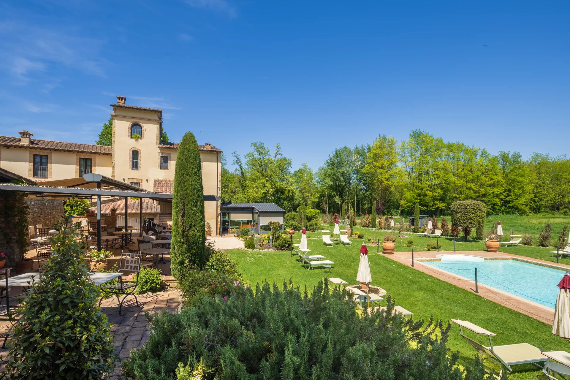 L’accès privé et la route de terre menant à la propriété assurent intimité et tranquillité, faisant de cet hôtel boutique une solution idéale pour ceux qui recherchent une expérience exclusive en pleine nature, tout en restant proche des principaux centres d'intérêt. La propriété se trouve à seulement 5 minutes de San Gimignano, renommée pour ses tours médiévales, et à une position stratégique pour visiter également Sienne, Florence et Pise, toutes facilement accessibles.