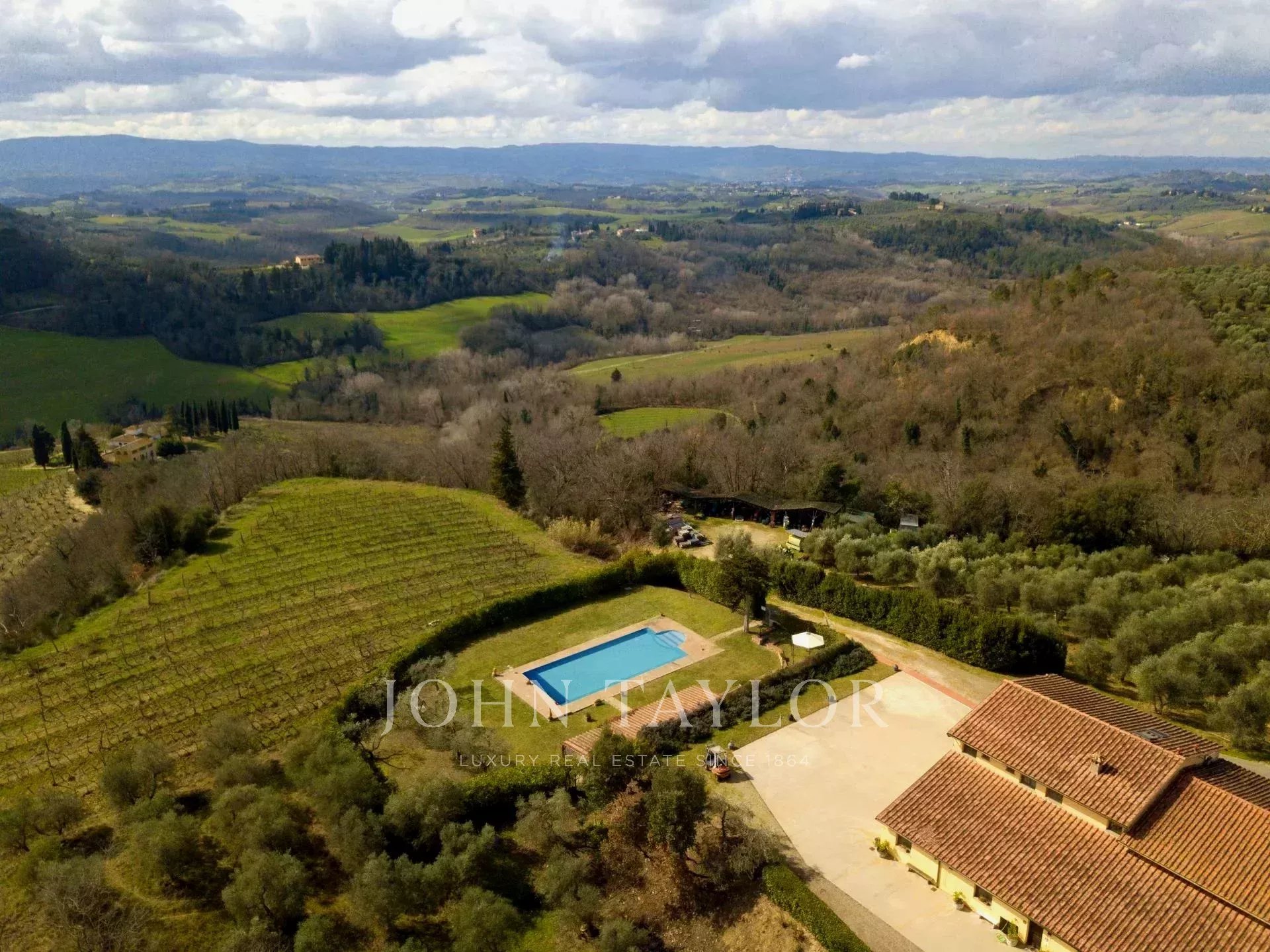 Ce domaine pittoresque, situé entre Semifonte et San Gimignano en Toscane, bénéficie d'une situation stratégique à proximité de Florence et de Sienne, offrant un accès facile à des destinations touristiques renommées.