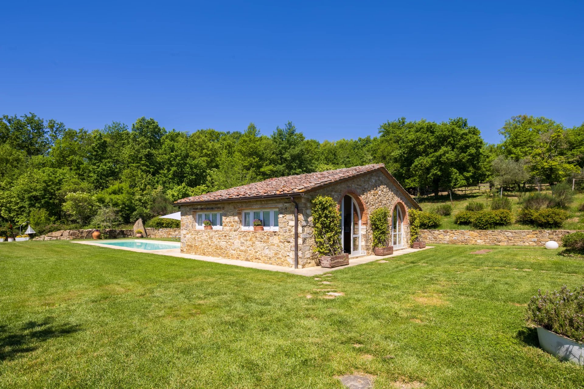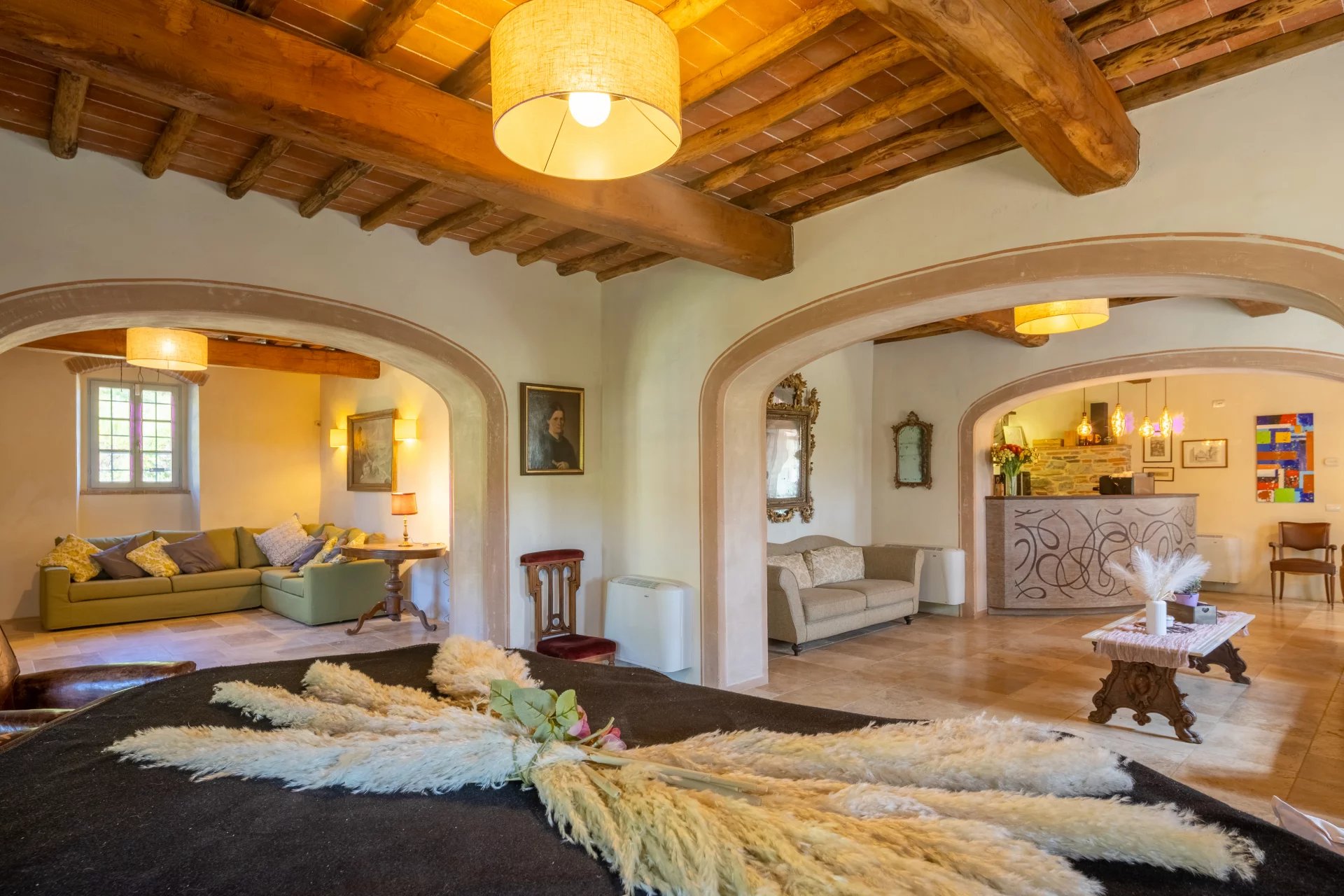 La propriété jouit d'une vue panoramique sur les collines environnantes et offre de grands espaces pour vivre en contact avec la nature. Bien qu'elle soit située dans un contexte réservé et paisible, elle est facilement accessible depuis les principales voies de communication et proche des villes.