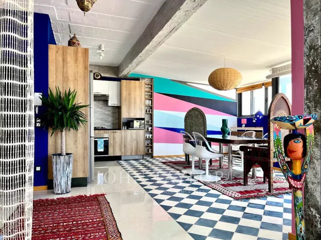 L'espace a été repensé et aménagé par un artiste de stature internationale dans un esprit moderniste et coloré.