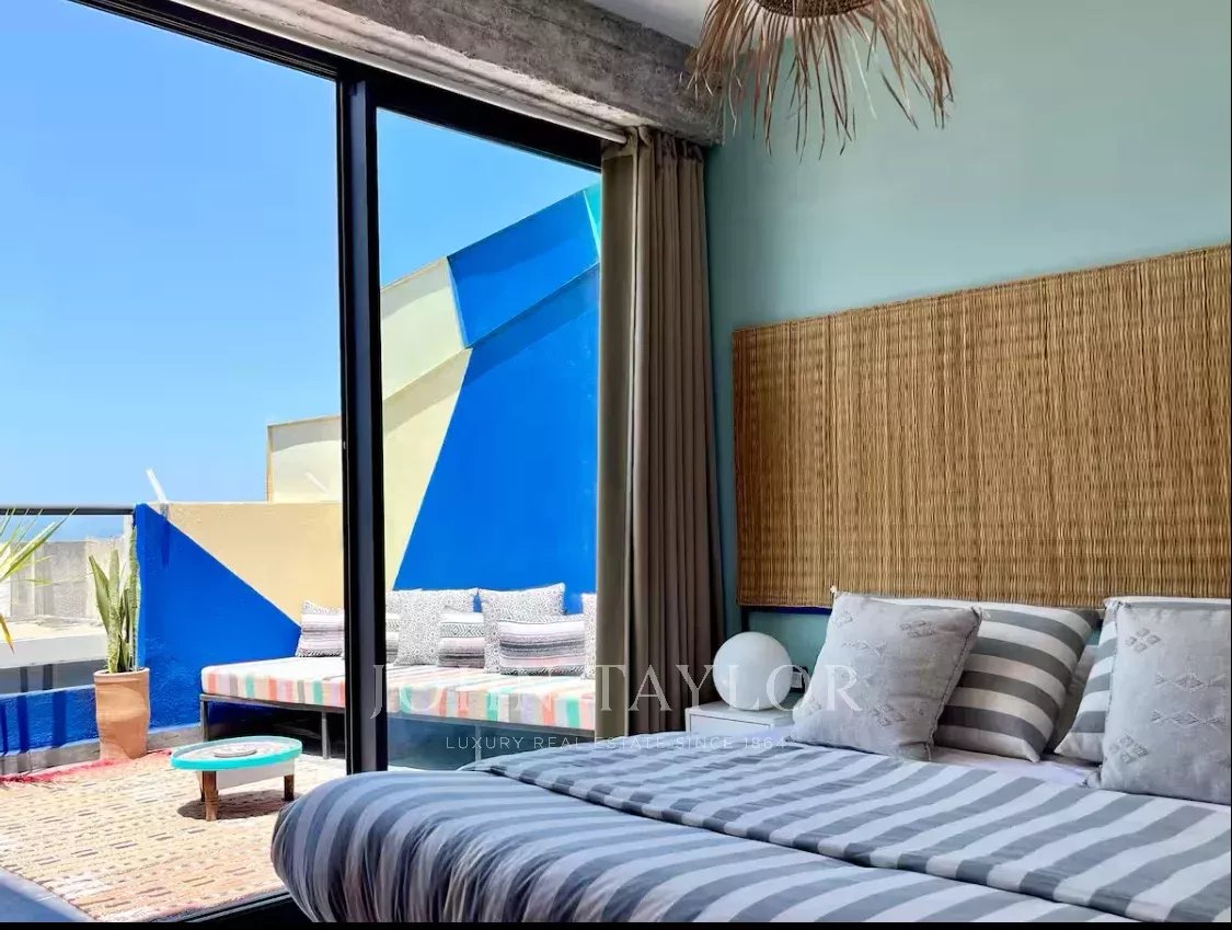 Ce bien est idéalement situé en premier rang sur la baie d'Essaouira, à seulement 10 minutes à pied de sa Medina classée au patrimoine de l'UNESCO.