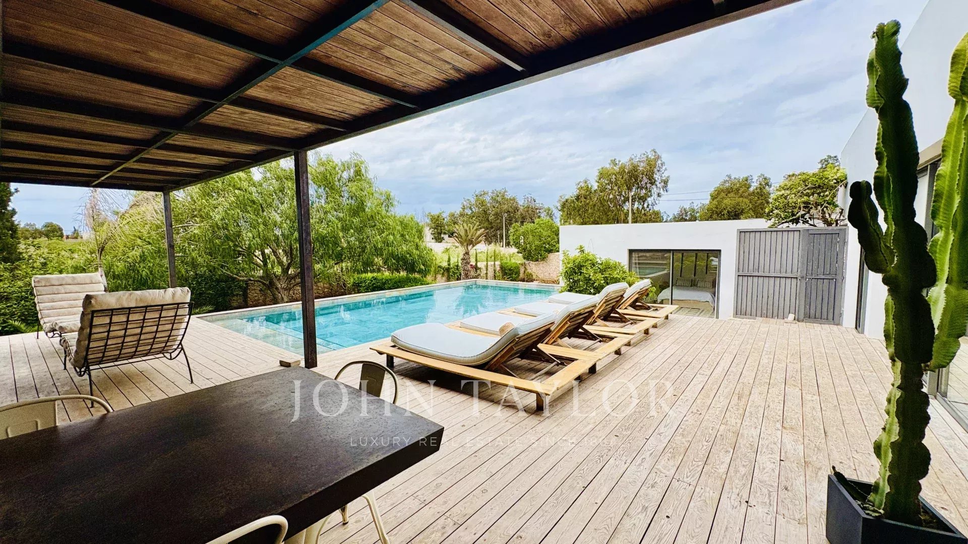 D'une surface habitable de 230m2, elle comprend: de beaux espaces de vie ouvrant sur la piscine, une cuisine équipée ainsi que 4 chambres et 3 salles de bain.