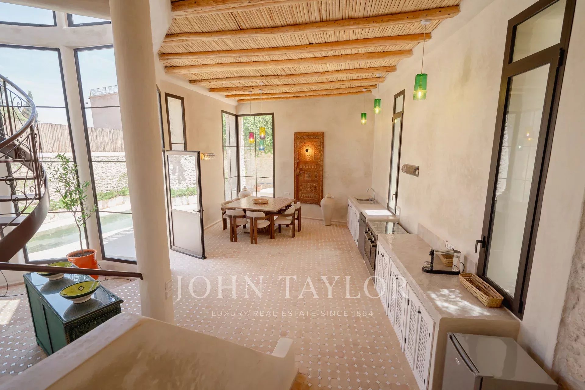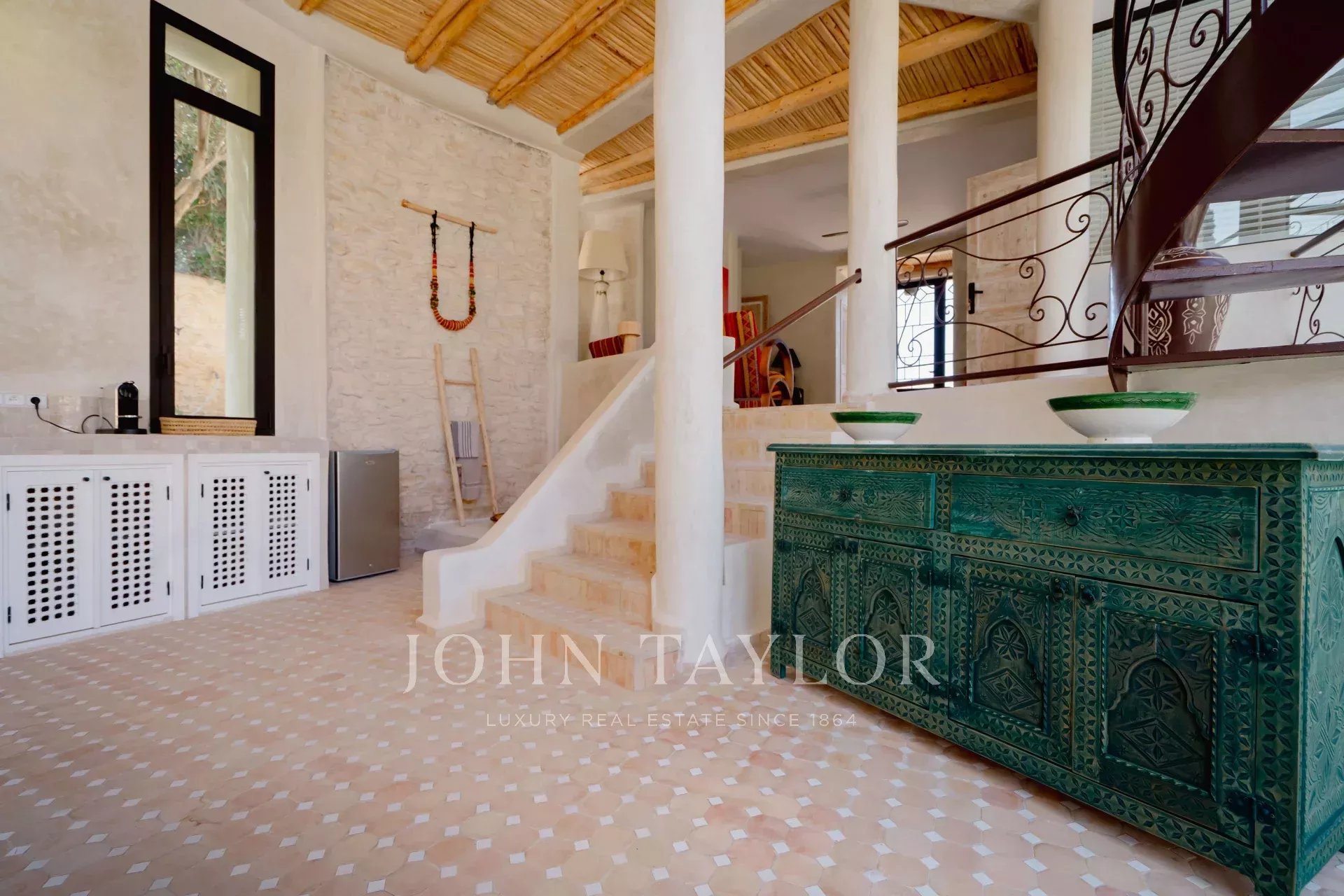 Située dans un environnement résidentiel recherché à Ghazoua, à seulement 15 minutes du centre d’Essaouira et de l’aéroport, cette élégante villa de 4 chambres allie confort moderne, espace et détente. Implantée sur un terrain de 452 m², elle se trouve en zone urbaine ce qui constitue un atout majeur pour les acquéreurs étrangers: la VNA n'est pas requise.