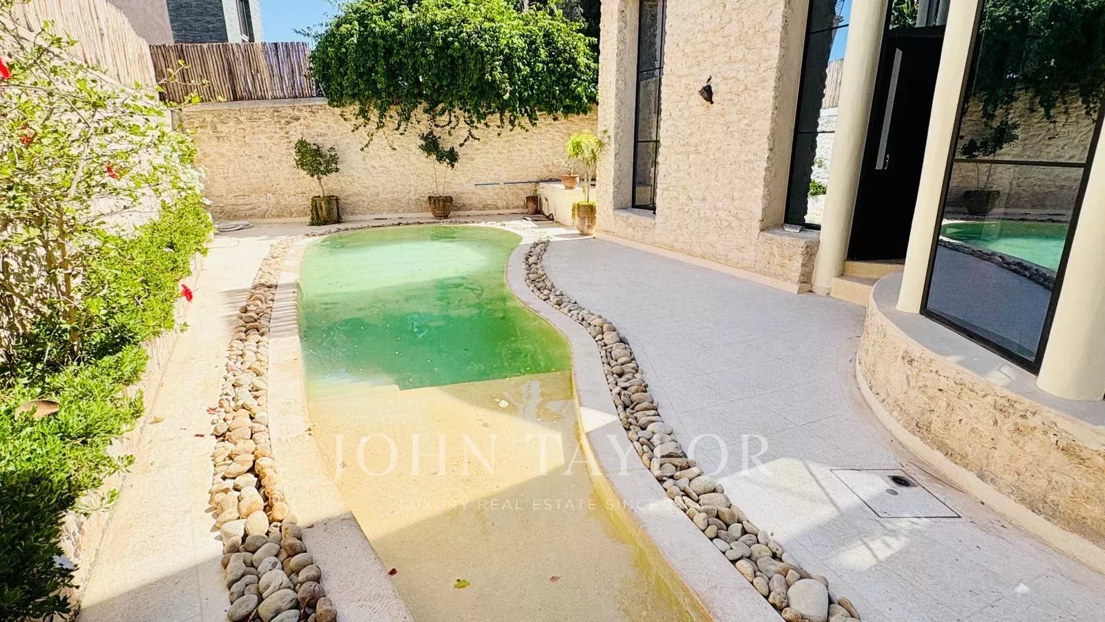 Le jardin paysagé accueille une piscine privée et son pool-house, offrant un cadre de vie harmonieux, entre intérieur raffiné et extérieur convivial.