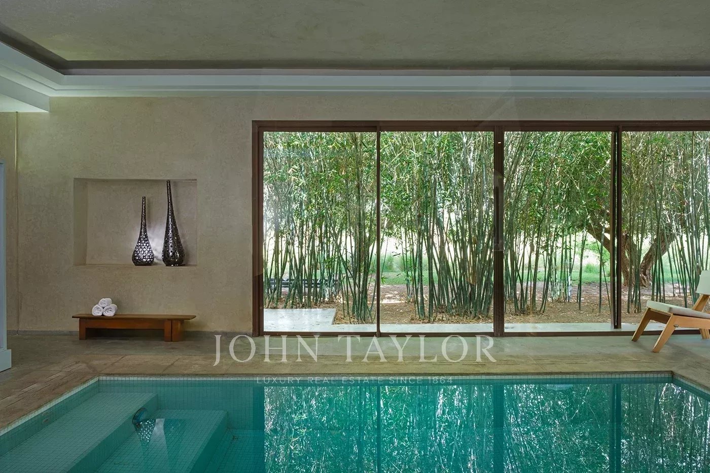 La villa est aussi équipée d’un sauna, d’un hammam, d’une piscine intérieure chauffée, d’un ascenseur et d’un système de chauffage au sol.