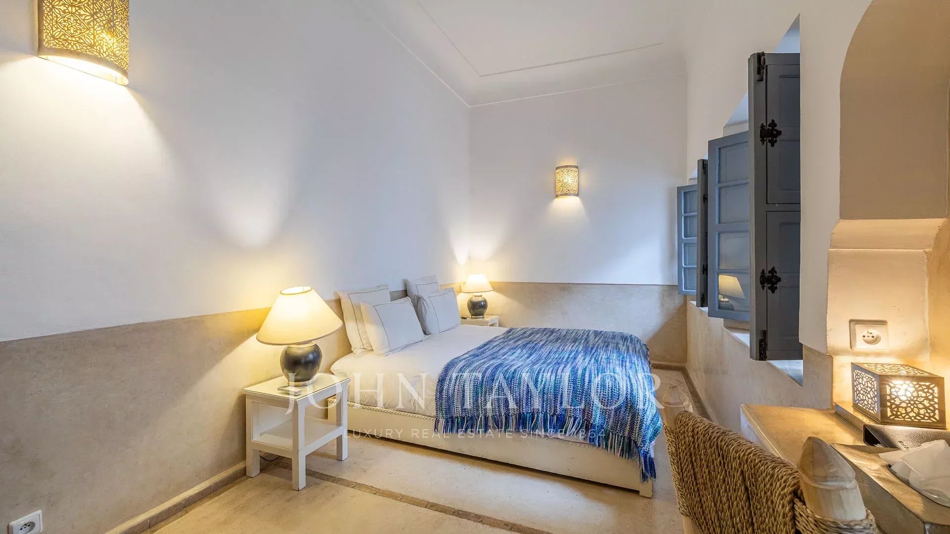 D'une surface au sol de 200m2 articulée autour de 2 patios, le Riad dispose également d'une cuisine équipée et d'une chambre pour le personnel.