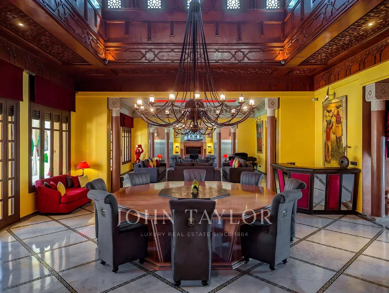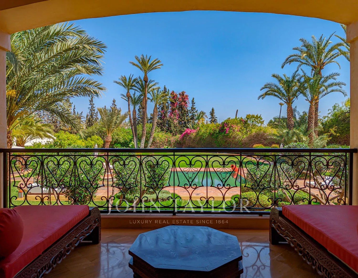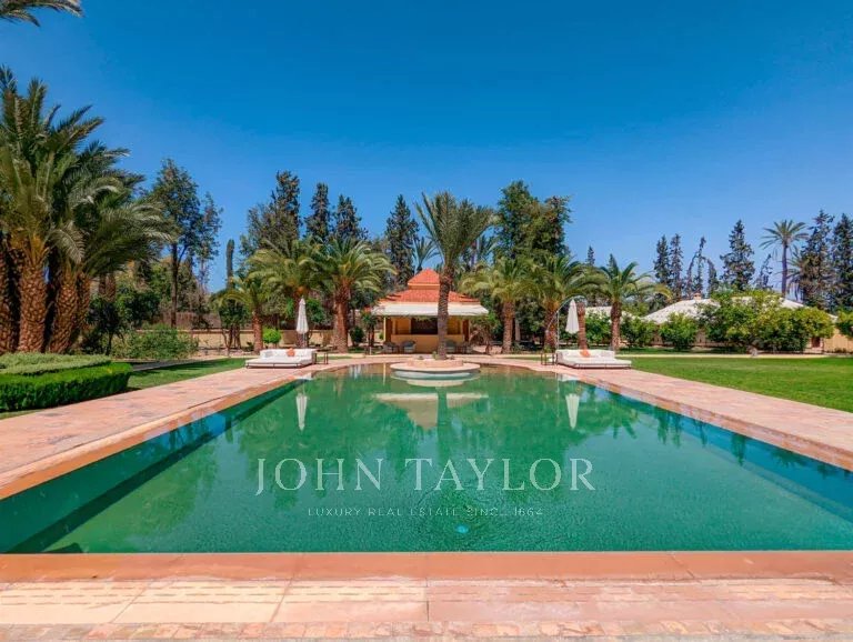 Ce bien est situé dans la partie la plus prestigieuse de la Palmeraie de Marrakech, à moins de 15 minutes du centre de la Ville Ocre.