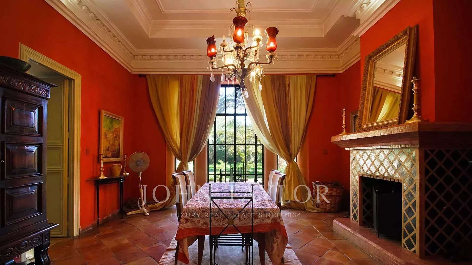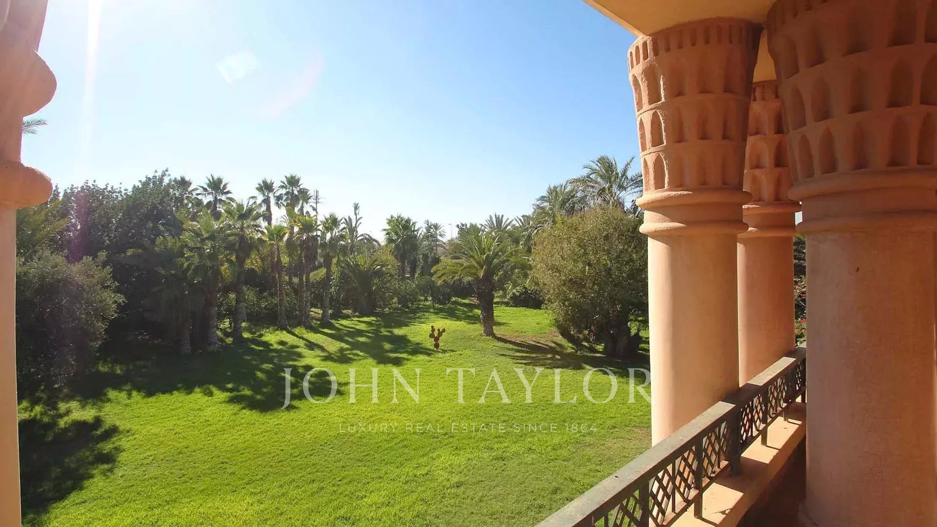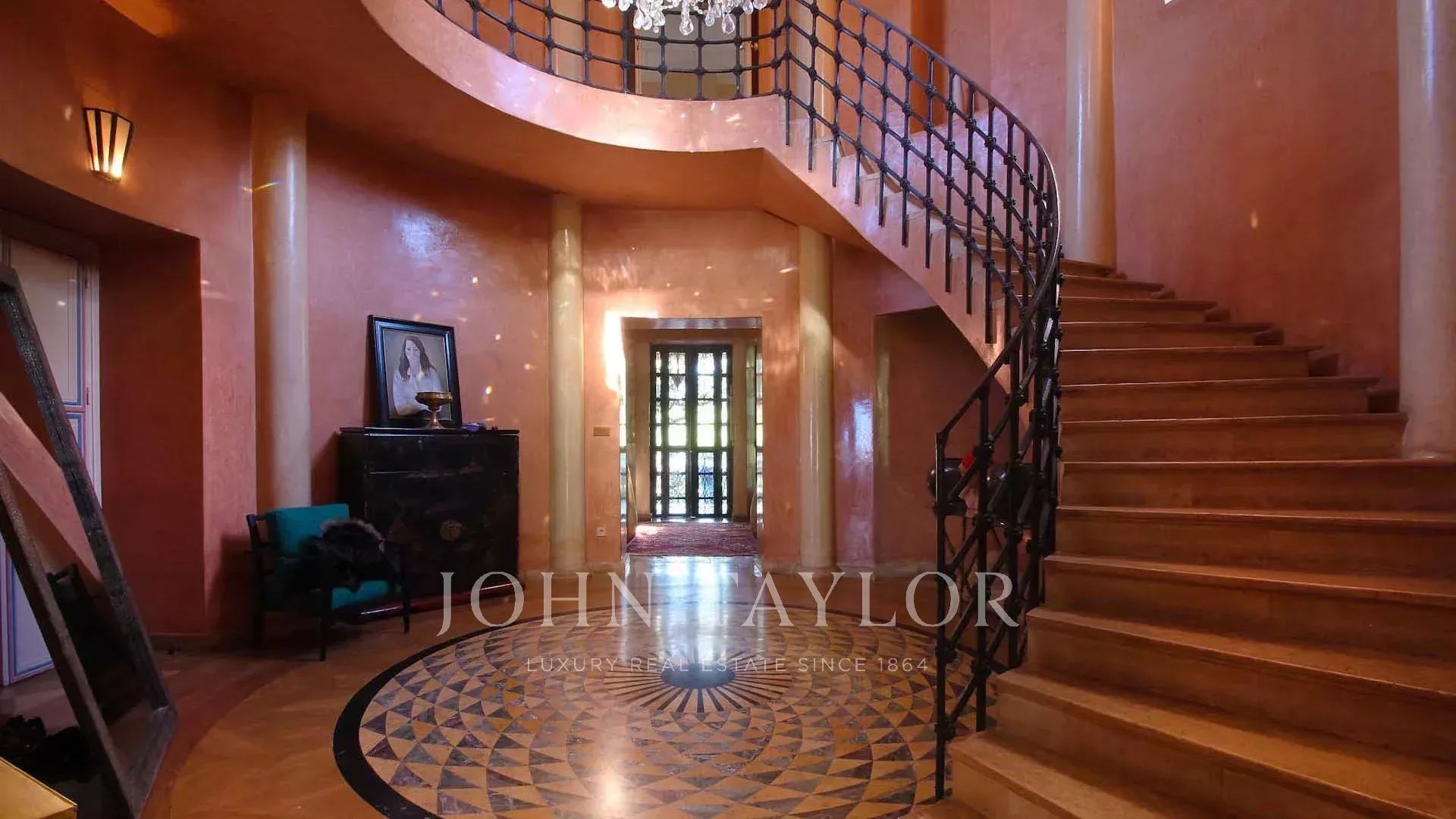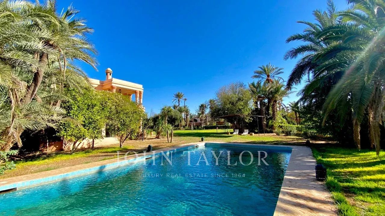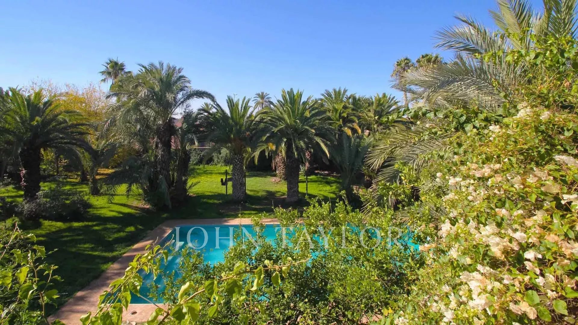 Conçue par le fameux Bill Willis, cette propriété est idéalement située à l'entrée de la très exclusive Palmeraie, à moins de 10 minutes du centre de la Ville Ocre.