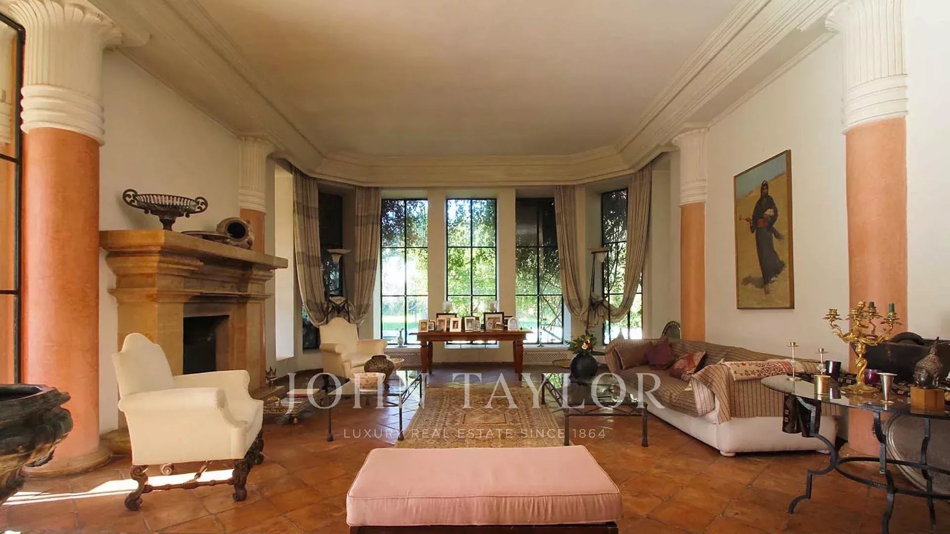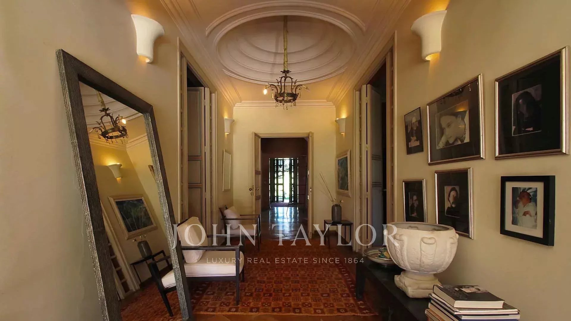 D'une surface habitable de 980m2, elle comprend sur 2 niveaux: une entrée, une montée d'escalier spectaculaire, une cuisine équipée, une immense réception avec cheminée ouvrant sur le parc et sur une très belle terrasse couverte, une salle à manger, un grand bureau, un salon tv/bibliothèque, ainsi que 4 chambres dont une très grande Master Suite avec terrasse privée.