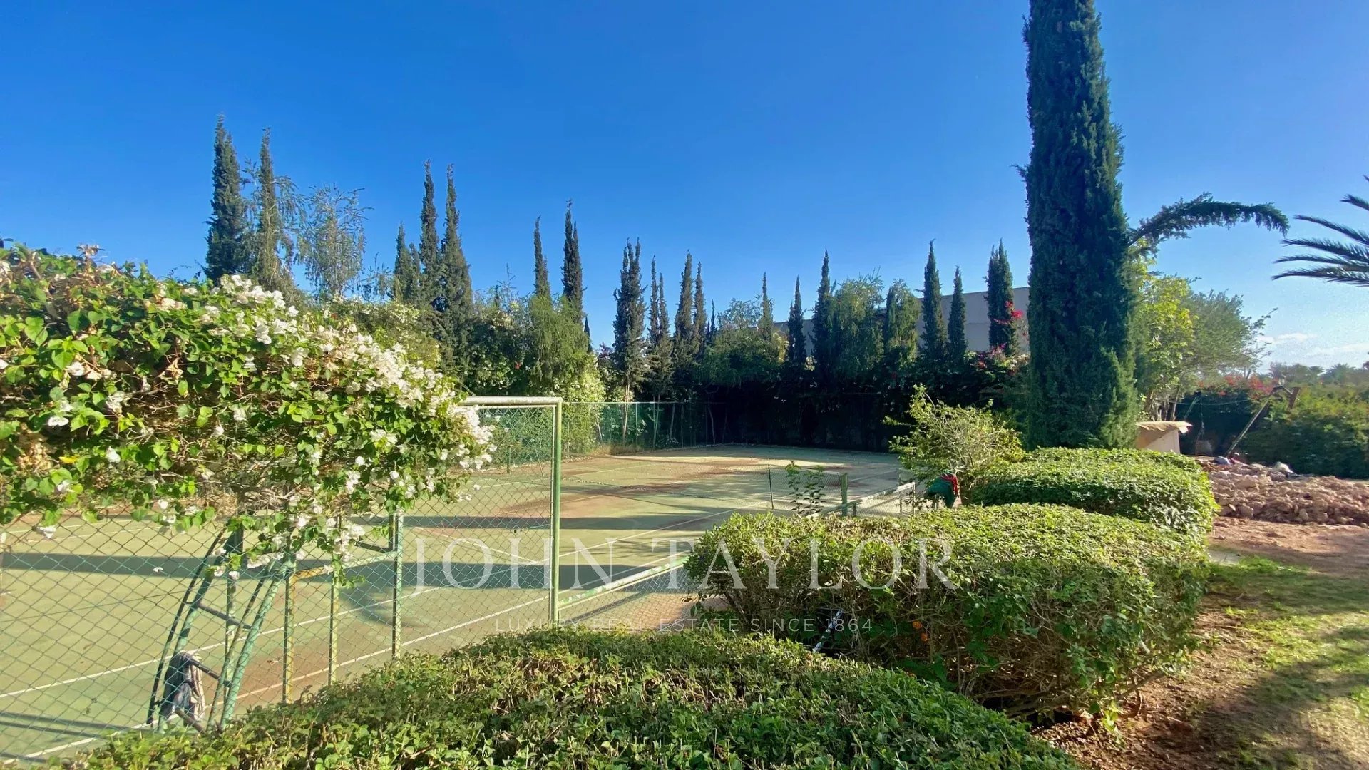 Nichée dans un parc paysagé de 6 500m2 auquel s'ajoute la jouissance d'un terrain adjacent de 4 000m2 directement sur le parcours de golf, la propriété propose une piscine de 29 mètres et un court de tennis.