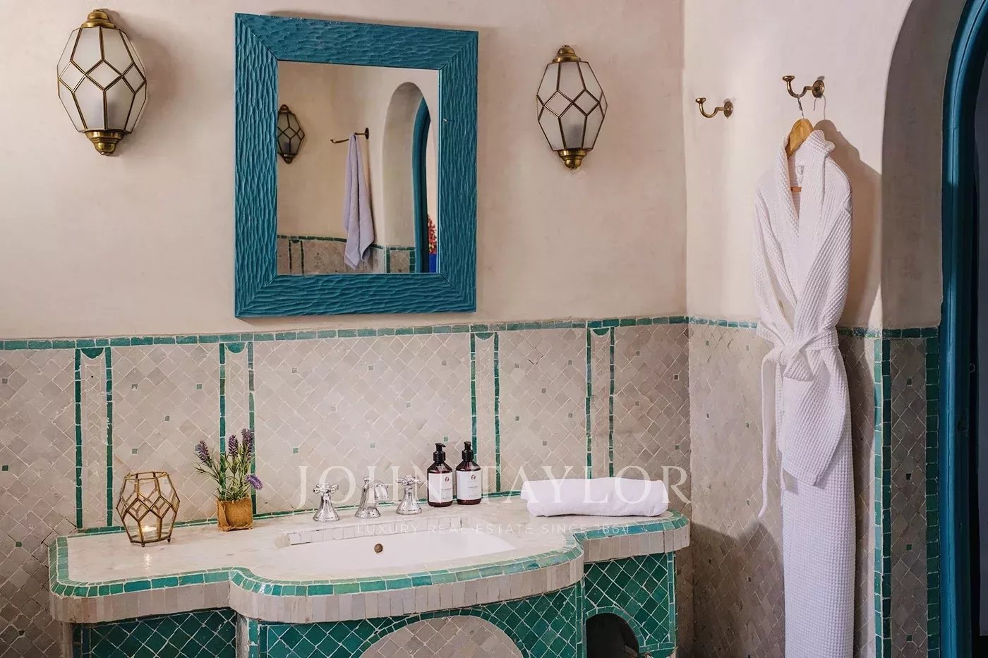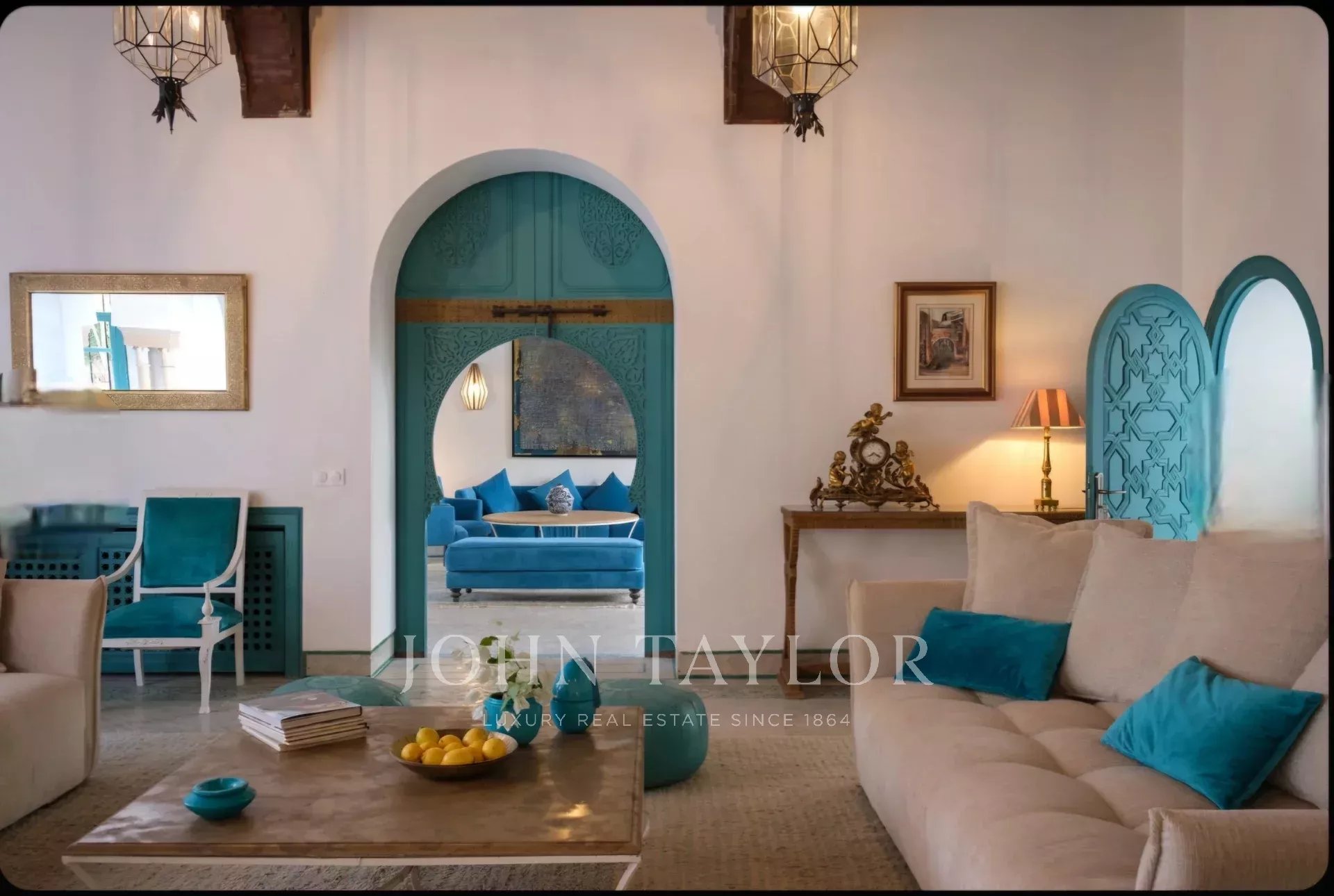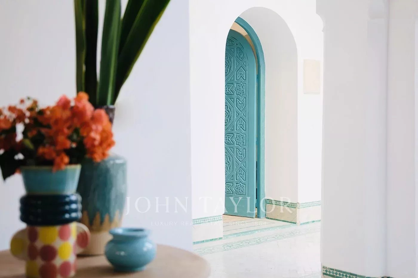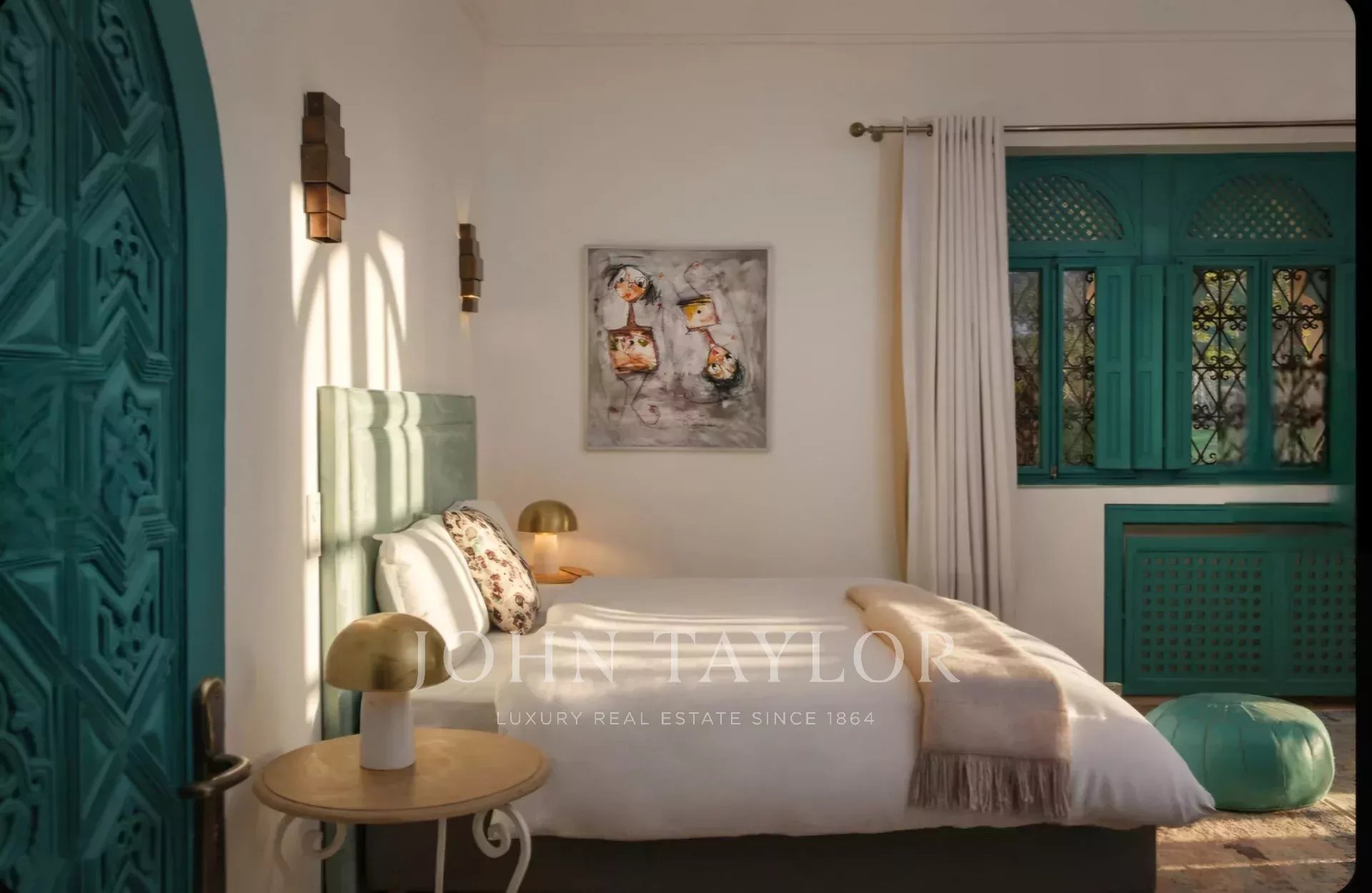 Cette propriété exclusive aux accents mauresques édifiée dans les années 70 est idéalement située à moins de 15 mn du centre de la Ville Ocre.