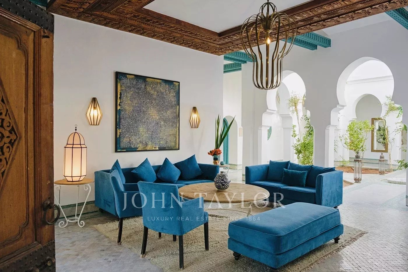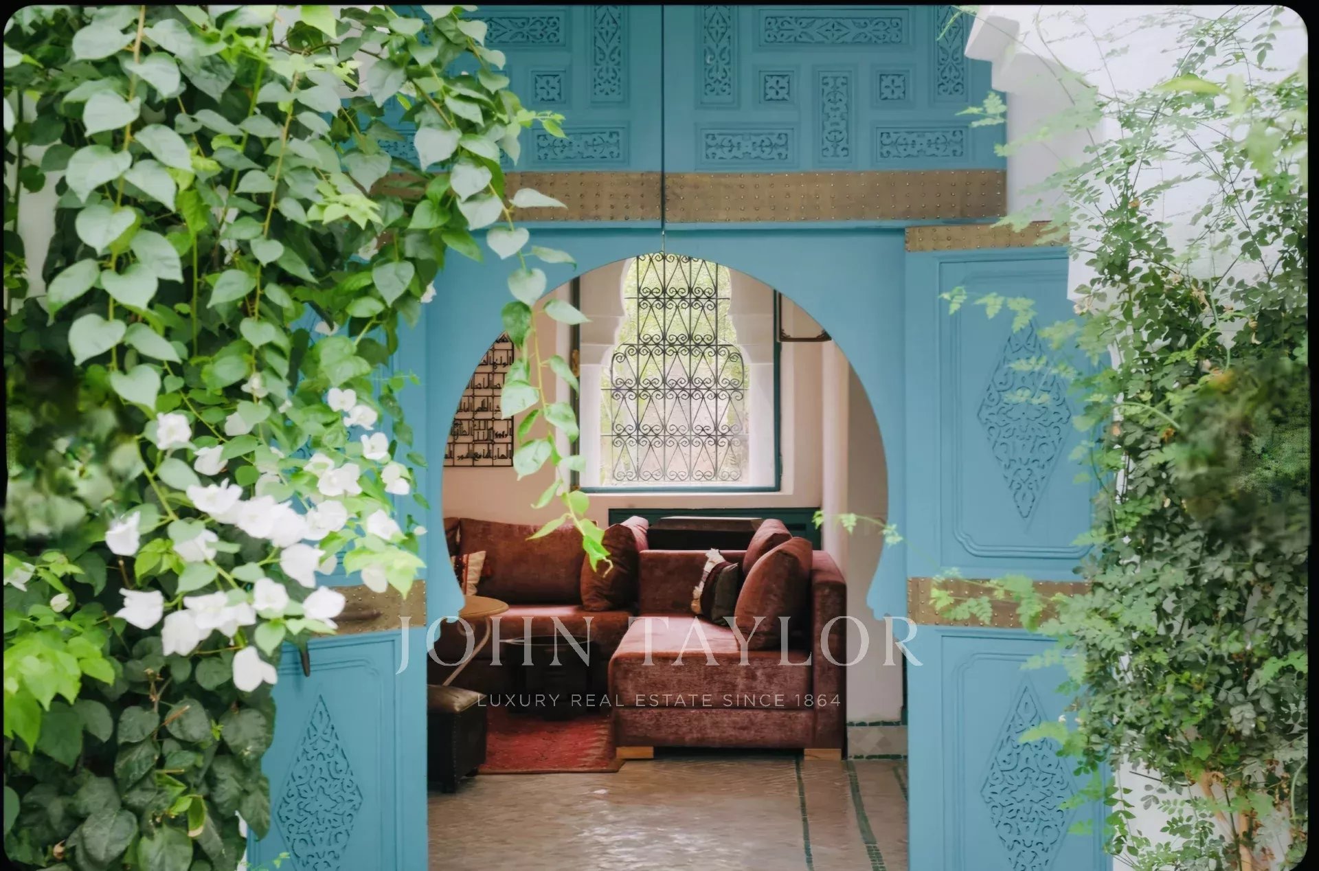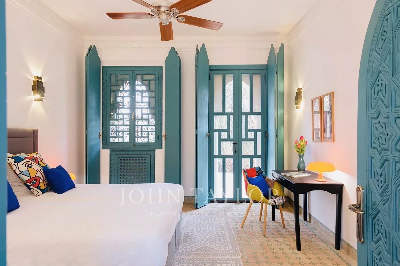 Cette propriété exclusive aux accents mauresques édifiée dans les années 70 est idéalement située à moins de 15 mn du centre de la Ville Ocre.