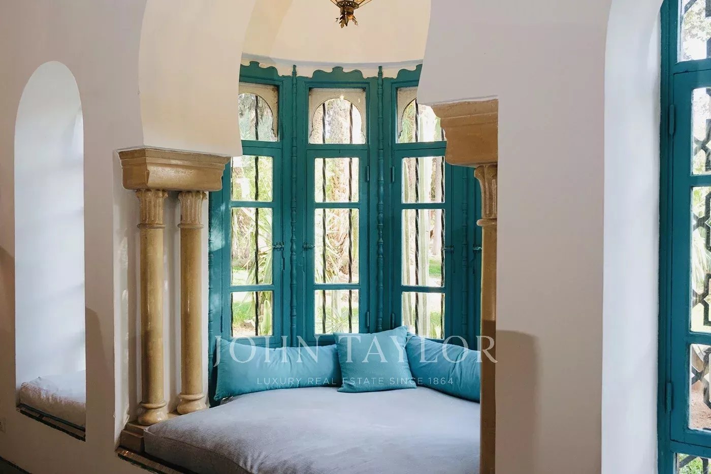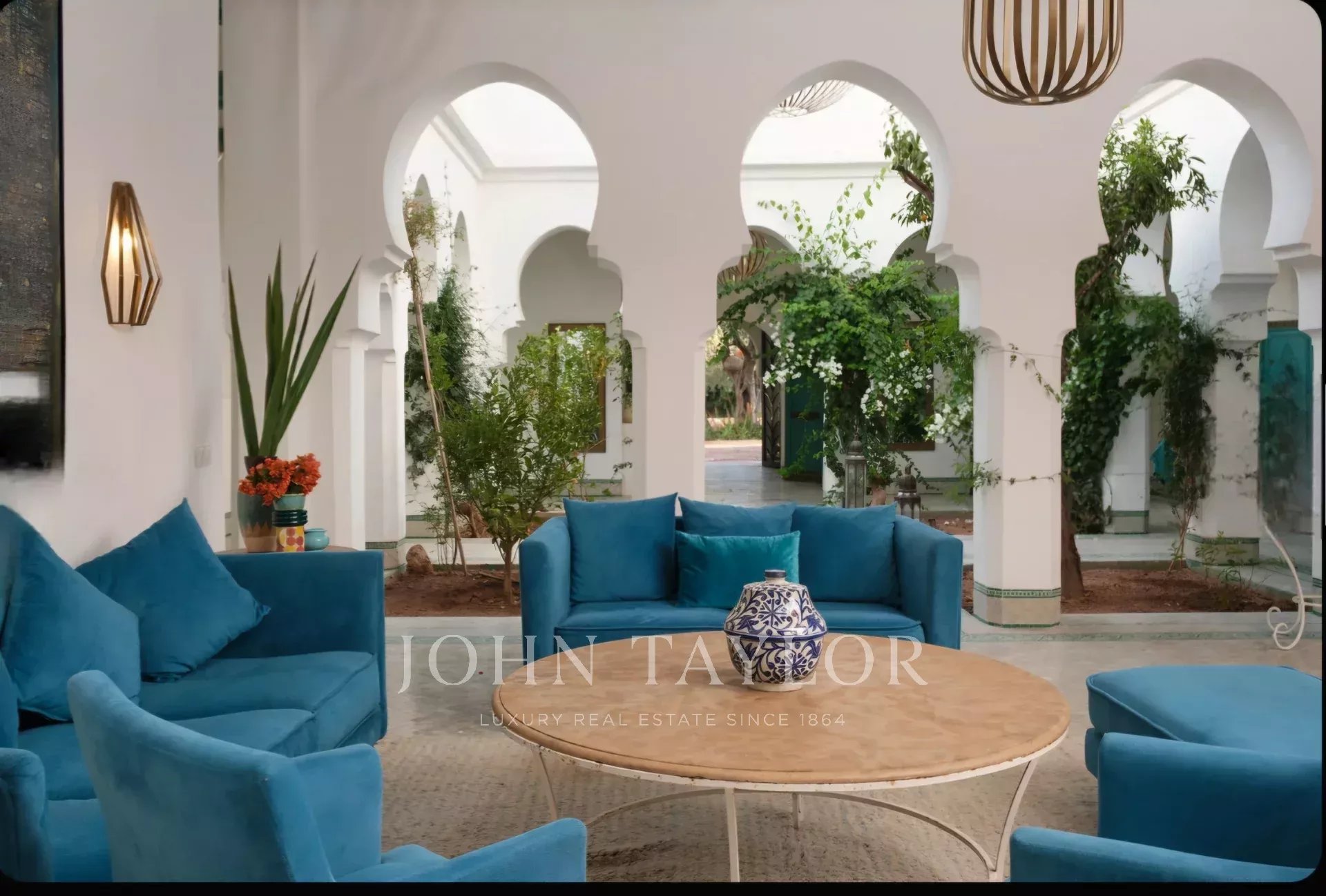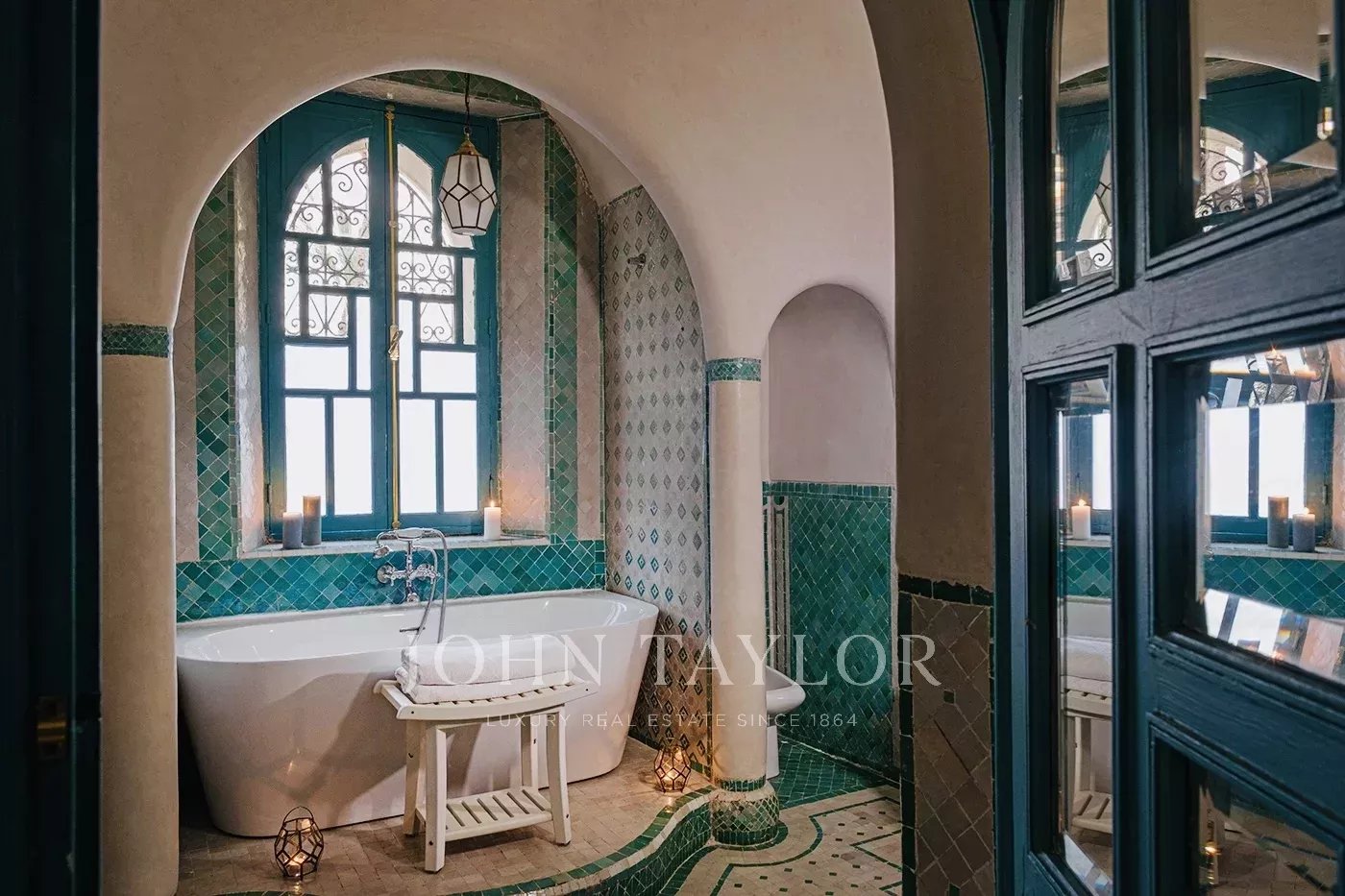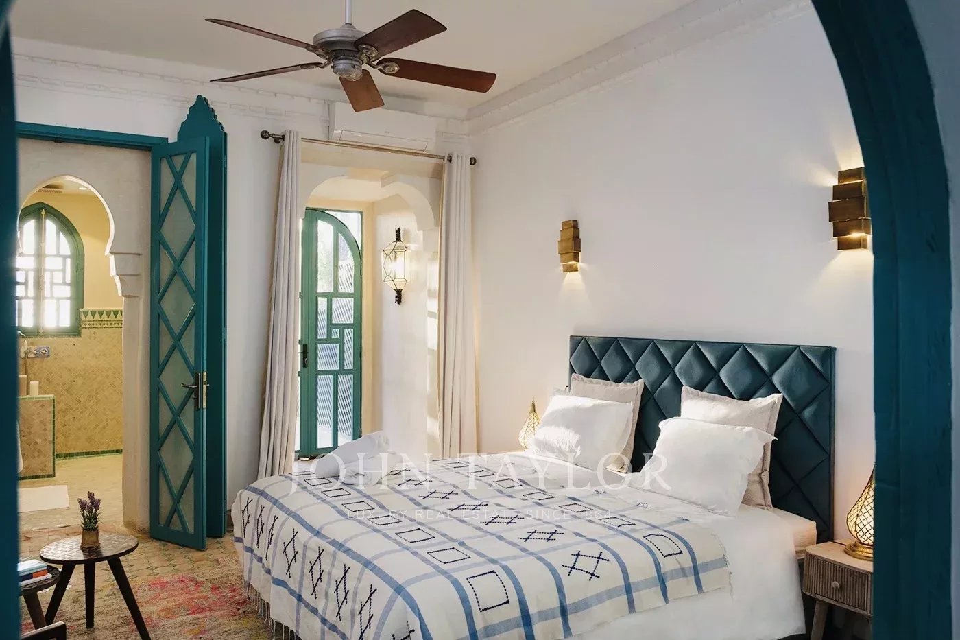 Cette propriété exclusive aux accents mauresques édifiée dans les années 70 est idéalement située à moins de 15 mn du centre de la Ville Ocre.