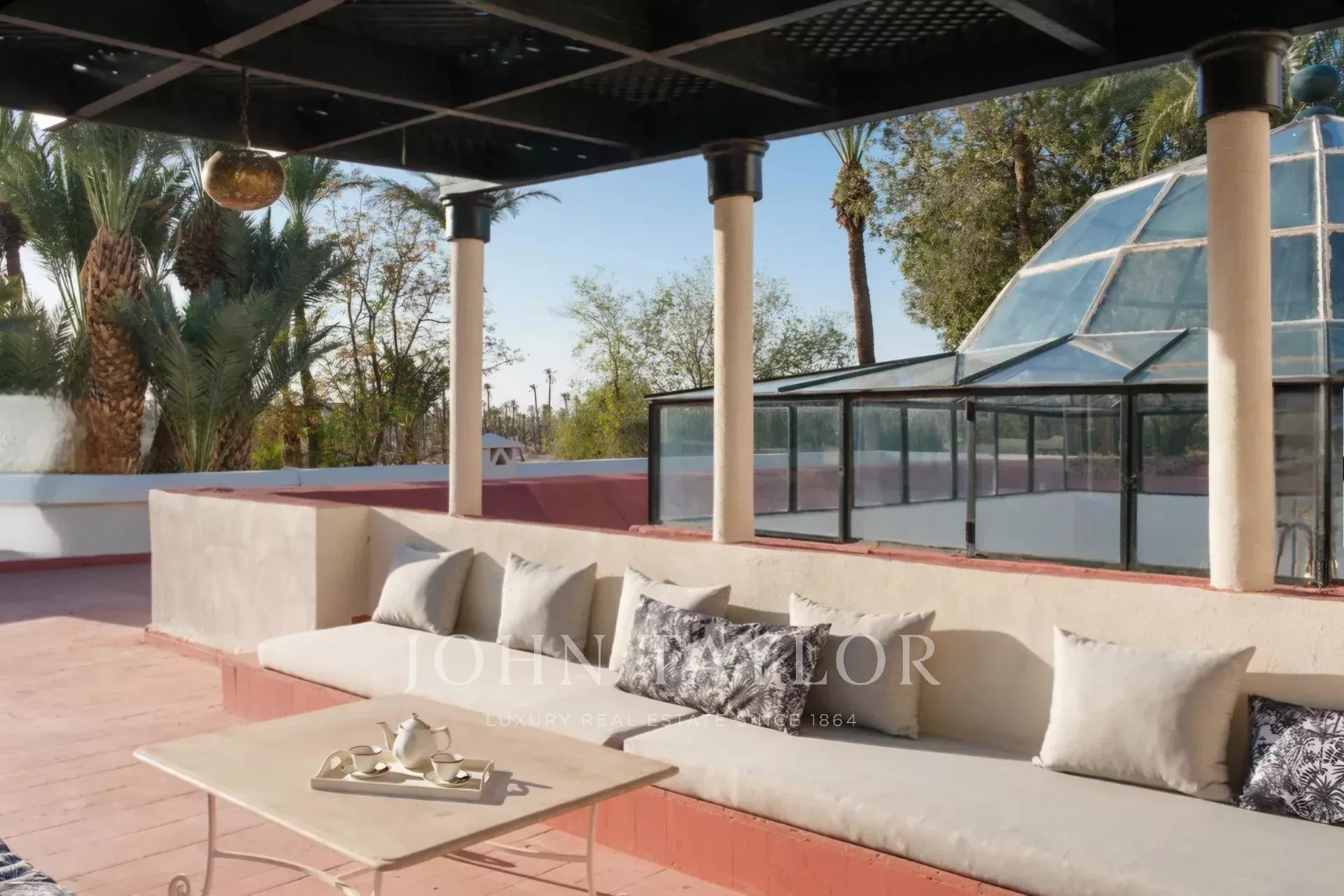 Elle a été l'une des premières bâties en Palmeraie et a connu des heures glamour à l'époque d'Yves Saint Laurent.