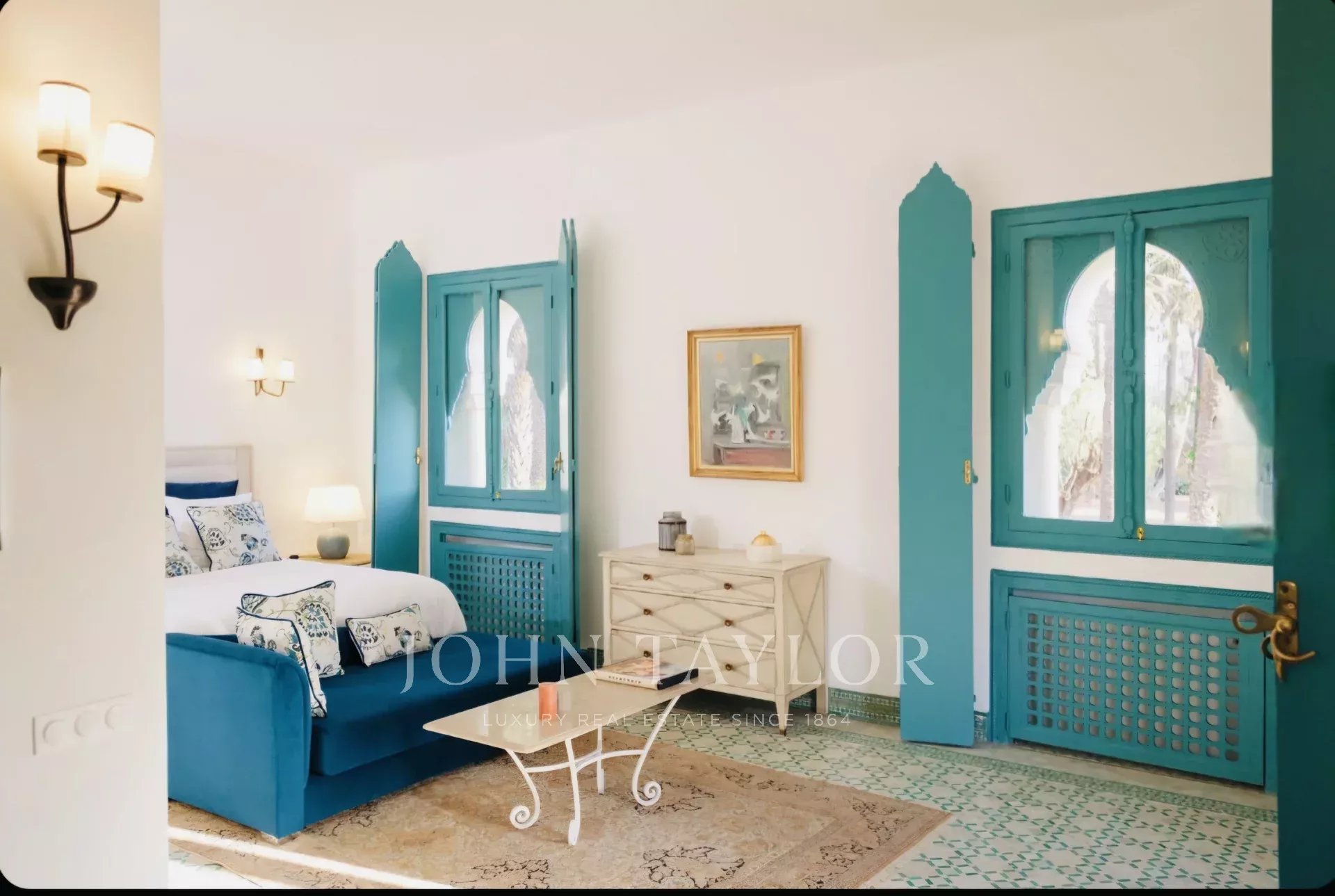 La propriété comprend une Villa principale de 650 m2 habitables articulés autour d'un patio central dans l'esprit d'un Riad traditionnel.