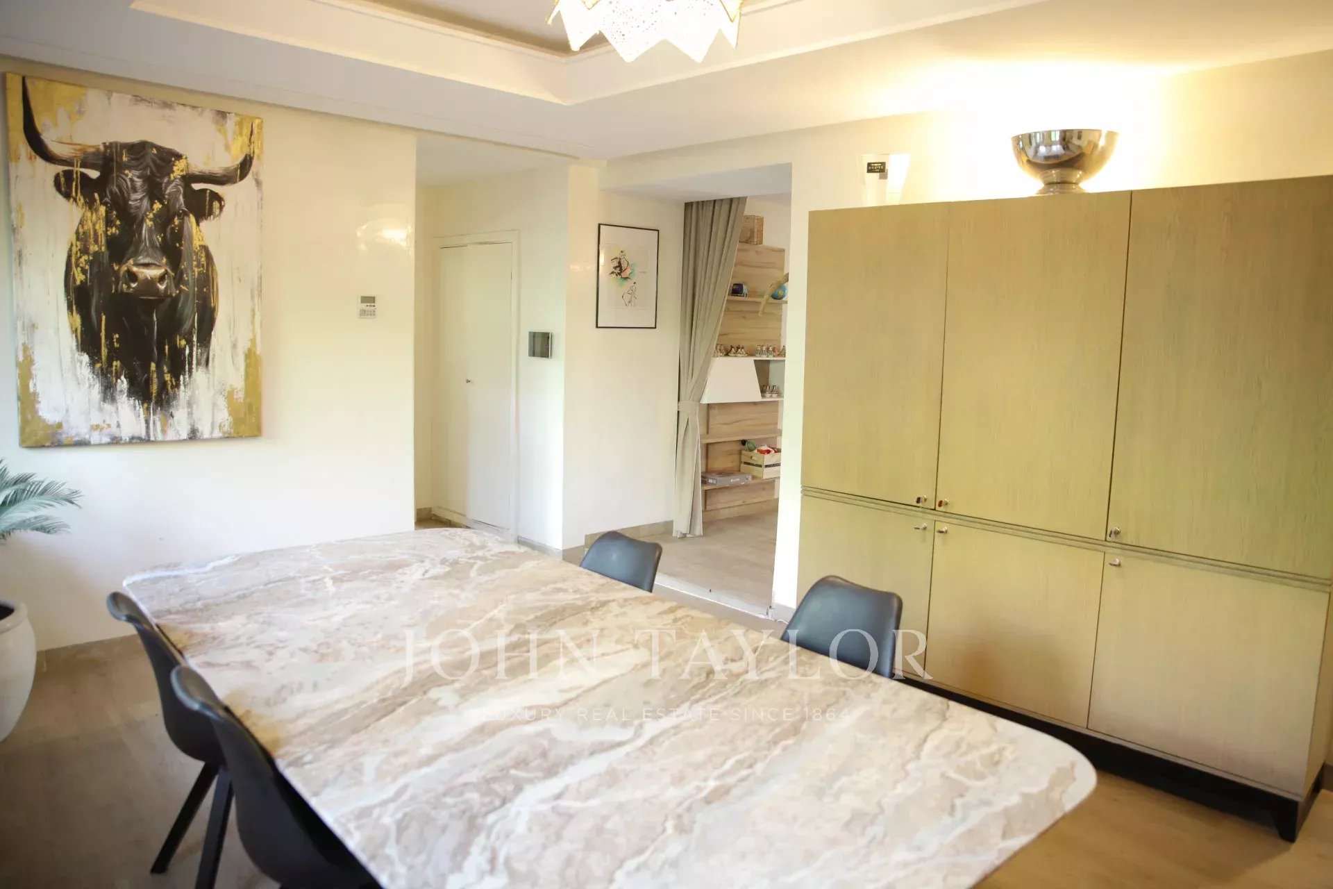La villa s'ouvre sur d'élégants espaces de vie : trois salons - dont un avec une cheminée confortable - et une salle à manger séparée et ouverte, créant le cadre idéal pour recevoir ou se sentir à l'aise au quotidien. La cuisine entièrement équipée facilitera la tâche de tout chef cuisinier.