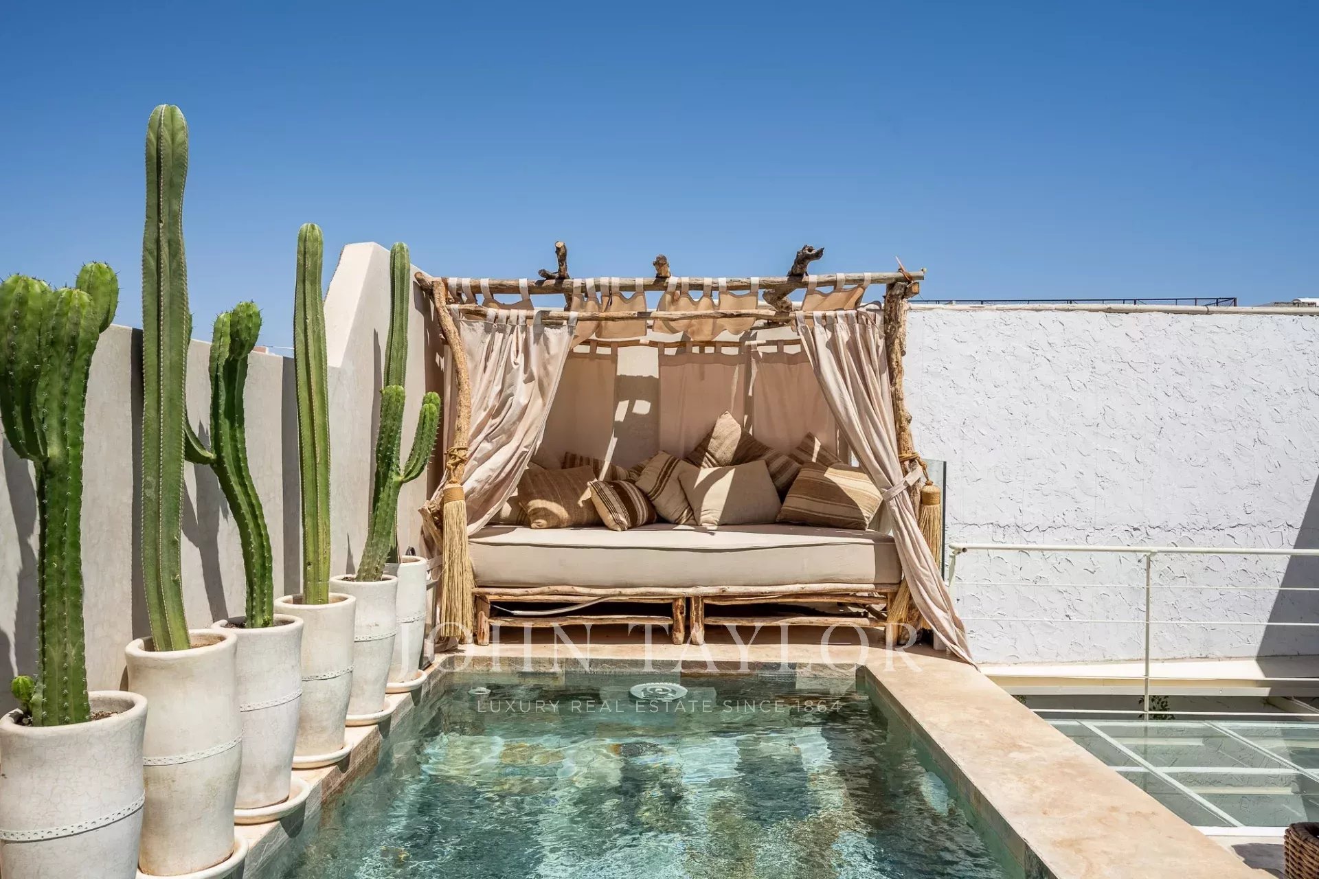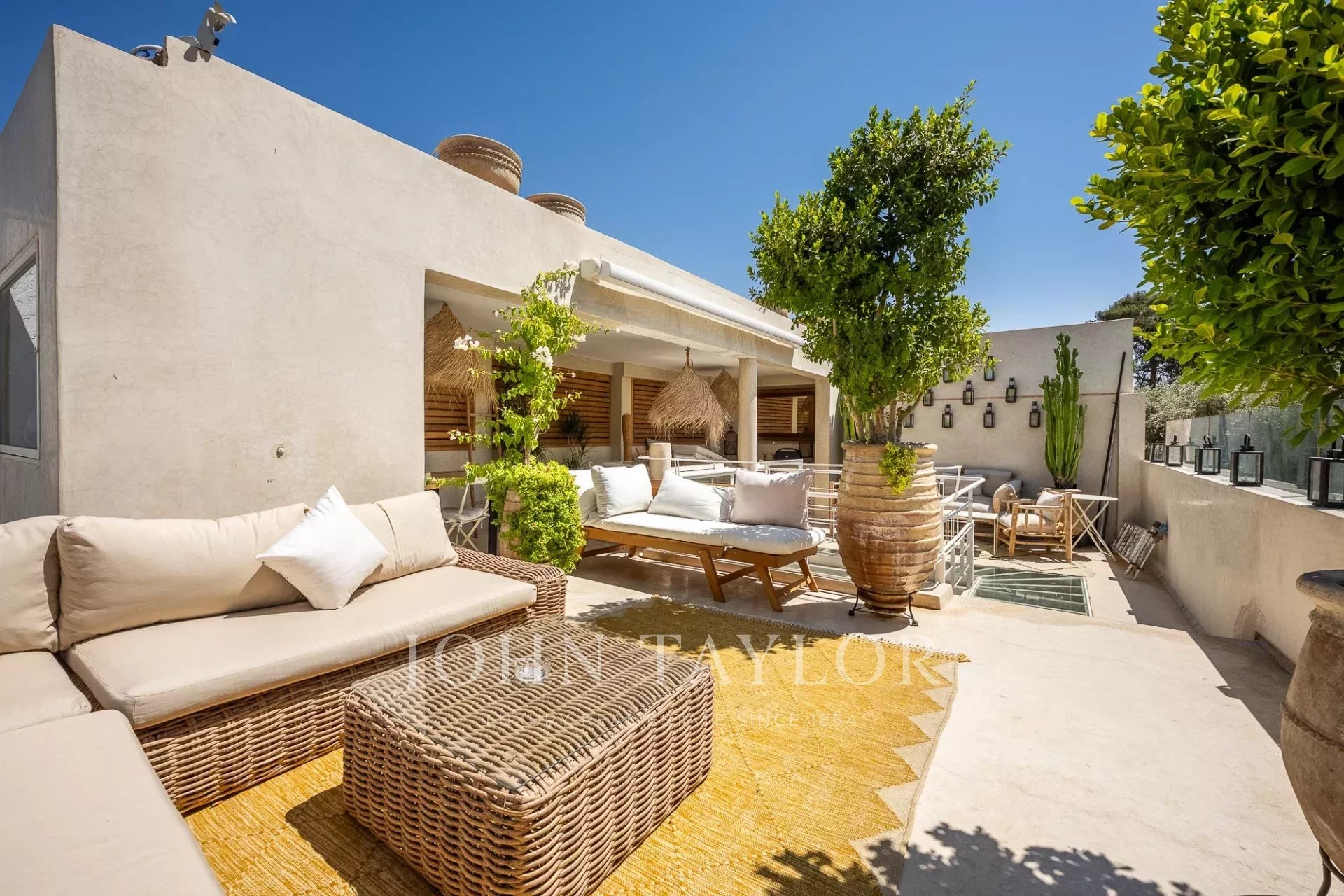 La terrasse est un absolu délice: elle offre une vue tout simplement exceptionnelle sur les jardins légendaires de La Mamounia et héberge un bassin chauffé, un solarium ainsi qu'un espace repas abrité avec bar.