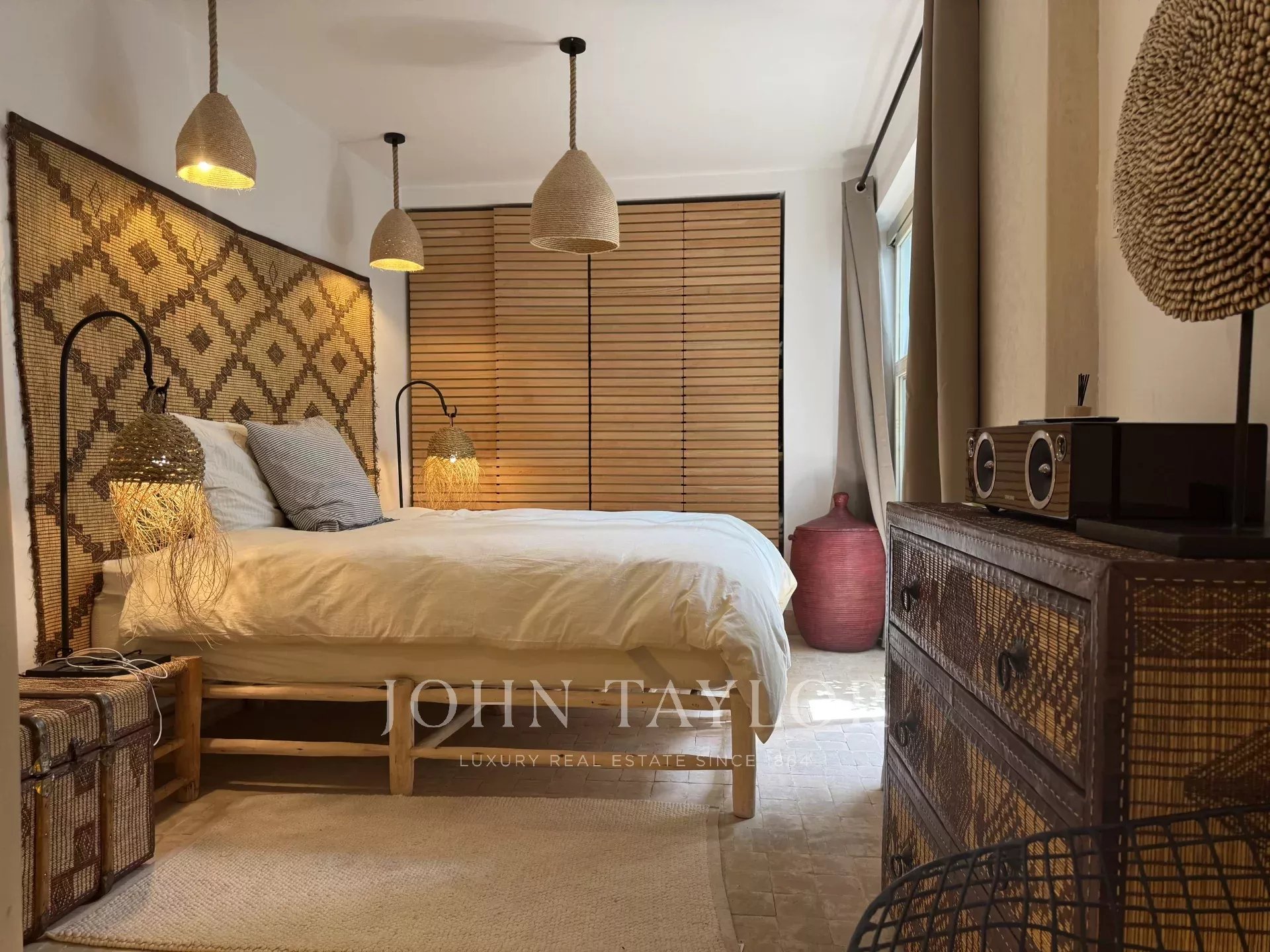 Au rez-de-chaussée, le Riad propose 4 chambres confortables avec salles de bain autour d'un lumineux patio central. Le premier étage a été traité dans l'esprit d'un loft, incluant des espaces de vie ouverts et une cuisine équipée.