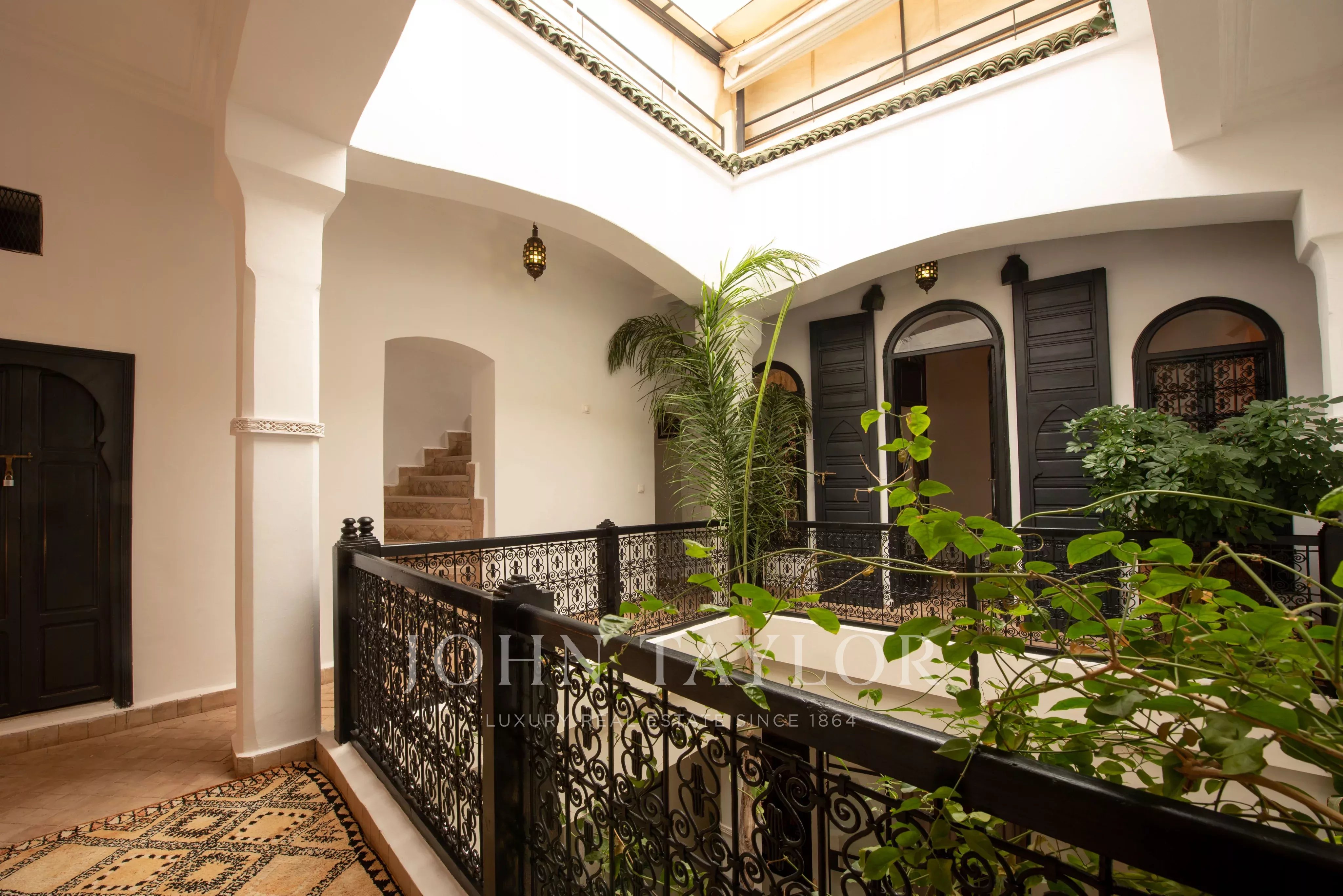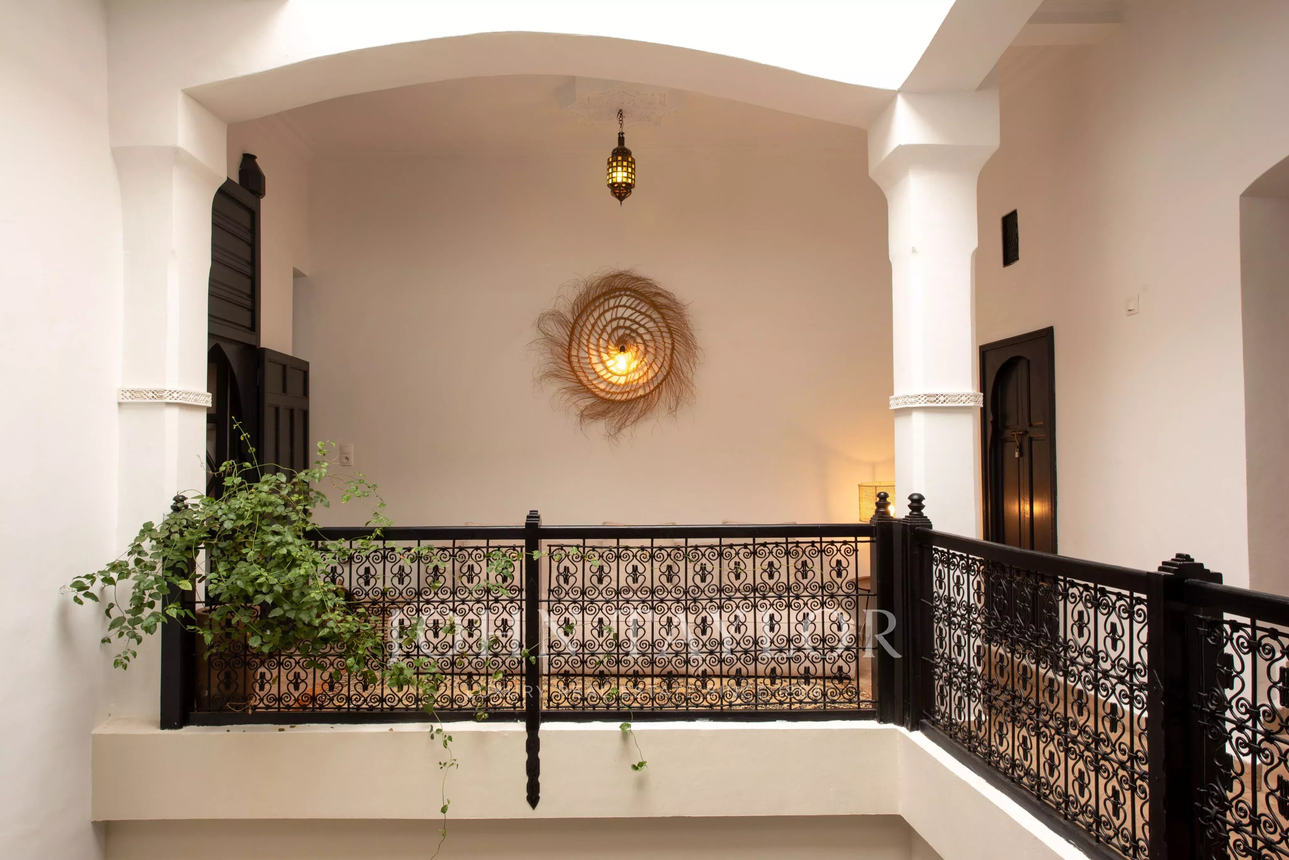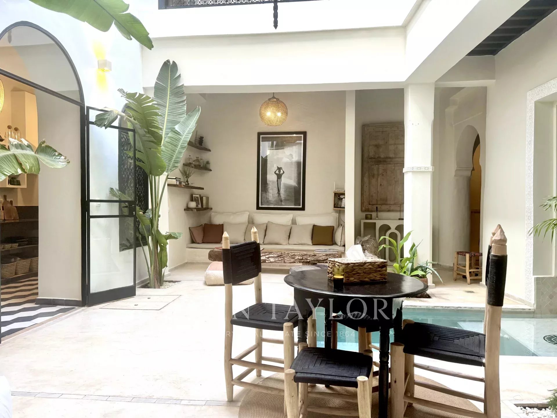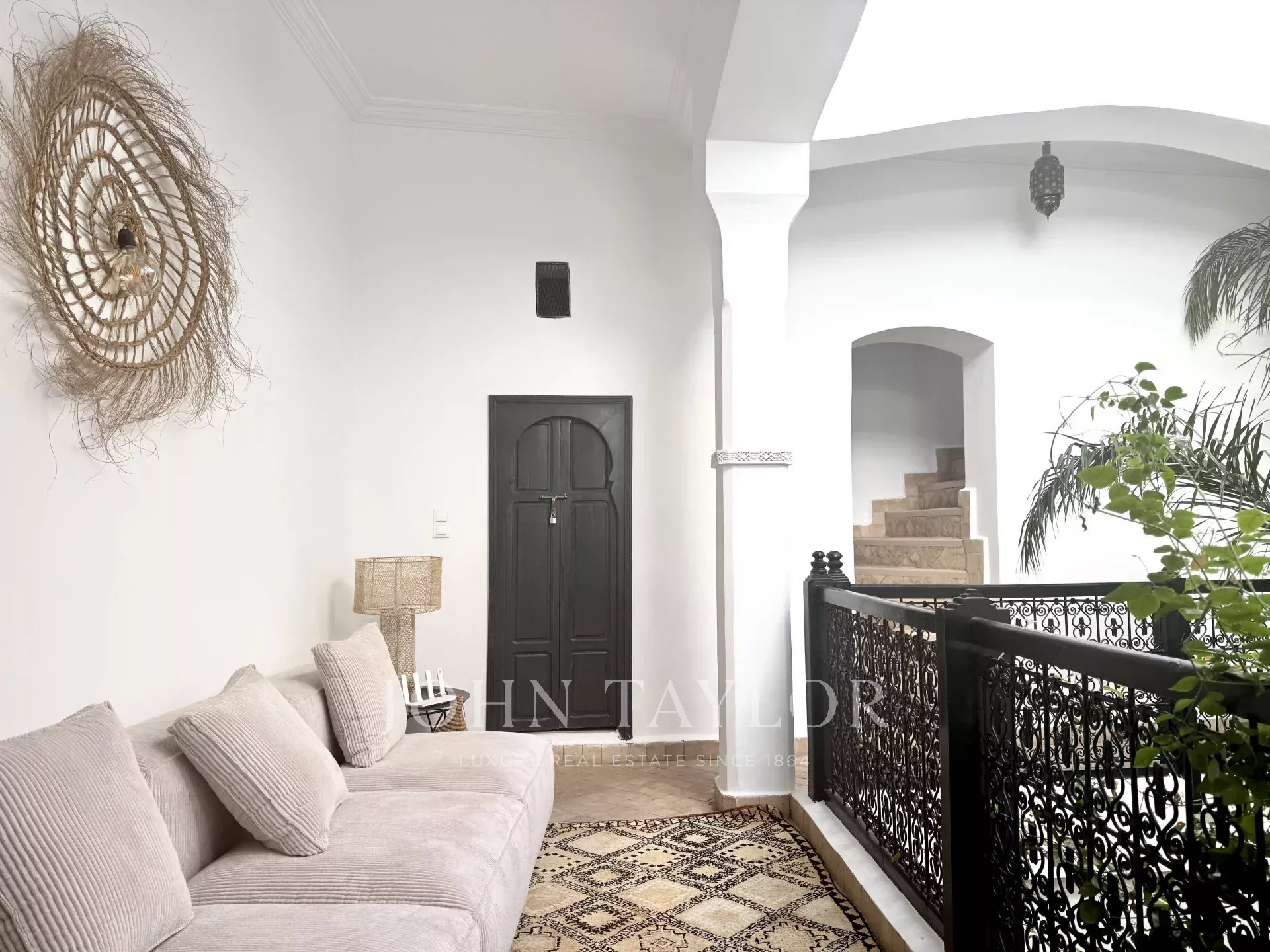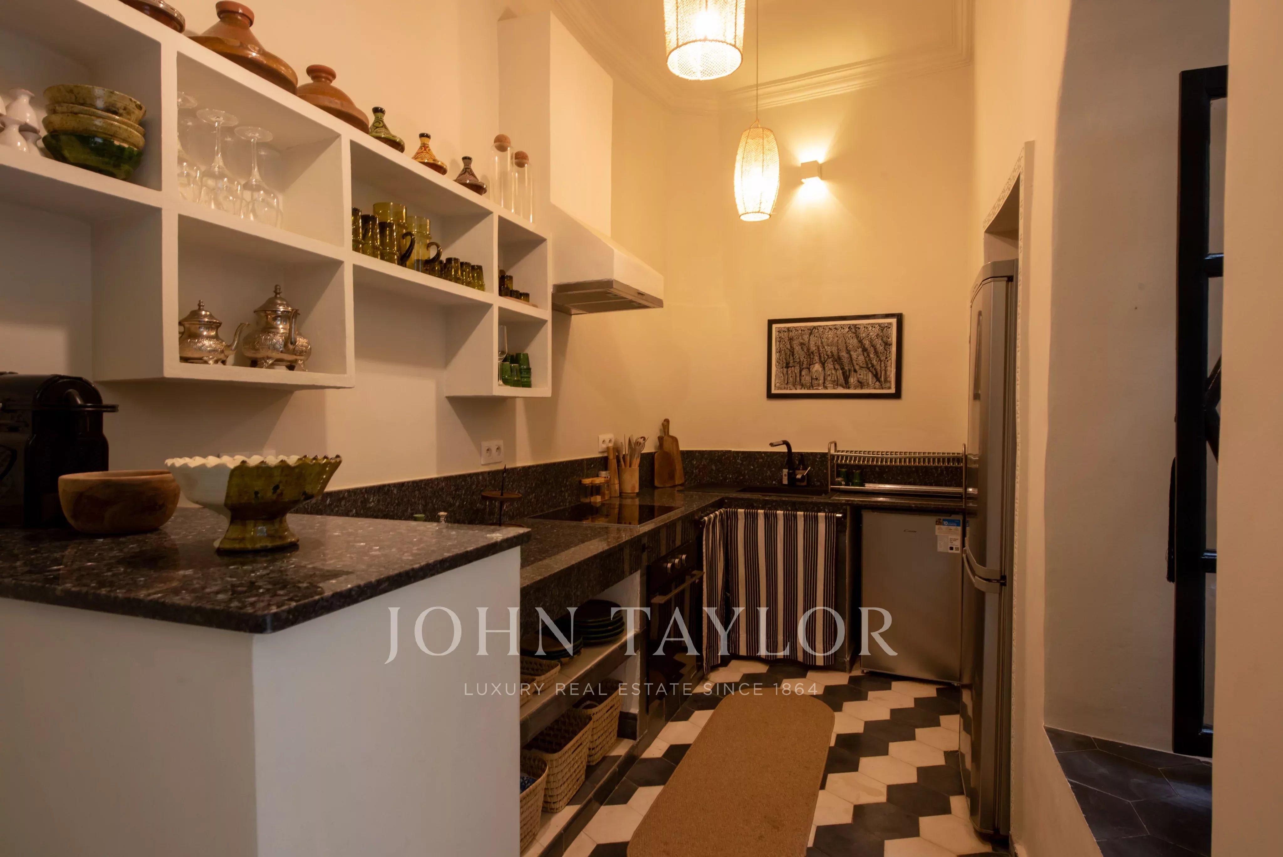 D'une surface au sol de 105m2, le Riad comprend autour d'un charmant patio avec bassin de rafraîchissement, salon d'été et toit électrique: une petite entrée, une belle pièce associant cuisine équipée et salle à manger, des toilettes invités ainsi qu'une vaste suite avec cheminée et salle de bain adjacente. Le premier étage accueille 2 vastes chambres avec salles de bain connectées par une jolie galerie ainsi qu'une buanderie.