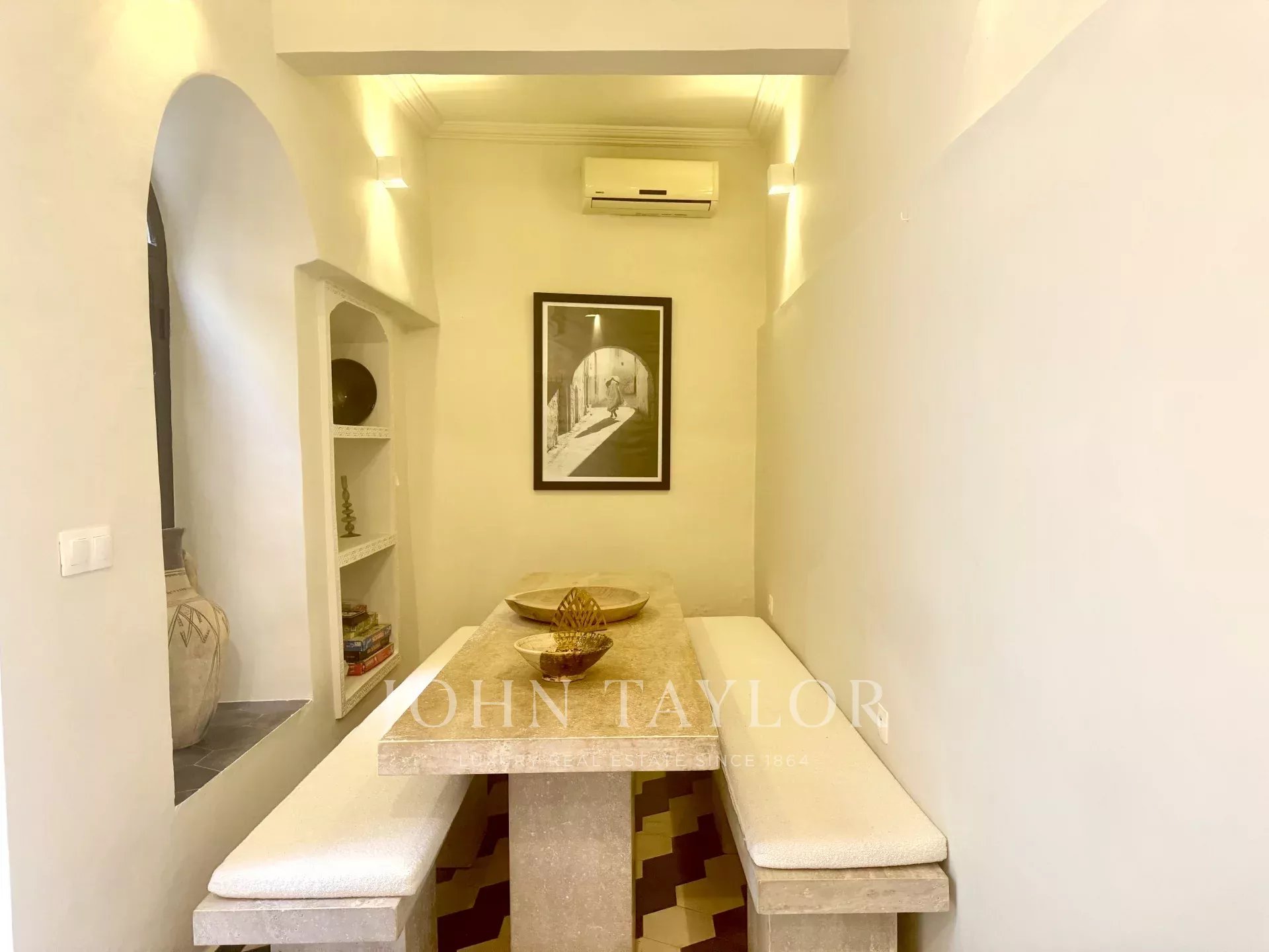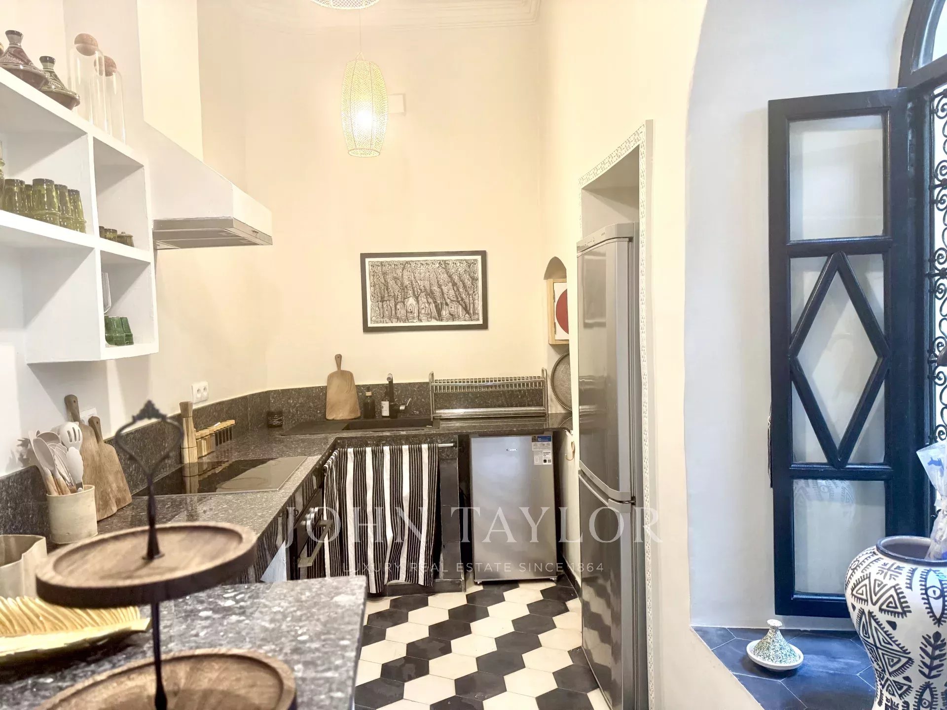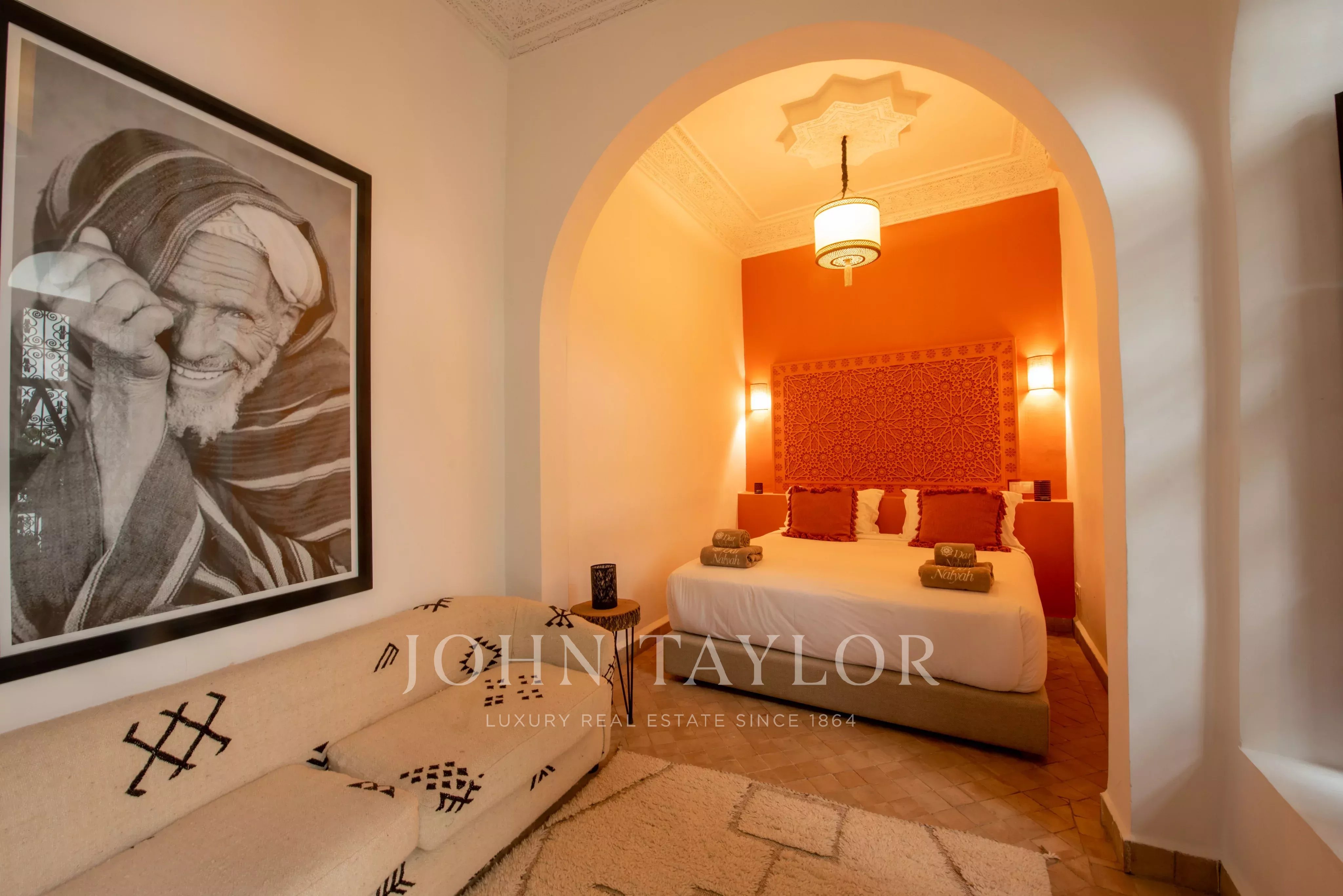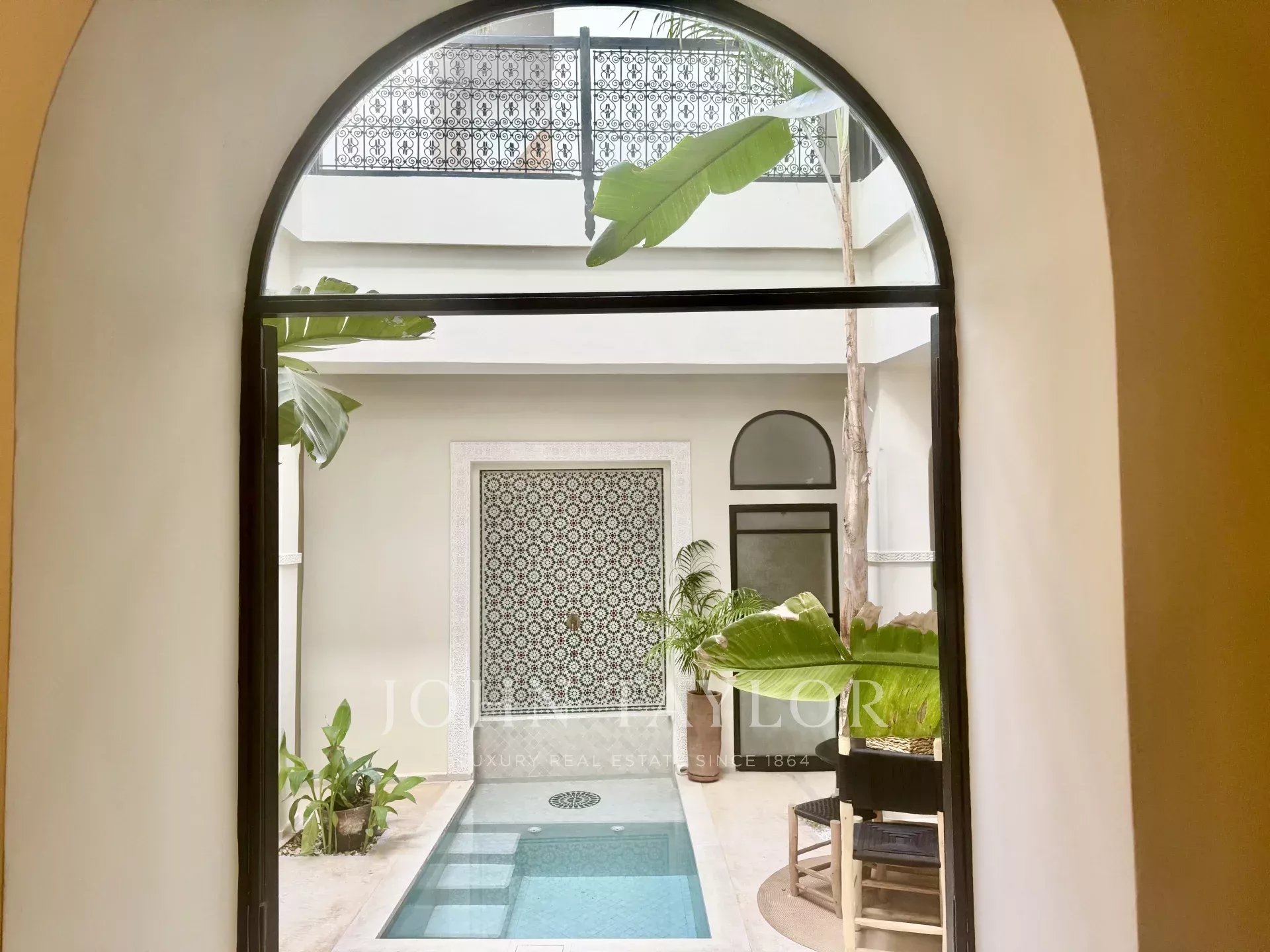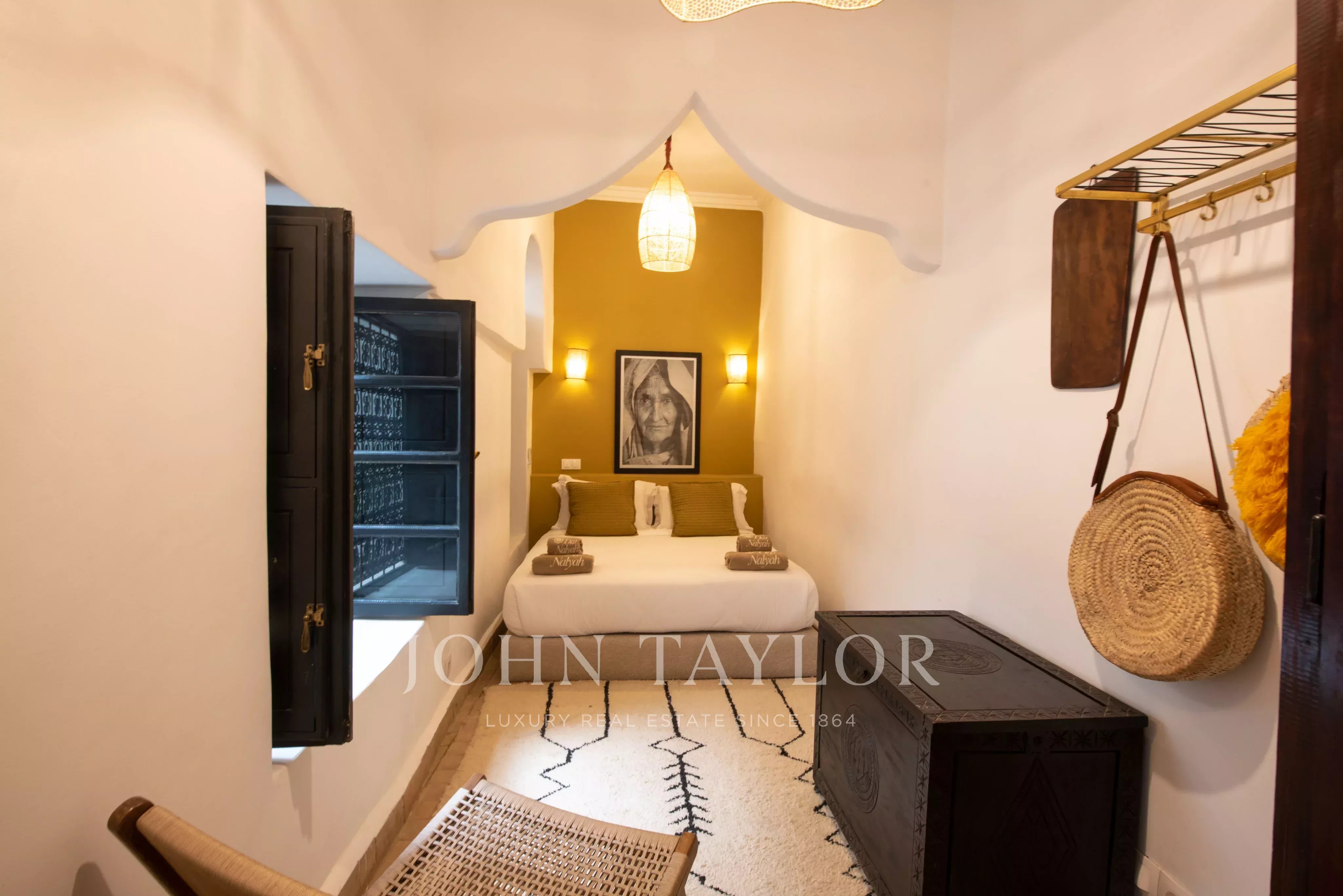 D'une surface au sol de 105m2, le Riad comprend autour d'un charmant patio avec bassin de rafraîchissement, salon d'été et toit électrique: une petite entrée, une belle pièce associant cuisine équipée et salle à manger, des toilettes invités ainsi qu'une vaste suite avec cheminée et salle de bain adjacente. Le premier étage accueille 2 vastes chambres avec salles de bain connectées par une jolie galerie ainsi qu'une buanderie.