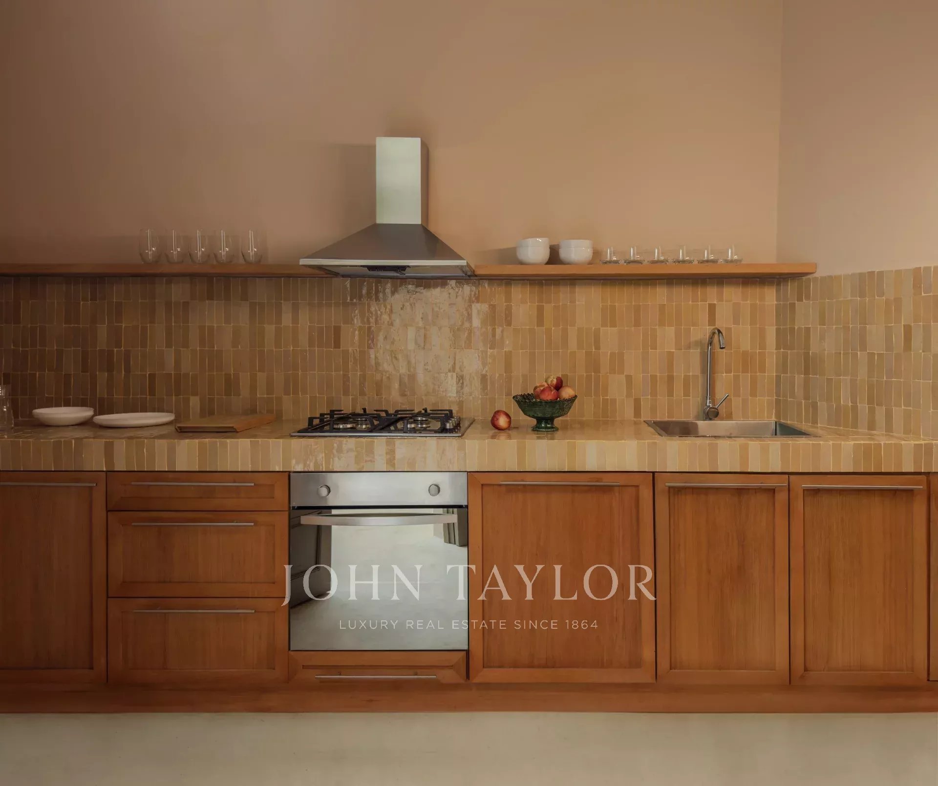 D'une surface au sol de 75m2, il comprend au rez-de-chaussée autour d'un beau patio avec bassin central et salon d'été: une entrée avec toilettes invités, une superbe cuisine équipée et salon avec cheminée. Le premier étage accueille 2 chambres spacieuses avec salles de bain.