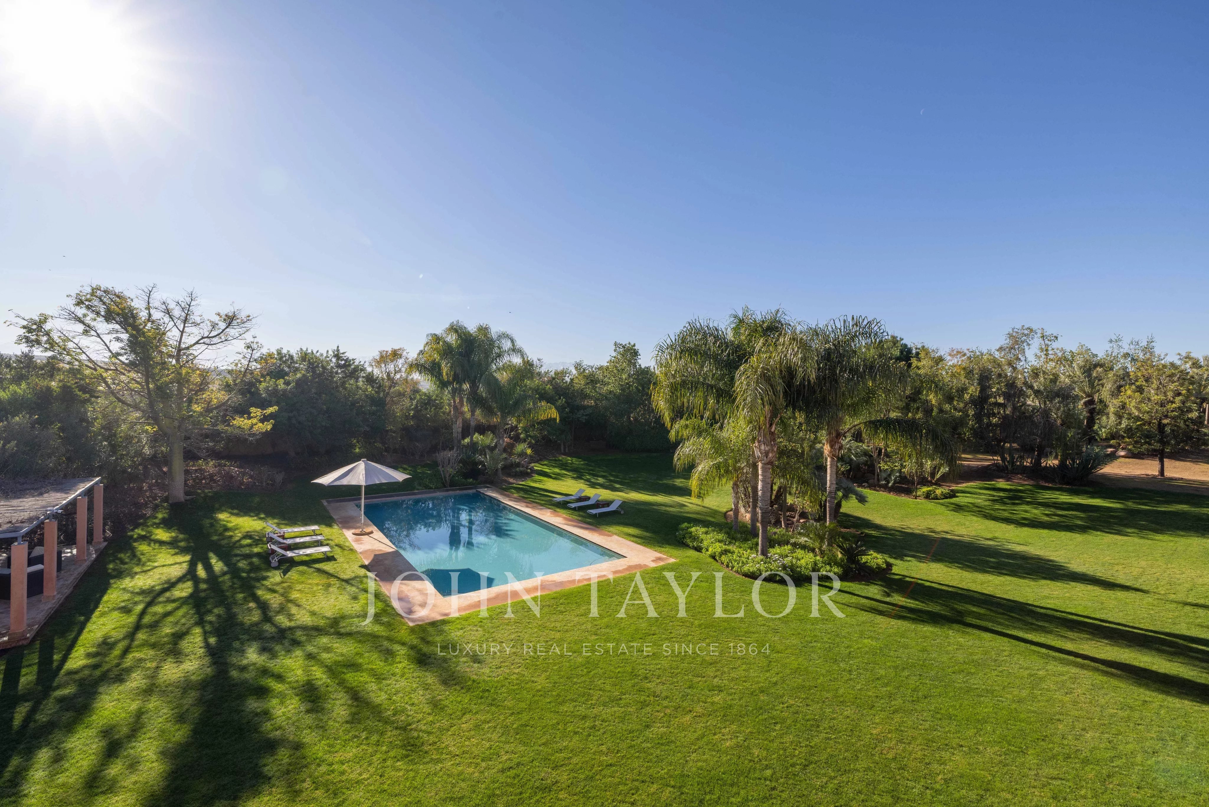 D'une surface habitable de 610m2 à laquelle s'ajoute de vastes terrasses, elle comprend au rez-de-chaussée: une entrée avec toilettes invités, une cuisine équipée avec arrière-cuisine, de vastes espaces de réception ouvrant sur la terrasse couverte et la piscine ainsi que 4 suites spacieuses disposant chacune d'une terrasse privée.